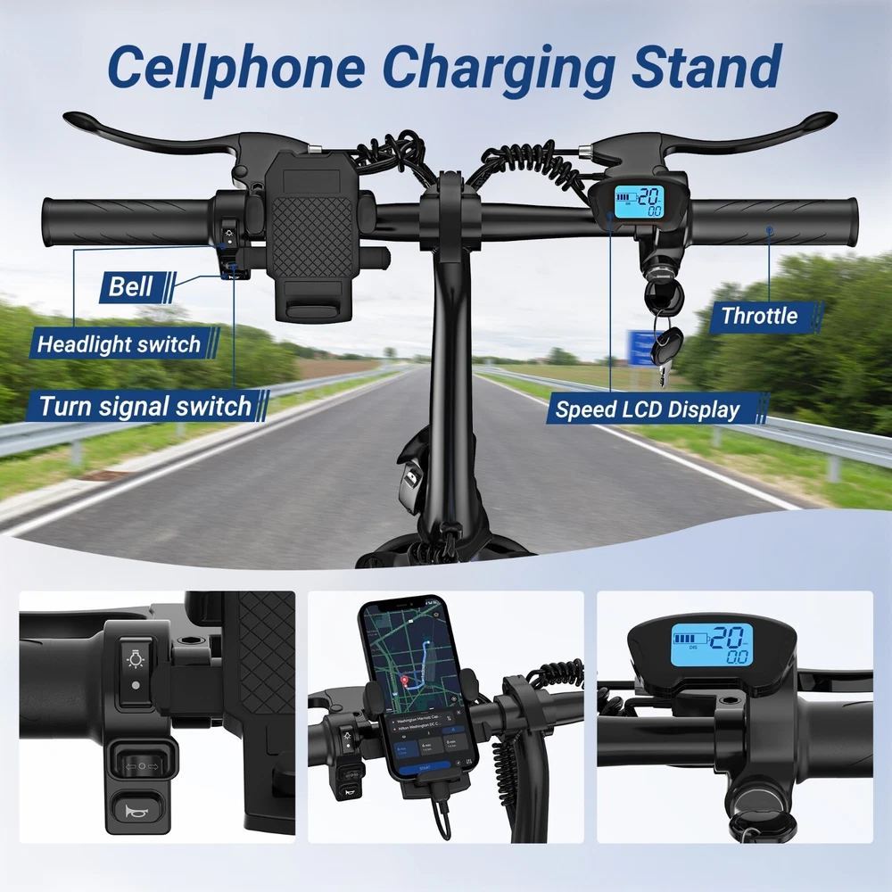( 🔥15% off with code LASTMINUTEGIFTS🔥checkout: $287.2) High quality motor and durable battery AOVOPRO EB60 electric bicycle is equipped with a 48-54.6V high capacity detachable lithium battery, with a range of up to 28 miles. The battery is durable, anti-theft. The high-quality 500W brushless motor allows you to easily climb hills, with a speed of up to 20mph(The default maximum speed is 15.5MPH, and after lifting the speed limit, it can reach 20MPH) Comfortable riding experience AOVOPRO EB60 electric bike features adjustable height seats that meet everyone's riding needs, dual disc brakes, front hydraulic shock absorbers, seat spring shock absorbers, and 14 inch inflatable tires, greatly enhancing riding safety and comfort Folding and Portable AOVOPRO EB60 electric bicycle has a foldable body, with a folding size of only 27.6 * 27.6 * 23.3 inches and a weight of only 49 pounds. You can easily lift it up or put it in the car to travel with you. In addition, we have added a phone holder for you to use navigation at any time. What's even more surprising is the USB charging port, which allows you to charge your phone at any time, bringing you a full sense of security for your cycling. In addition, I also gave you a password lock as a gift to protect your scooter from theft Easy installation The installation of the AOVOPRO EB60 electric bike is very simple, and most of it has been completed. We provide clear instructions and tools, so you don't have to worry about installation issues After sales guarantee AOVOPRO EB60 electric bicycle provides a one-year limited warranty. If you have any problems, please contact me at any time through message, and we will provide you with satisfactory after-sales service Brand: AOVOPRO Material: Alloy Motor Power: 500W Brushless Motor Battery: 42V-54.6V Lithium Ion Battery Default Max Speed: 15.5MPH Unlimited maximum speed:22MPH Brake System: Dual disc brake Charge Time: 5H Mileage Range: 21-28 Miles Max Load: 265 lbs Recommended Rider Heights: 4.9' ~ 6'1" Age group: Over 14 years old Wheel Diameter: 14 inch pneumatic tire Lighting: Front headlights, Rear tail lights, Left and right turn signals Bike Type: Folding Electric Bike Brakes: front and rear dual disc brakes+electronic brakes the item is certified to UL 2849 standards and be able provide documentation showing the certification upon request