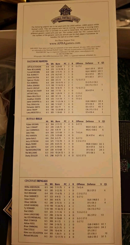 HomeAPBA 2000 National Football League Premiere Ed. Stats Strategy Game Complete!