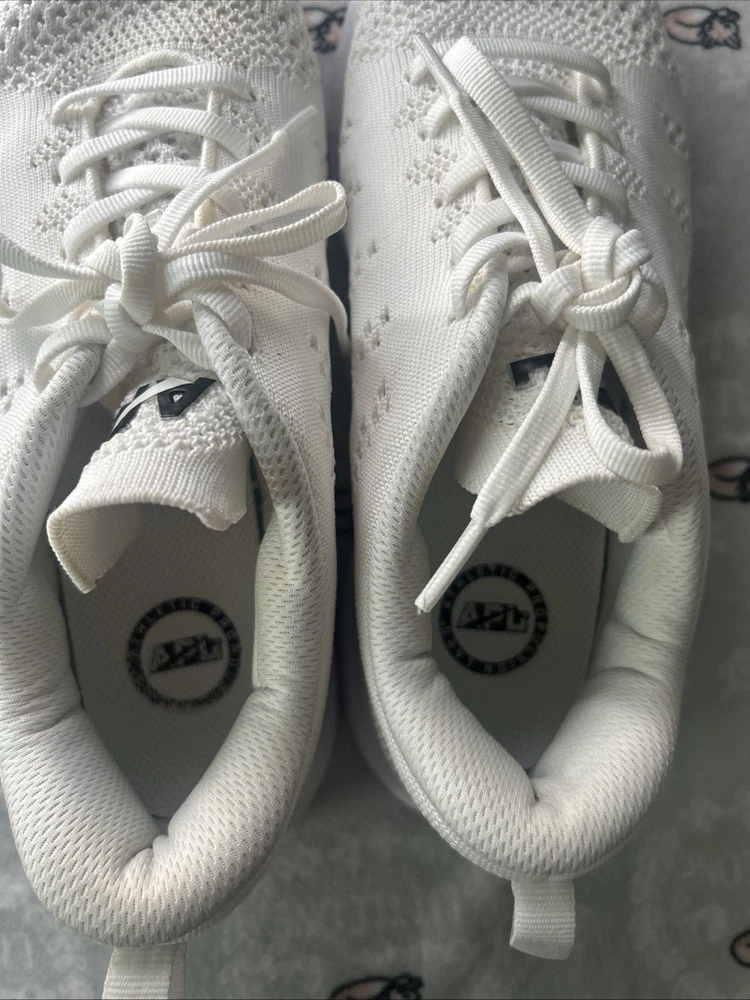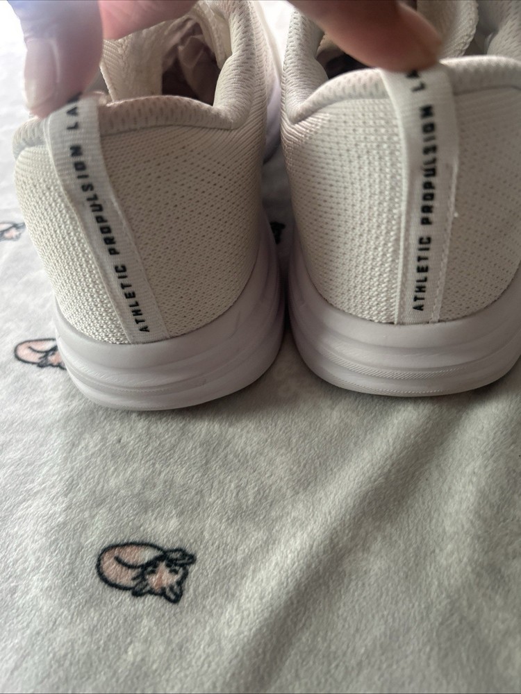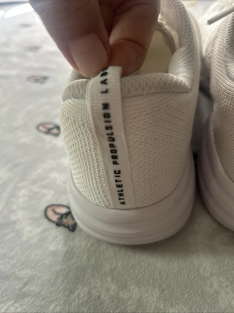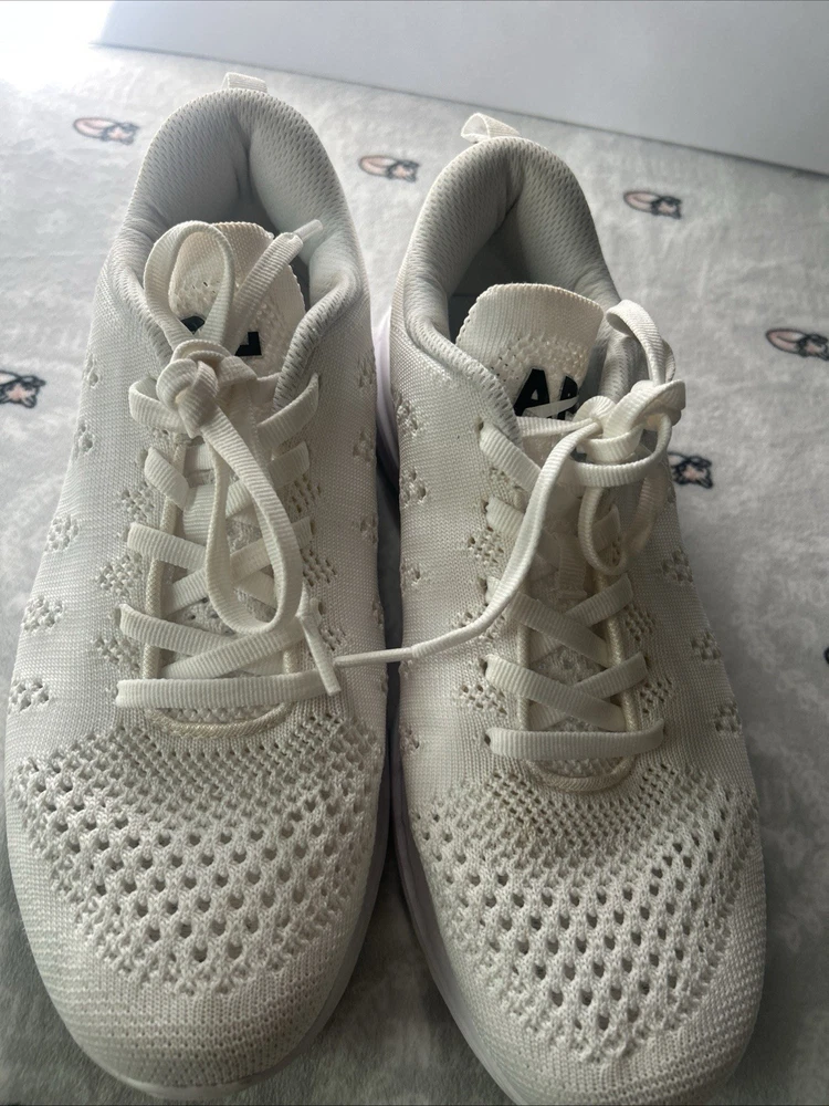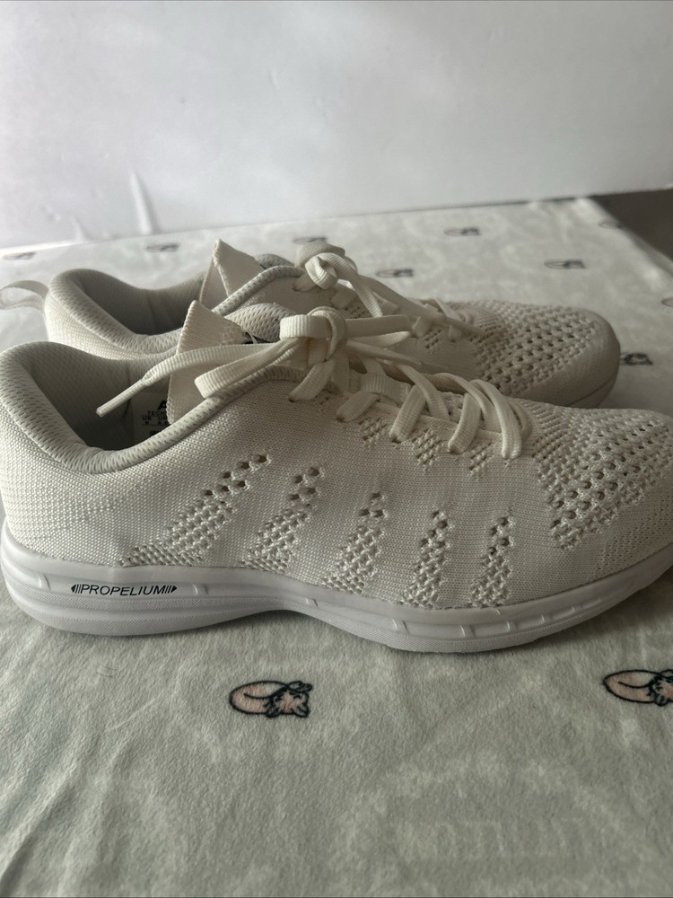 The APL Techloom Pro size9 shoes are a stylish and comfortable choice for women who enjoy running and jogging. With a low top design and lace-up closure, these athletic sneakers are perfect for active occasions. The solid white color with logo accents adds a fashionable touch to the knit fabric lining. These shoes provide a standard shoe width and are ideal for the spring, summer, and fall seasons. The rubber outsole offers durability and support for your active lifestyle.