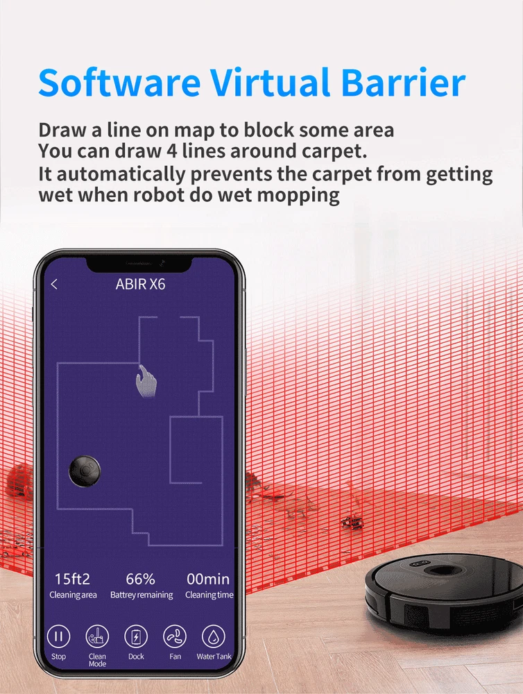 APP Virtual Barrier,6000PA Suction,Smart Home Mop,Floor Carpet Washing Appliance