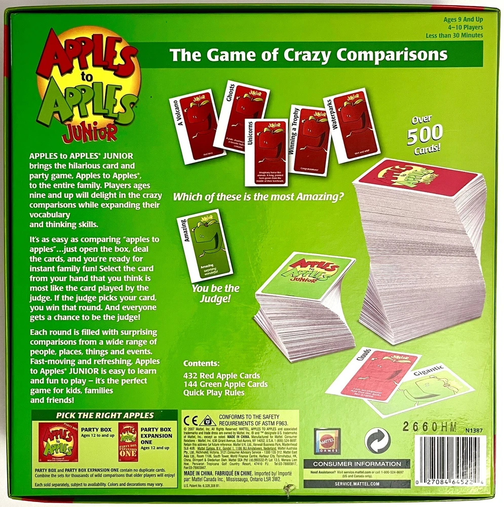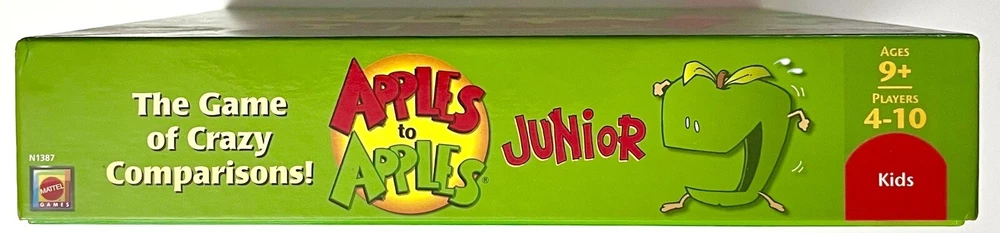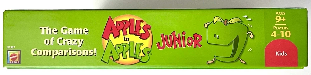 Get ready for hours of fun with the Apples to Apples Junior Mattel card game! This COMPLETE popular board game is perfect for boys and girls aged 9+, and can be played by 2 or more players. The game features cards with different themes and characters, allowing for multiple people to play and enjoy and is in EXCELLENT CONDITION. The game is manufactured in China by Mattel and falls under the categories of Toys & Hobbies, Games, Board & Traditional Games, and Contemporary Manufacture. Add this pop culture favorite to your collection today! My kids LOVED THIS GAME and yours will, too.