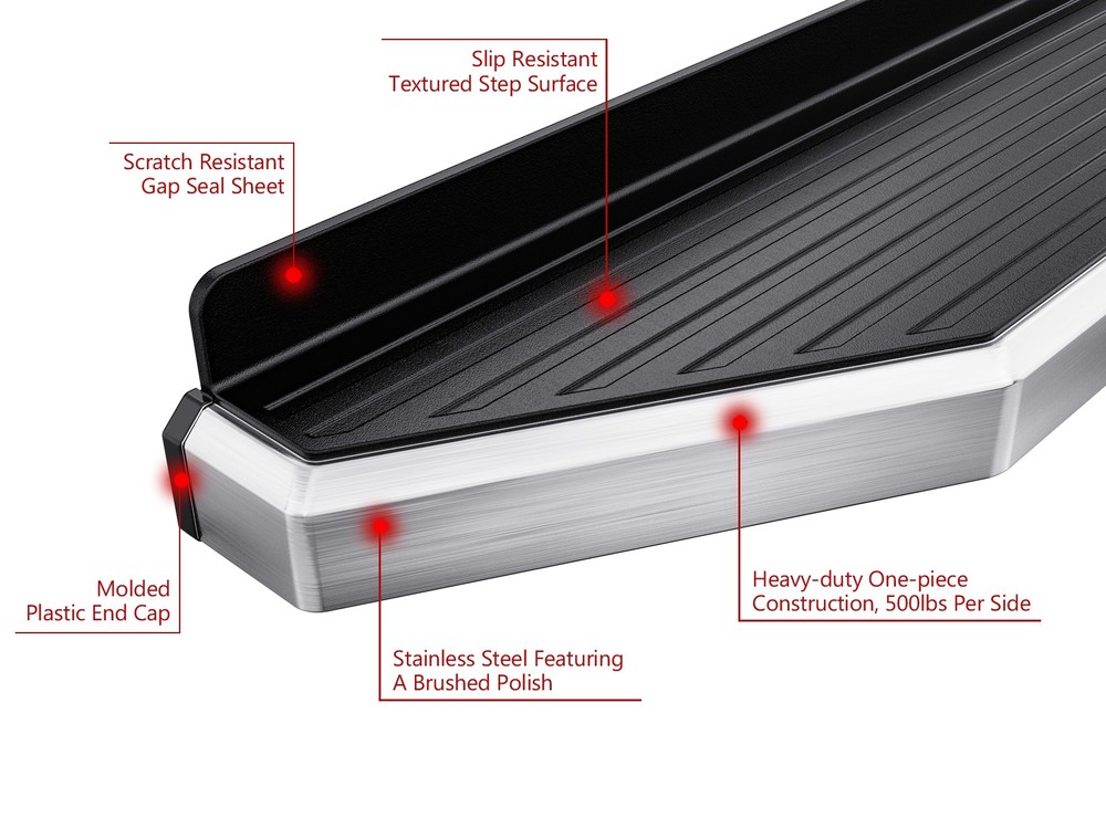 About Us Contact Us Policies FAQ Feedback In Stock & Fast Shipping Lowest Price Free Shipping Hassle Free Returns APS Premium 6" Polished Side Steps Fit 05-26 Nissan Frontier Equator King Cab Fitments Compatible with Nissan Frontier 2005-2026 Extended Cab Compatible with Suzuki Equator 2005-2012 Extended Cab Product Description iBoard, by APS is a new generation of running boards designed to look and feel different. Most running boards in the market are round or oval. iBoard's flat profile design is clean and modern - giving your truck a truly distinct look. The iBoard's low profile design is so unique even your dealer will be asking you where you got them from. The iBoard's heavy duty brackets can support up to 500 lbs without bending. The iBoard is sturdy, comfortable, and durable. Its ridged top provides a solid, non slip and continuous footing along the entire length of the bar. Which means these running boards will give you unparalleled access to your truck's windshield, roof top and truck bed. Most DIYers will find the iBoard incredibly easy to install. Effortless Setup: Install your new running boards effortlessly with the included heavy-duty brackets and hardware, perfect for a DIY project. Rust-Proof Design: Constructed from Stainless Steel, these running boards boast exceptional corrosion resistance, ensuring longevity even in harsh conditions. Sleek Aesthetic: Achieve a factory look with the rubber backsplash and tapered ends, elevating the style of your vehicle with sophistication and flair. Safety First: Enjoy peace of mind with the 6" width and fully covered anti-slip tread pad, providing optimal grip and stability for every step. Tailored Fit: Designed for Nissan Frontier 2005-2026 King Cab & Suzuki Equator 2005-2012 Extra Cab , these running boards offer a precise fit and seamless integration for a polished appearance. Product Specifications Brand APS Style D2D NEW RUNNING BOARD Material 304 Stainless Steel Color Polished Finish Polished Finish Pieces 2 Position Installation Rocker Panel Mount (No Drilling Required) Payment Shipping Returns Contact Us Payment We accept Paypal as payment method. This is also the safest way for you. If you wish to pay with a credit card, please call us to make the payment over the phone. Find a lower grille price? We will match or beat ANY competitor's price on same quality. Shipping Returns We accept return or exchange within 30 days after package delivered. Contact us first for Return Authorization Number (RAN) before you ship back the package. Please pack the returned parts in original packing and insure the package when you ship it back. No refund will be made for damaged parts. If we send the wrong or defective item, we will cover all the cost for exchange. If buyer places the wrong order, we accept return and refund money on item. Shipping and handling fee is non refundable. Contact Us Store Categories Bed Accessories Billet Grille-Aluminum Billet Grille-Aluminum Black Billet Grille-BGC Billet Grille-SS Bull Bars Fender Flare HID & Lighting iBoards Jeep Side Armors Magnus Trailer Hitches Mesh Grille-SS 1.8mm Mesh Grille-SS 1.8mm Black Mesh Grille-SS 2.5mm Nerf Bars-Black Nerf Bars-SS New Grilles Other Perimeter Grille-3D Perimeter Grille-3D Vertical Perimeter Grille-CNC Perimeter Grille-CNC Vertical Phat Grille-Aluminum 6mm Phat Grille-SS 9mm Sheet Grille-Pattern Spoiler & Wing Symbolic Grille-Billet Black Symbolic Grille-Mesh SS 1.8mm Symbolic Grille-Perimeter Tonneau Covers Trailer Hitches Tubular Grille-SS Vertical Grille-Aluminum Vertical Grille-Aluminum Black Vertical Grille-SS Store Newsletter Add our store to your Favorites to receive our email newsletters about new items & special promotions. Sign Up About Us Contact Us Policies FAQ Feedback Copyright © 2017 APS Auto Parts. All rights reserved. | eBay Listing Design by OCDesignsOnline