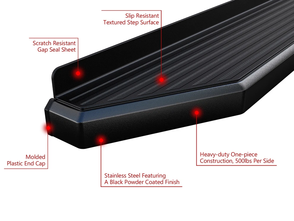 About Us Contact Us Policies FAQ Feedback In Stock & Fast Shipping Lowest Price Free Shipping Hassle Free Returns APS Stain Black 6" Side Step Side Bar Fit 21-25 Chevy Suburban Fitments Compatible with Chevy Suburban 2021-2025 Product Description iBoard, by APS is a new generation of running boards designed to look and feel different. Most running boards in the market are round or oval. iBoard's flat profile design is clean and modern - giving your truck a truly distinct look. The iBoard's low profile design is so unique even your dealer will be asking you where you got them from. The iBoard's heavy duty brackets can support up to 500 lbs without bending. The iBoard is sturdy, comfortable, and durable. Its ridged top provides a solid, non slip and continuous footing along the entire length of the bar. Which means these running boards will give you unparalleled access to your truck's windshield, roof top and truck bed. Most DIYers will find the iBoard incredibly easy to install. Snug, Factory-Fit Design: Tapered ends sit close to the vehicle for a sleek, classic look Enhanced Grip: Six-inch-wide steps fully covered in anti-slip tread for secure footing Complete DIY Set: Includes two running boards, mounting brackets, hardware, and instructions for easy installation Durable Stainless Steel: Provides superior rust and corrosion protection for long-lasting use Vehicle Compatibility: Rocker Panel Mount; fits Suburban 2021-2025 Product Specifications Brand APS Style Smartphone Style - Solid One Piece - 85" Long Material 6061 Aircraft Aluminum Color Aluminum Black Finish Matte Black Powder Coated Finish Pieces Position Installation Rocker Panel Mount Payment Shipping Returns Contact Us Payment We accept Paypal as payment method. This is also the safest way for you. If you wish to pay with a credit card, please call us to make the payment over the phone. Find a lower grille price? We will match or beat ANY competitor's price on same quality. Shipping Returns We accept return or exchange within 30 days after package delivered. Contact us first for Return Authorization Number (RAN) before you ship back the package. Please pack the returned parts in original packing and insure the package when you ship it back. No refund will be made for damaged parts. If we send the wrong or defective item, we will cover all the cost for exchange. If buyer places the wrong order, we accept return and refund money on item. Shipping and handling fee is non refundable. Contact Us Store Categories Bed Accessories Billet Grille-Aluminum Billet Grille-Aluminum Black Billet Grille-BGC Billet Grille-SS Bull Bars Fender Flare HID & Lighting iBoards Jeep Side Armors Magnus Trailer Hitches Mesh Grille-SS 1.8mm Mesh Grille-SS 1.8mm Black Mesh Grille-SS 2.5mm Nerf Bars-Black Nerf Bars-SS New Grilles Other Perimeter Grille-3D Perimeter Grille-3D Vertical Perimeter Grille-CNC Perimeter Grille-CNC Vertical Phat Grille-Aluminum 6mm Phat Grille-SS 9mm Sheet Grille-Pattern Spoiler & Wing Symbolic Grille-Billet Black Symbolic Grille-Mesh SS 1.8mm Symbolic Grille-Perimeter Tonneau Covers Trailer Hitches Tubular Grille-SS Vertical Grille-Aluminum Vertical Grille-Aluminum Black Vertical Grille-SS Store Newsletter Add our store to your Favorites to receive our email newsletters about new items & special promotions. Sign Up About Us Contact Us Policies FAQ Feedback Copyright © 2017 APS Auto Parts. All rights reserved. | eBay Listing Design by OCDesignsOnline