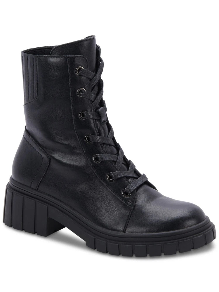 AQUA COLLEGE Womens Black Up Perel Toe Block Heel Leather Combat Boots 6.5 M