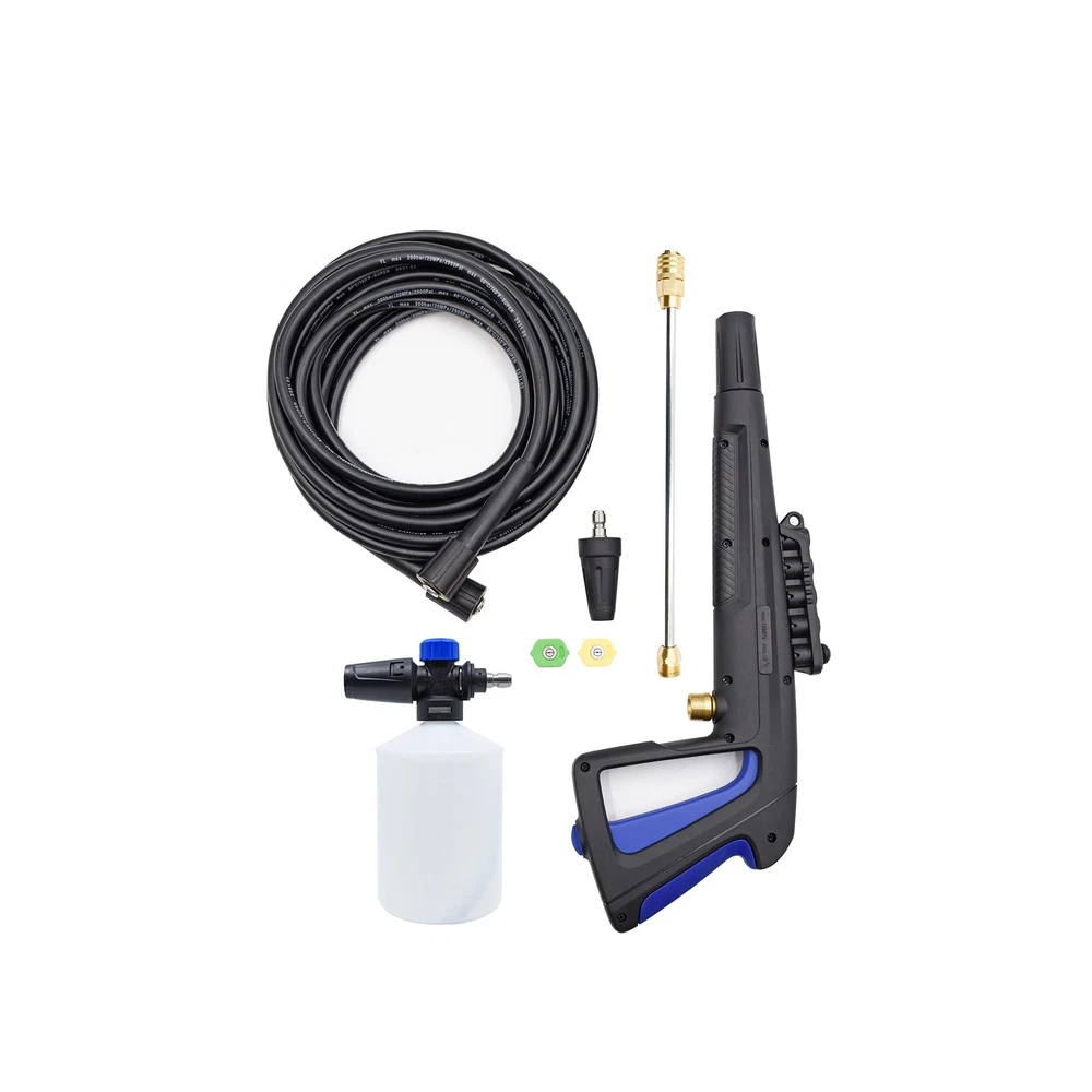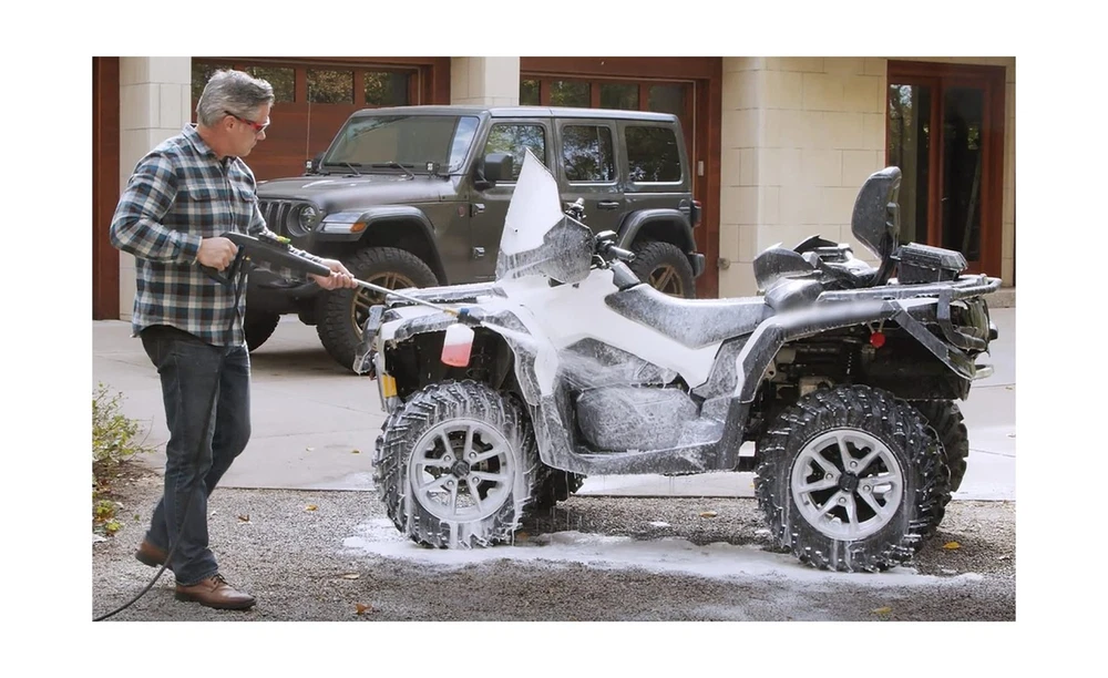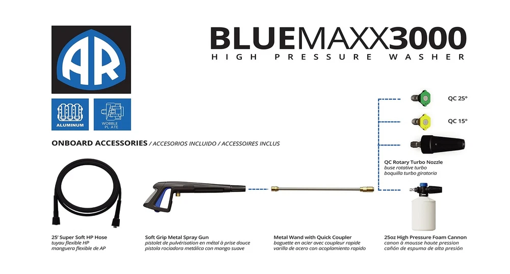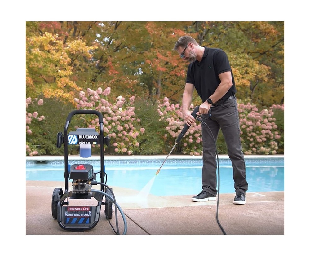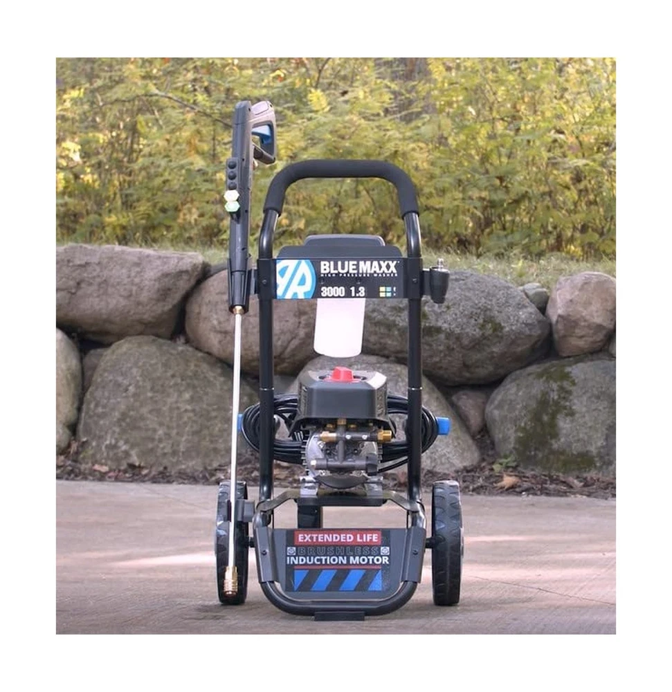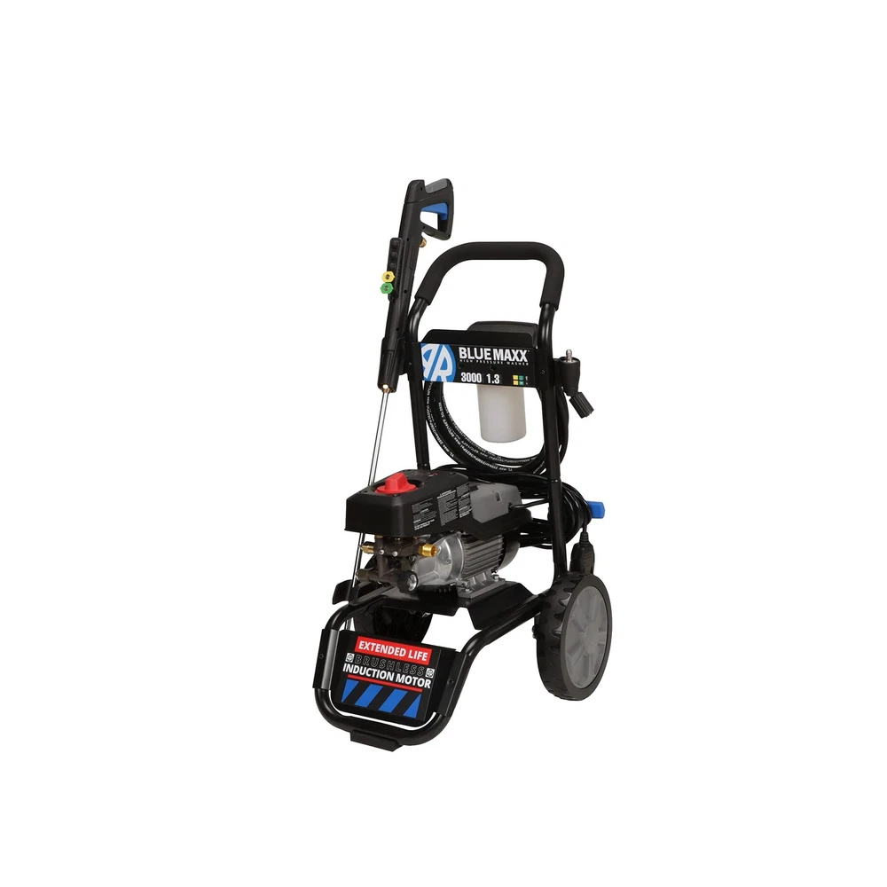 HIGH PRESSURE PERFORMANCE: This portable pressure washer is equipped with a powerful induction motor and a tri axial pump that produces up to 3000 PSI, 1.3 GPM, and 15 amp the perfect outdoor cleaner TWO WHEEL TROLLEY: Made for mobility this pressure washer is built on a two wheel trolley making it easy to maneuver, this trolley also offers convenient storage for your pressure washer accessories INDUCTION MOTOR: This 3000 psi electric pressure washer is powered with an induction motor which on average offers twice the lifespan compared to standard universal style motors CLEANING VERSATILITY: Power wash through dirt on your patio, siding, and car using the 15 & 25 degree quick connect nozzles, quick connect turbo nozzle, and 25 oz quick connect foam cannon DYNAMIC ACCESSORIES: Equipped with a range of versatile accessories to cut setup time in half, with the M22 trigger gun and metal lance, the M22 25 Foot Super Soft Hose, and quick connect nozzles