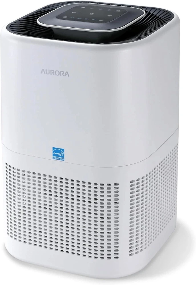 AR100W Air Purifier for Mold, Smoke, Dust, Odors, Pollen, Allergens, and Germs w Product Description: Aurora AR100W air purifier is ideal for home/office use to circulate the air per hour in rooms up to 1,100 square feet and reduces up to 99.97% of mold, smoke, dust, odors, pollen, allergens, and germs as small as 0.3 microns from the air. To breathe cleaner air easily and safely with Aurora’s AR100W Air Purifier which has a CADR up to 142 CFM / 241 m³/h and can purify the air of a 1,100 ft² space once/hour. Aurora AR100W air purifier is certified by Energy Star / FCC / TUV / CARB / EPA. Product Dimension: 9.61"D x 9.61"W x 15.35"H Item Weight: 6.83 pounds Shipping Weight: 8.25 pounds Item Model Number: AR100W About this item Quick Circulation Rate: With CADR 142 CFM / 241 m³/h, Aurora air purifier can purify the air 5x per hour in 220 ft² and a 1,100 ft² space once/hour. Perfect for small to medium-sized rooms such as bedroom, nursery, study, living room, and office area. 3-stage filter safely removes 99.97% of airborne particles as small as 0.3 microns, including mold, allergens, germs, dust, pet dander, pollen, odors, and cigarette smoke. Quiet Operation: Operates as low as 24 dB in sleep mode and light off function to help create a peaceful and relaxing environment. User-Friendly Touch Control Panel: 7 touch screen buttons with on/off, fan speed setting, timer setting, sleep mode, light off, display lock, and filter replacement indicator. Tested and Trusted: Certified by Energy Star / FCC / TUV / CARB / EPA. Easy Replacements: Filter Replacement Aurora AR10F. Product information Color White Brand Aurora Product Dimensions 9.61"D x 9.61"W x 15.35"H Floor Area 1100 Square Feet Specification Met CARB Certified, EPA Certified, Energy Star Certified, FCC Certified Noise Level 24 Decibels Particle Retention Size 0.3 Micron Controller Type Touch Control UPC 038572231003 Special Feature Energy Star certified, FCC / TUV / CARB / EPA Certified, Quiet Operation Manufacturer Aurora Filter Class H13 True HEPA Item Weight 6.8 pounds ASIN B0CV4KLHTV Item model number AR100W Assembly required No Number of pieces 1 Batteries required No Included Components Air Purifier Color White Brand Aurora Product Dimensions 9.61"D x 9.61"W x 15.35"H Power Source AC Item Weight 6.8 Pounds