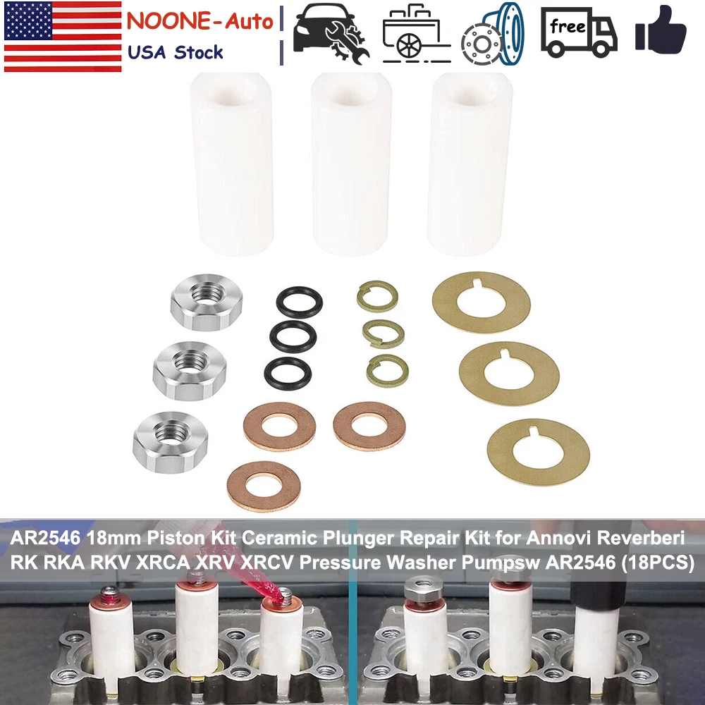 FITMENT: The AR2546 was used on the Annovi Reverberi RK, RKA, RKV, XRCA, XRV, XRCV, series pressure washer pumps also known as AR pumps. OEM Part #AR2546, Replaces part #2757 FEATURES: 1)Kit Contains 3 Piece Each-- 18mm pistons, backup rings, O ring seals, slingers, washers, and nuts 2)Superior Material-- Made of high-quality ceramic, steel and plastic. Hight precision and Extra-thick ceramic pistons for reater durability. Ceramic Dimensions: 18mm x 40mm, Inside Dimension: 11mm AR2546 18mm Piston Kit Ceramic Plunger Repair Kit for Annovi Reverberi RK RKA RKV XRCA XRV XRCV Pressure Washer Pumpsw AR2546 (18PCS) FITMENT: The AR2546 was used on the Annovi Reverberi RK, RKA, RKV, XRCA, XRV, XRCV, series pressure washer pumps also known as AR pumps. OEM Part #AR2546, Replaces part #2757 FEATURES: 1)Kit Contains 3 Piece Each-- 18mm pistons, backup rings, O ring seals, slingers, washers, and nuts 2)Superior Material-- Made of high-quality ceramic, steel and plastic. Hight precision and Extra-thick ceramic pistons for reater durability. Ceramic Dimensions: 18mm x 40mm, Inside Dimension: 11mm 3)Easy Installation-- Remove the old pump piston kit and re-installing the new part back over the rods to maintenance your pressure washer pump. 4)Satisfaction Guarantee- If you're not 100% satisfied with the item, simply return it for a full refund in 30 days. Support 12 month's after-sale service. Please be assured of buying. PRODUCT DESCRIPTION: Package Includes: 3 x Ceramic Piston 3 x Piston Nut 3 x Copper Washer 3 x O-ring 3 x Back Ring 3 x Brass Slinger Item Specifics Brand NO-Auto Warranty 1 Year MPN N0QP695 Type Ceramic Plunger Repair Kit Fitment For Annovi Reverberi RK, RKA, RKV, XRCA, XRV, XRCV Sub-Type Pump Piston Kit Ceramic Plunger Repair Kit Model AR2546 Material Ceramic, Steel and Plastic Number of pieces 18 Set or Single Item Set Payment 1. Payment methods accepted: Payoneer . Our Payoneer account allows you to pay by credit card, debit card and your paypal balance. 2. We ship items to Your Ebay address .Please make sure your Ebay address is correct before you pay, cause it cannot be changed once the order shipped out. Shipping 1. Item will be shipped out within 1-2 business day after clear payment received. 2. Please make sure shipping address on your ebay account is correct & up-to-date. 3. All of our items are shipped from our AU warehouse. 4. Please feel free to contact us by email if you cannot get your order in time. Please read the shipment and payment detail carefully before you bid. Returns 1. Return to us within 30 days from the delivery date for exchange or refund. Refund will be given as Money back or item exchange (buyer's choice). 2. Return shipping fee is the responsibility of buyer unless the return is a result of our mistake. 3. If you need return, please contact our customer service representative, let us know the detailed problem and send us some pictures for confirmation. Contact Us Please contact us via ebay using" Contact member ". We will respond within 1 business day or less.Thank you for your understanding. Our office hours is as below : - 9:00 a.m. to 6:00 p.m. (GMT +8) of Monday to Friday - 9:00 a.m. to 1:00 p.m. (GMT +8) of Saturday And our office is closed on Sunday and public holidays. We apologize for the late reply during the holidays.Please contact us via ebay using" Contact member ". We will respond within 1 business day or less. Please include your ebay item number or order number in all communications. DESCRIPTION PAYMENT SHIPPING RETURN POLICY CONTACT US Shop Category Store Home Car & Truck Accessories Motocycle Accessories Boat Parts ATV &UTV Truck Accessories Oil Filter Wrench Caps Home & Garden Business & Industrial Parts Automotive Tools & Supplies Personal Watercraft Parts RV&Trailer&Camper Accessories Sporting Goods Tools, Hardware & Locks Jewelry & Watches Performance & Racing Parts Collectibles Other Hot Item KK-4835 Porter Cable Oil Free Air Compressor Piston Rod Kit A02743 for Craftsman USD 78.20 Upgraded Pressure Washer Seal Kit Used on Some Medium Frame Pressure Washer Pump USD 25.15 R50864/ R161382 Gear Shift Knob for John Deere Tractors 1020 2020 2640 2755 4430 USD 13.85 Extended Run Fuel Gas Cap For Honda Generator EU2000i EU2200i Fit 1/4"NPT Line USD 10.50 Waterproof Generator Cover w/ Storage Pocket for Honda Eu2000i Eu2200i Generator USD 17.30 Picture New List Item S-224 1/2" NPT G-Style Coupler Plug and Air Hose Reducer Bushing Kit 5PCS 250° F USD 50.10 Cast Iron 2 Part Flask Mold for Delft Sand Casting Jewelry Making Tool Black USD 41.88 6600-166 Temperature Sensor for Sundance Spa Jacuzzi Aspen Hot Tubs Temp Sensor USD 25.54 For Milton S775 A-Style Air Coupler 1/4 in NPT Female 778,777,777-4,777-6,1777-4 USD 32.54 Third Function Valve Kit for Kubota MX4700, MX4800, MX5100, MX5200, MX5800 USD 758.99 Help & Info Payment Policy Shipping Policy Return Policy FAQ About Us AR2546 18mm Piston Kit Ceramic Plunger Repair Kit for Annovi Reverberi RK RKA RKV XRCA XRV XRCV Pressure Washer Pumpsw AR2546 (18PCS) FITMENT: The AR2546 was used on the Annovi Reverberi RK, RKA, RKV, XRCA, XRV, XRCV, series pressure washer pumps also known as AR pumps. OEM Part #AR2546, Replaces part #2757 FEATURES: 1)Kit Contains 3 Piece Each-- 18mm pistons, backup rings, O ring seals, slingers, washers, and nuts 2)Superior Material-- Made of high-quality ceramic, steel and plastic. Hight precision and Extra-thick ceramic pistons for reater durability. Ceramic Dimensions: 18mm x 40mm, Inside Dimension: 11mm 3)Easy Installation-- Remove the old pump piston kit and re-installing the new part back over the rods to maintenance your pressure washer pump. 4)Satisfaction Guarantee- If you're not 100% satisfied with the item, simply return it for a full refund in 30 days. Support 12 month's after-sale service. Please be assured of buying. PRODUCT DESCRIPTION: Package Includes: 3 x Ceramic Piston 3 x Piston Nut 3 x Copper Washer 3 x O-ring 3 x Back Ring 3 x Brass Slinger Item Spe