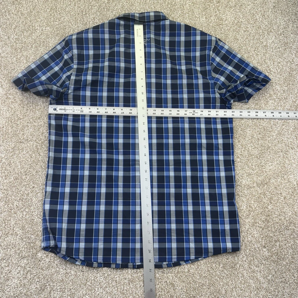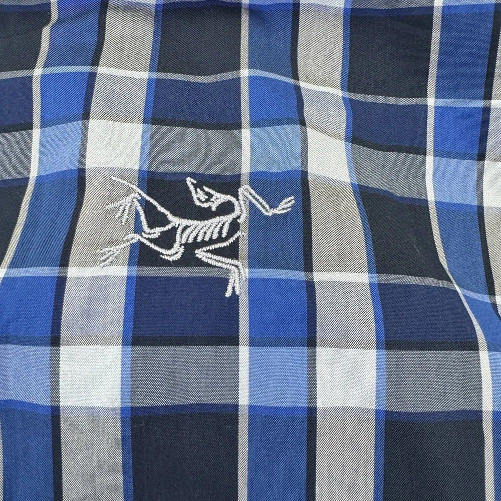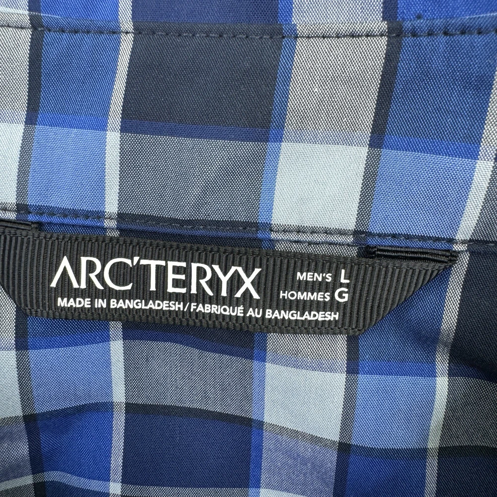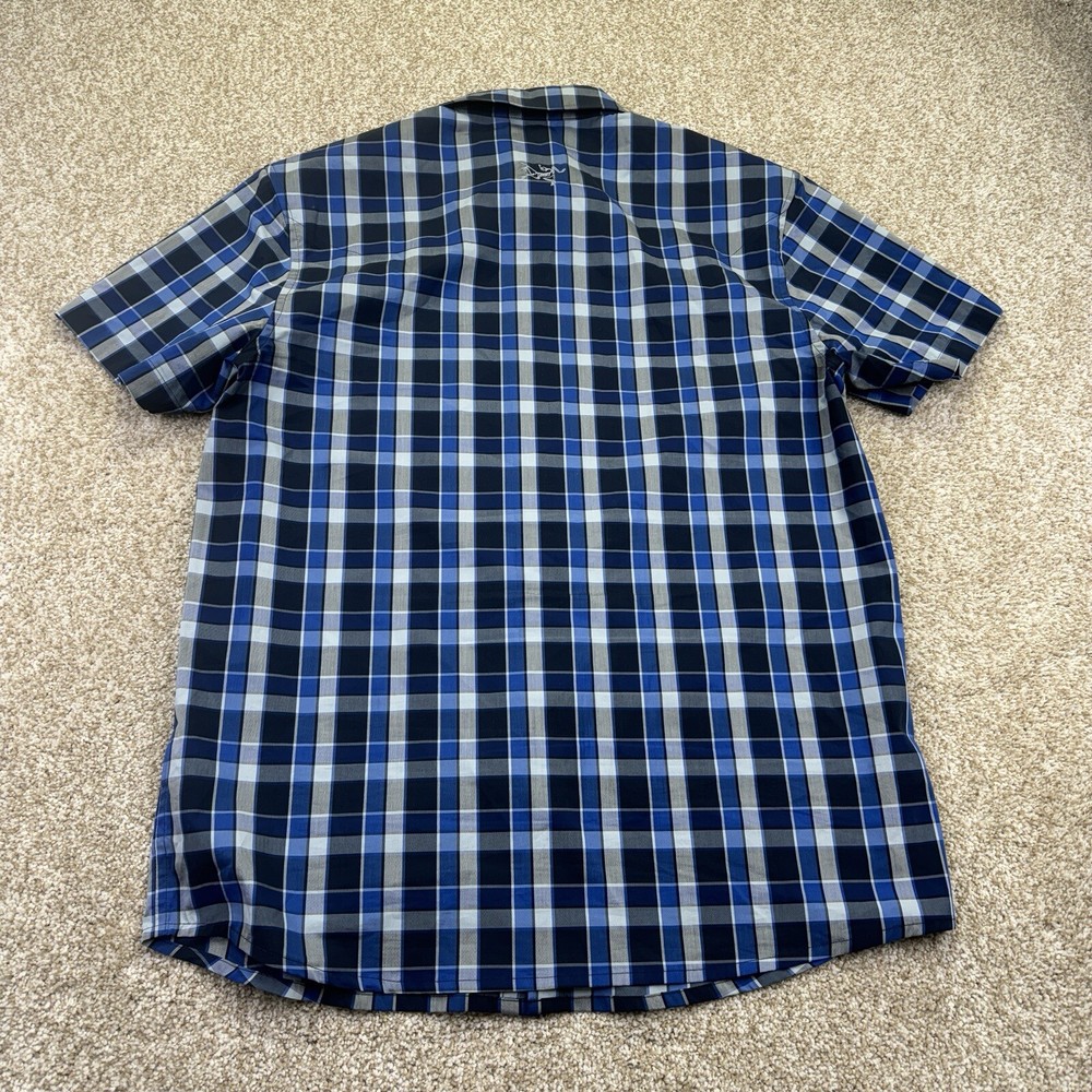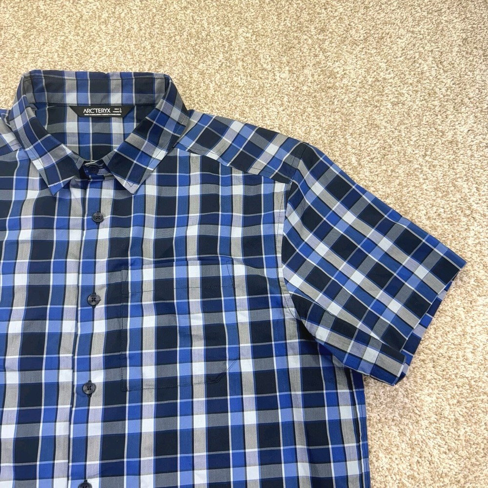 ARC’Teryx Button Up Shirt Mens Size Large Blue Gray Check Short Sleeve Pocket. Condition is Pre-owned. Shipped Standard. See Photos With Measurements. Item Has Been Clean Per Ebay Standard And Policy.
