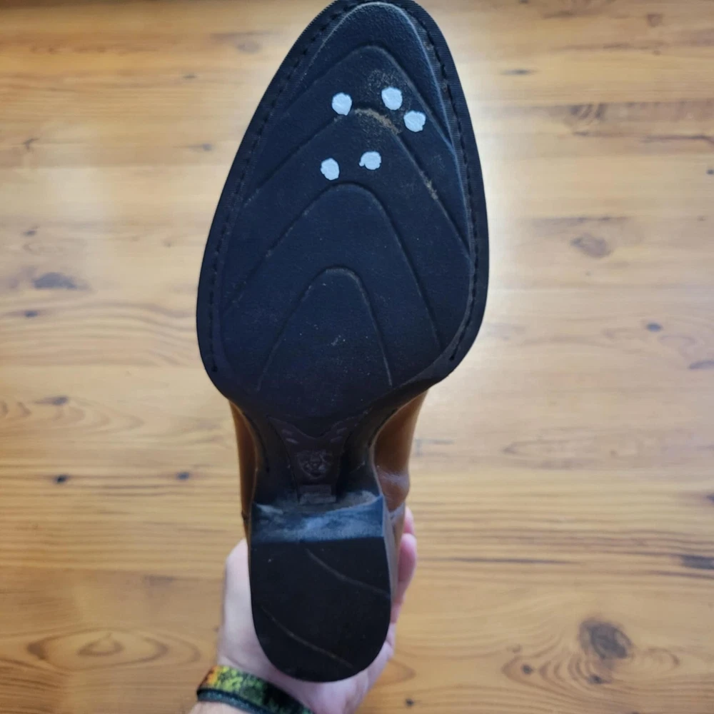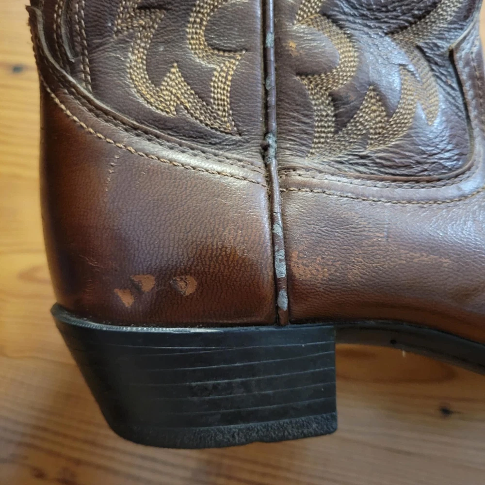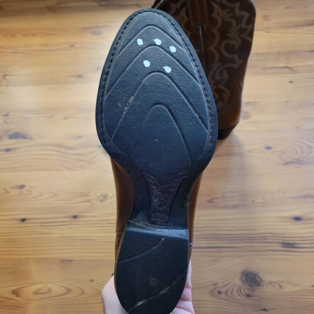 Theme:CowboyBrand:AriatShoe Width:DUS Shoe Size:8.5UK Shoe Size:7.5Closure:Pull OnStyle:WesternColor:BrownSeller Notes:“Good condition. Has some skuffs as shown in the pictures”Department:MenUpper Material:LeatherType:Boot