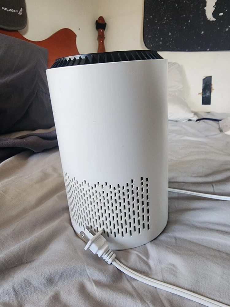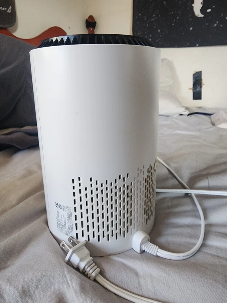 The AROEVE Air Purifier is designed for bedrooms, capturing contaminants like pollen. It has a compact size of 6.1"D x 6.1"W x 9.7"H and weighs 3 pounds. The filter is designed for controlling smoke, pollen, dander, and hair, making it ideal for a room of 287 square feet. The product is manufactured by AROEVE and meets CARB certification standards.