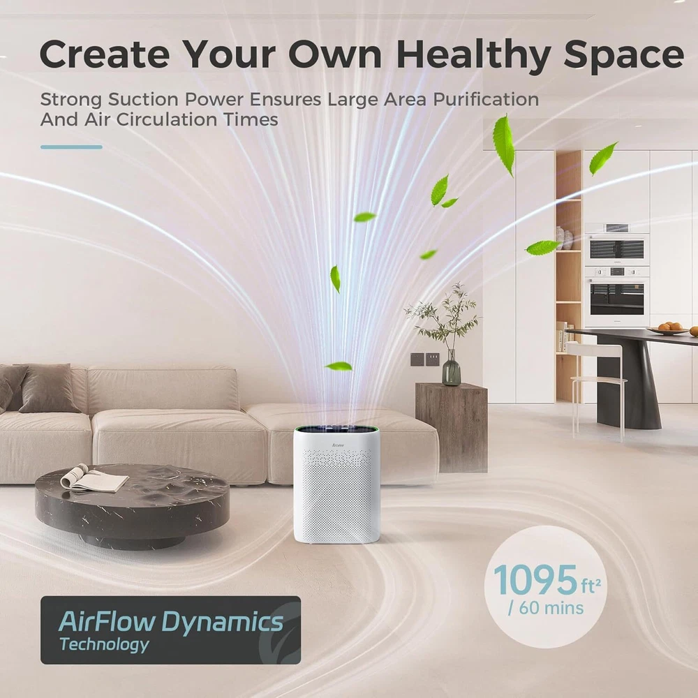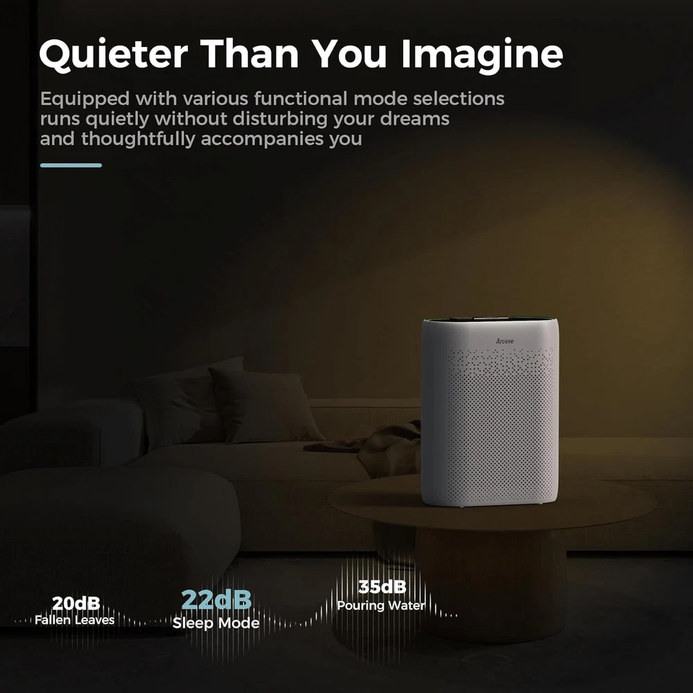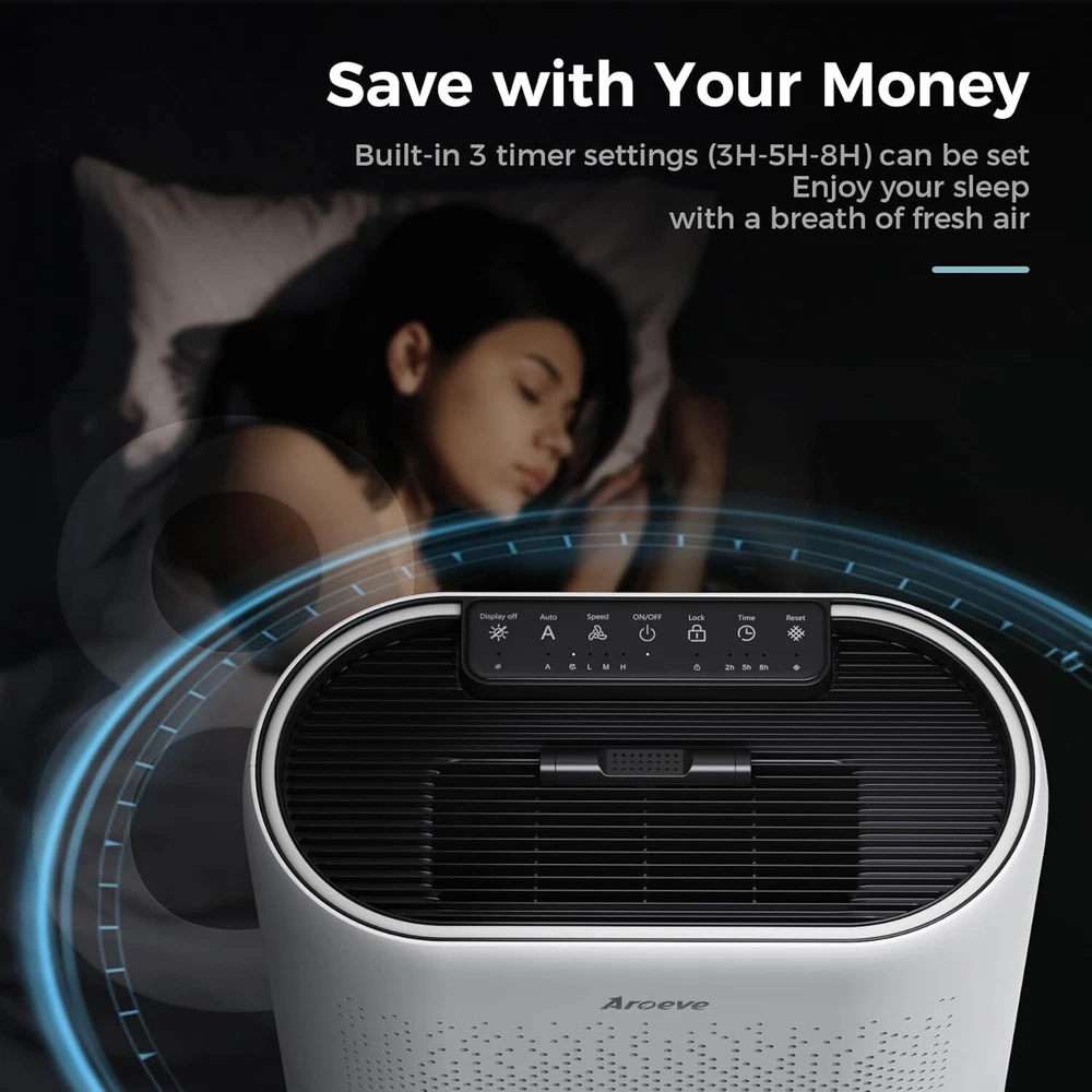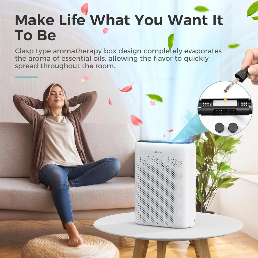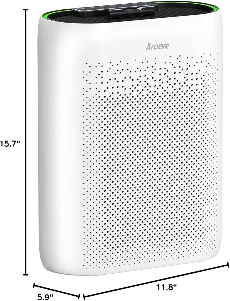 AROEVE Air Purifiers for Home Large Room with Automatic Middle, A-White Product Details Color: A-White Brand: AROEVE Product Dimensions: 5.9"D x 11.8"W x 15.7"H Floor Area: 1095 Square Feet Specification Met: ETL Certified Noise Level: 22 dB Particle Retention Size: 12 minutes Controller Type: Button Control Wattage: 24 watts Manufacturer: AROEVE Item Weight: 6.88 pounds Item model number: MKD05 Care instructions: Before use for the first time, please take out the filter to unpack it, then fit it back. Assembly required: No Number of pieces: 1 Batteries required: No Included Components: Filter Power SourceItem Weight: dc6.9 Pounds Control MethodFilter Type: TouchFilter Create Your Healthy Space: Equipped with a complete air purification system, it can filter both solid and gaseous pollutants in the air. Filter dust, pet dander, and pollen for home, Create your own healthy space, improving your air quality. Real-Time Monitoring: With a millisecond air detector to reflect the air quality in the room in real-time by detecting PM2.5, you do not have to rely on your own feelings or guess whether the air is clean or not, you can see the changes in the air. Enjoying Life Become Easy: With a diffuser vent clip design, you can add essential oils to the top aromatherapy pad according to your own preferences. Multi-dimensional improves the air environment while bringing a pleasant aroma to you and your family. Enjoy Your Sleep: Built-in 3-timer settings (2H-5H-8H) and various functional mode selections can be set. runs quietly without disturbing your dreams, and thoughtfully accompanies you.