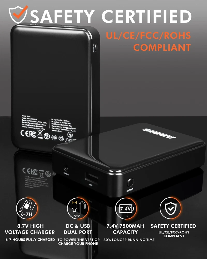 Package Includes: 1 x ARRIS Heated Vest 1 x ARRIS 7.4V/5V Dual Battery 1 x Charger 1 x English Manual On Nov 2, 2024 at 01:47:57 PDT, seller added the following information: