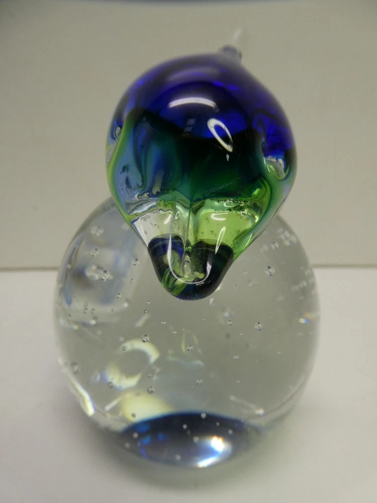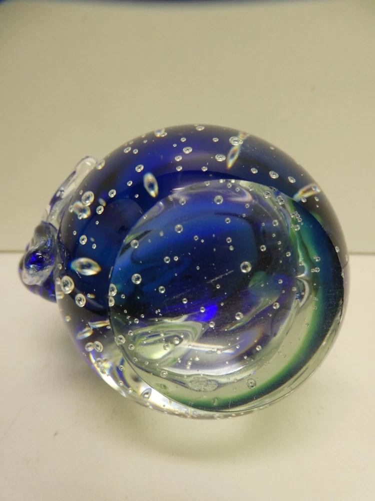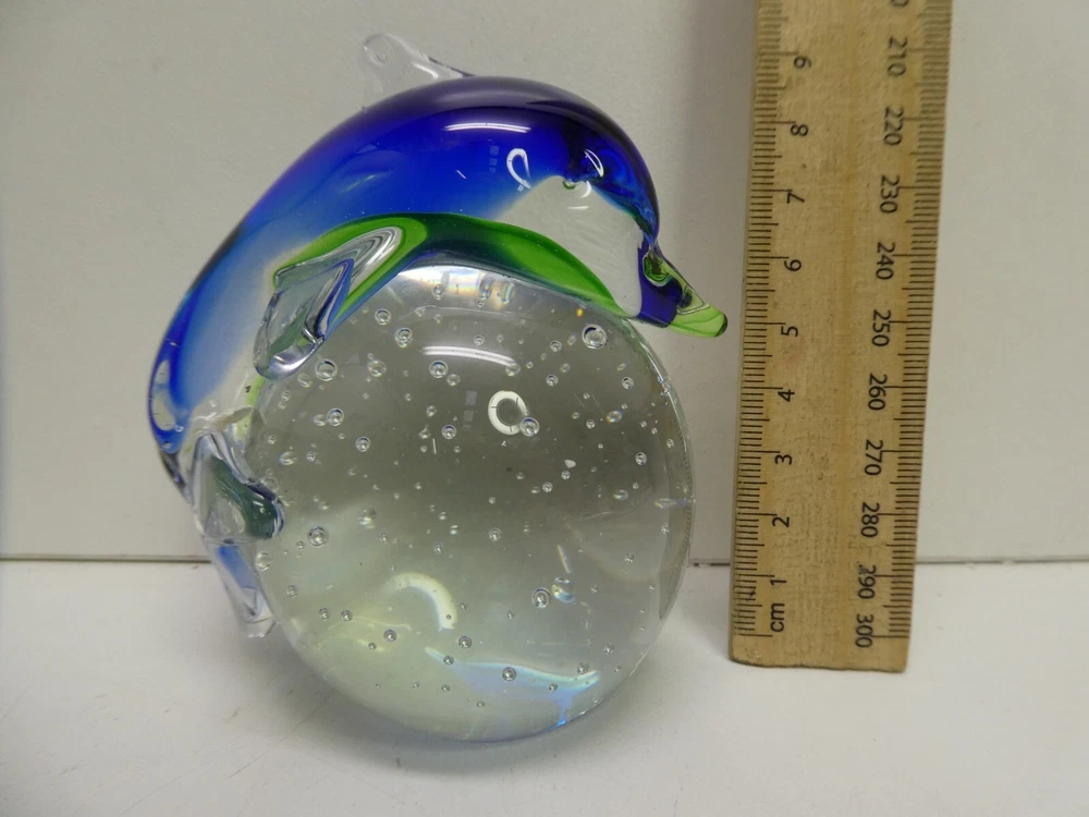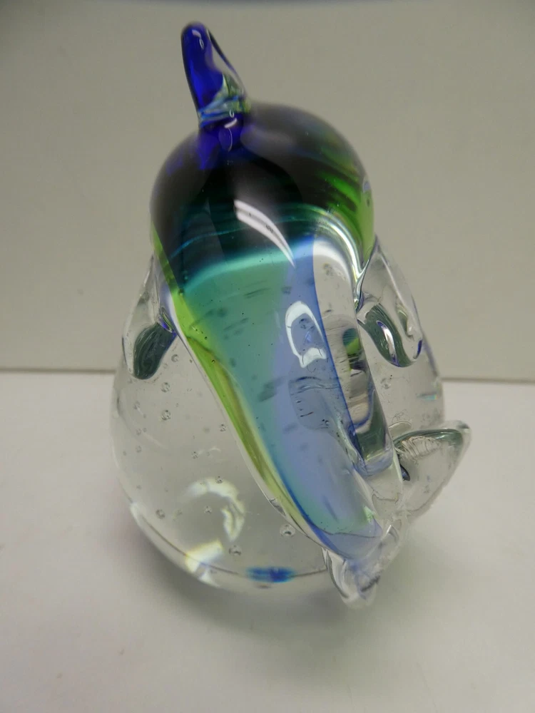 ART GLASS HAND MADE PAPER WEIGHT DOLPHIN SHAPED CASED BUBBLES 9.5 CM HIGH GOOD CONDITION SEE PHOTOS FOR BEST GUIDE