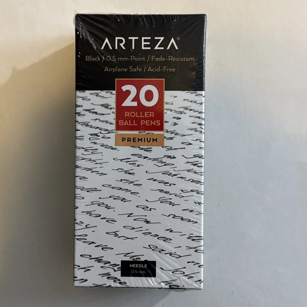 The ARTEZA Rollerball Pens Fine Point set includes 20 black pens with an ergonomic grip and a snap closure. These pens have an extra fine to fine point, making them suitable for precise and detailed drawing or writing tasks. The pens are made of plastic and have a line size of 0.50, providing a smooth and consistent ink flow. Perfect for artists and crafters, these pens offer high-quality performance and are a convenient addition to any art supplies collection.
