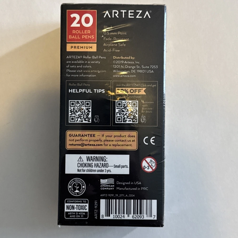 Color: Black MPN: ARTZ-9291 Number of Items: 20 Model: Does not apply Material Type: Plastic Item Weight: 8 ounces Product Dimensions: 2.72 x 1.93 x 5.59 inches Item model number: ARTZ-9291 Line Size: 0.50 Ink Color: Black UPC: 810024620937 Brand: Arteza Type: Does not apply gtin13: 810024620937 Point Type: extra fine,fine point Manufacturer Part Number: ARTZ-9291 Manufacturer: Arteza Country/Region of Manufacture: Does not apply Finish: Does not apply Closure: Snap Size: 1 Count (Pack of 20) Handmade: Does not apply Grip Type: Ergonomic