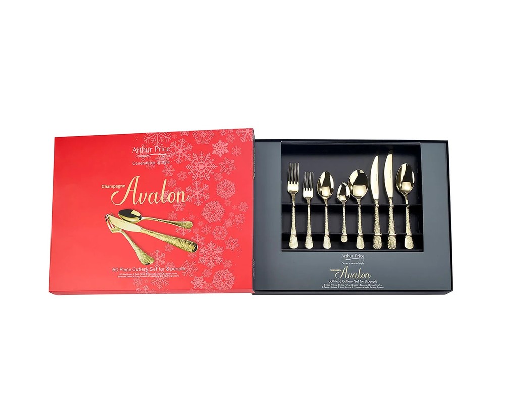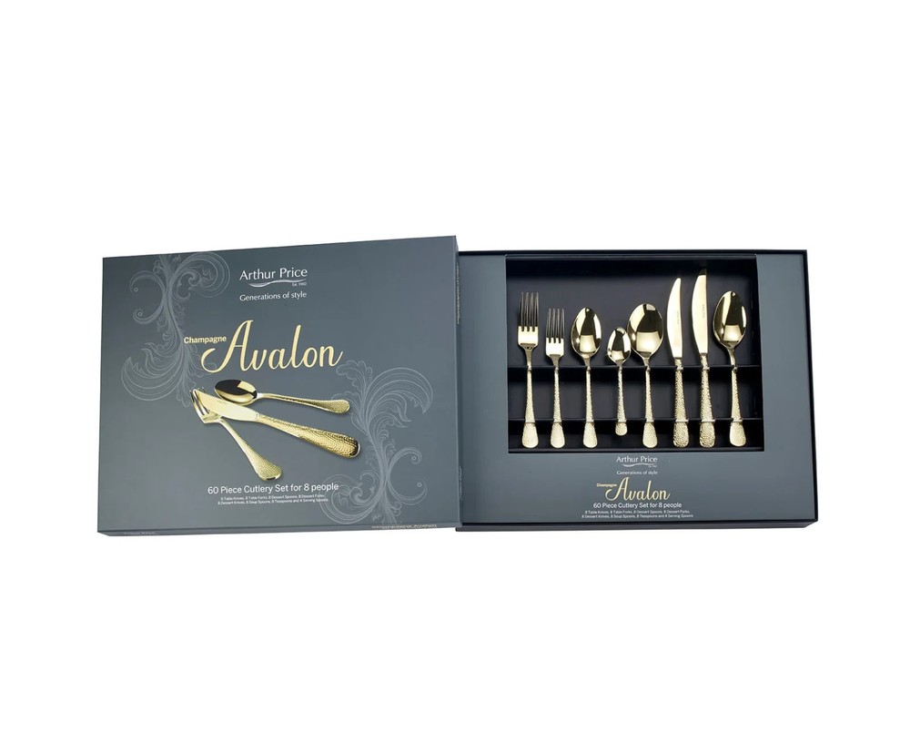 ARTHUR PRICE Champagne Avalon 60 Piece 8 Person Cutlery Set BLACK FRIDAY RRP£525