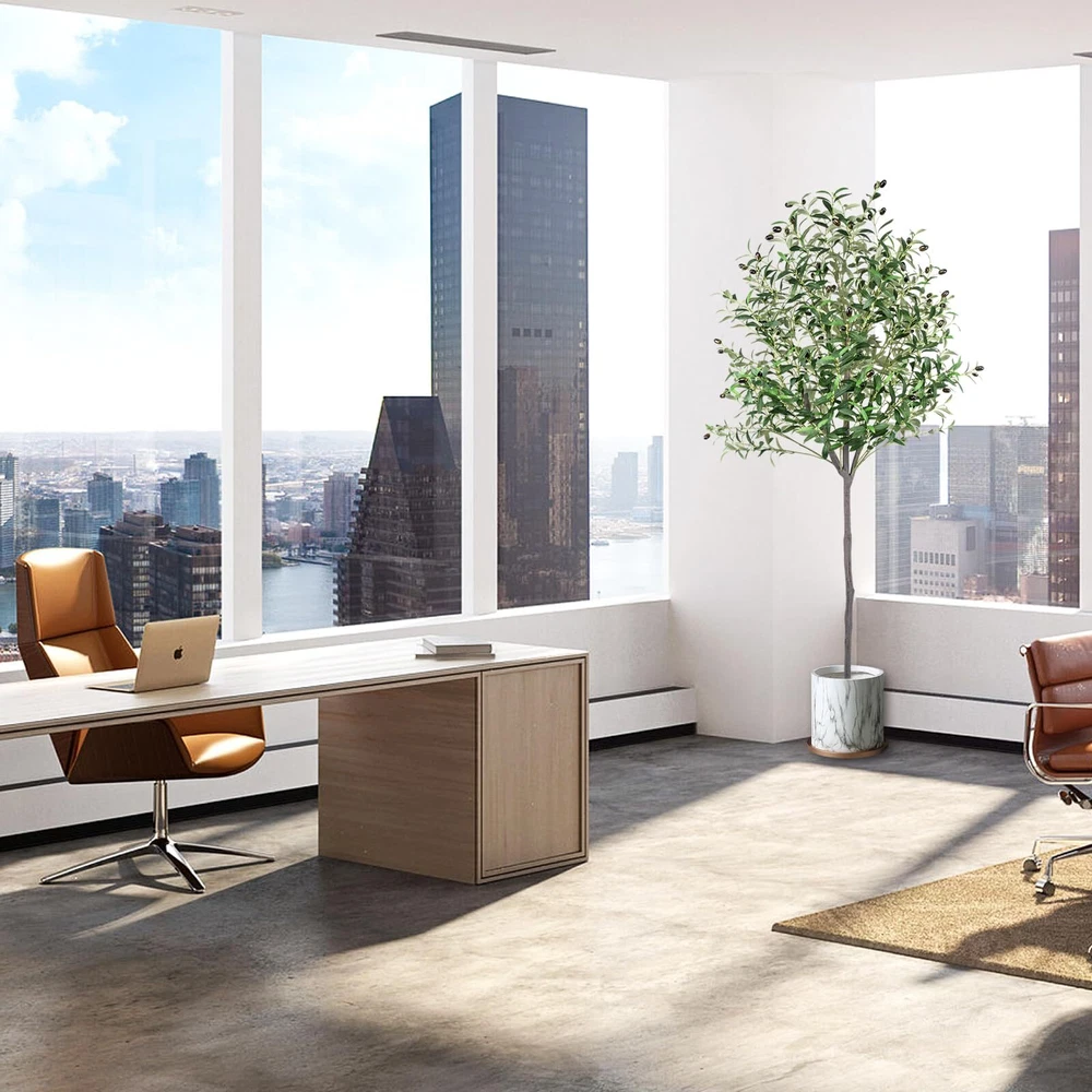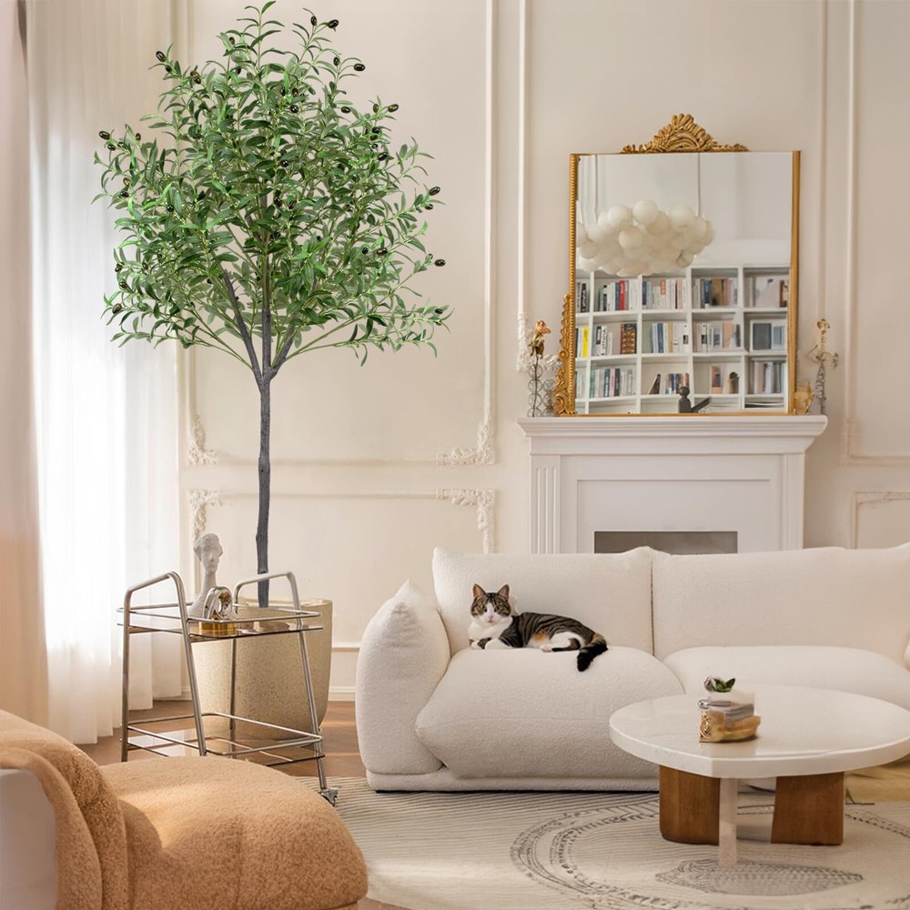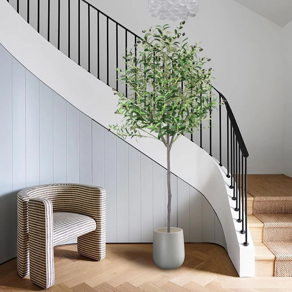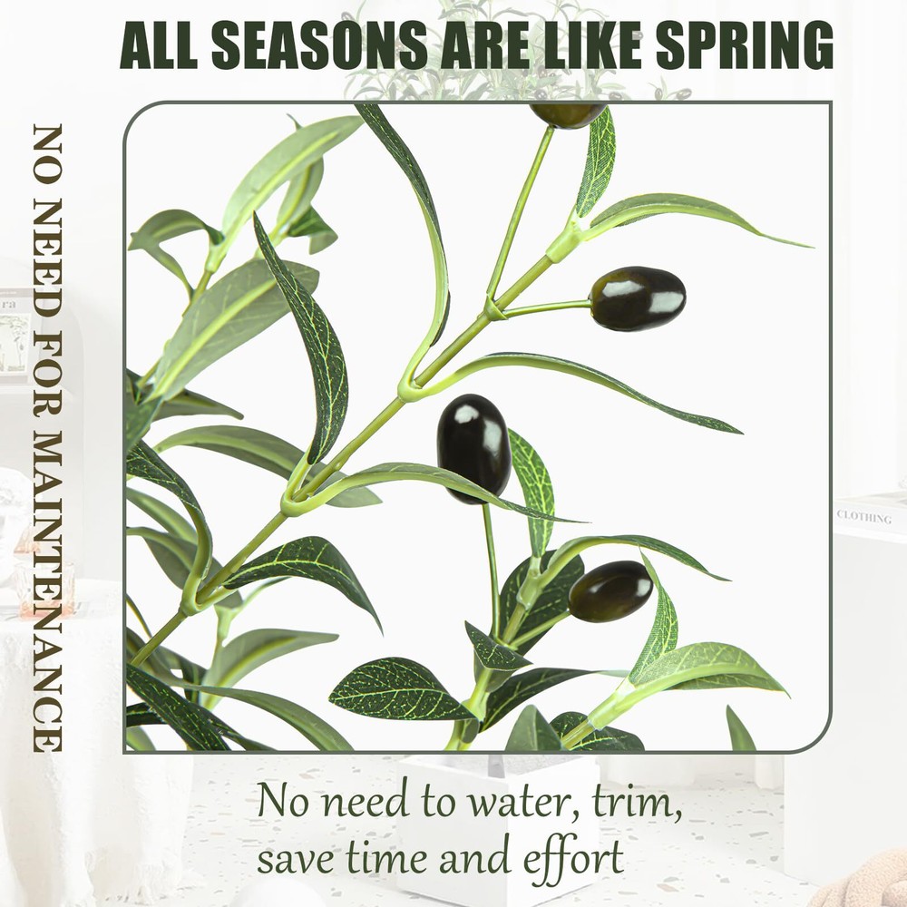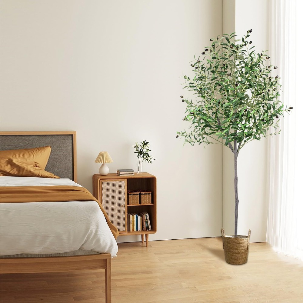 Artificial Olive Tree 6ft, Olive Tree Artificial Indoor, Faux Olive Trees Indoor 6 Feet, Fake Olive Tree, Artificial Olive Trees for Home Decor Indoor Artificial Tree Plant Lifelike Simulation: A artificial olive tree that looks exactly like a real olive tree, with each leaf and fruit exquisitely crafted to replicate their genuine counterparts, Lifelike bark texture tree trunk and lush olive leaves and fruits make the faux olive tree creating a decoration that appears just like a real olive tree and enhances the room, making it an ageless home decor item Quality: This faux olive tree in pot features high-quality polyester materials and iron wire in its stems and branches, making the fake olive tree resistant to deformation and aging. The olive trees's leaves are made of artificial silk fabric, which is durable and easy to clean, ensuring that this tall fake olive tree can bring an elegant and romantic atmosphere to any room for many years. The olive trees artificial indoor makes the perfect gift for friends or family on occasions such as Christmas, Thanksgiving, housewarming, birthdays, or Valentine's Day Perfect decoration: The faux olive tree 6ft is perfect for a variety of commercial places, such as offices, shops, entryways, hallways, bedrooms, classrooms, and shopping malls, as well as for personal spaces like homes, living rooms, and reading rooms. The olive tree artificial symbolize peace, tenacious fighting spirit, life, and eternity, making them a meaningful and elegant addition to any space Free Maintenance: The artificial olive tree indoor stands at 6 feet tall and has a pot base that measures 7 inches and is filled with concrete. The base is covered in black sand and olive tree artificial is adorned with 1176 olive leaves and 72 olive fruits, creating a stunning and elegant display. This faux olive tree requires no water, sunlight, pruning, fertilizing, or special care, and the olive tree 6ft will maintain its appearance and freshness throughout the year. The nearly natural olive tree will never fade or die, and if the olive plant artificial gets dusty, simply wipe it clean with a damp cloth Easy to Assemble: The olive trees artificial indoor are easy to assemble and separate. This artificial olive tree is a perfect interior decoration, and the 6ft olive tree adds a touch of greenery and natural ambiance to your space. We are committed to providing satisfactory service. If you have any questions in the process of purchasing or using the olive trees, please us in time, we will be happy to serve you Note: White decorative pot in picture is included Perfect Decoration: The artificial olive tree 6ft features a realistic bark texture on its trunk, along with abundant olive leaves and fruits that give it the appearance of a stunning work of art. As a symbol of peace, victory, and hope, the 6 ft artificial olive tree is ideal for a diverse range of commercial settings, including offices, shops, entryways, hallways, bedrooms, classrooms, and shopping malls. It's also perfect for personal spaces, such as homes, living rooms, and reading rooms. Lifelike Olive Tree Artificial: The 6ft olive tree artificial of trunks, branches, and leaves have been carefully designed and manufactured to truly replicate real plants, specifically the olive tree. They are incredibly lifelike and can sway in the breeze when it is windy, creating a natural and comfortable atmosphere. They add color to your room and bring you comfort. Strong Trunk:This artificial olive tree plant with a sturdy and durable construction, this faux olive plant in a pot boasts high-quality materials and a strong trunk. The stems and branches are made of plastic and iron wire that can withstand aging and resist deformation. Additionally, the leaves are crafted from artificial silk fabric, making them durable and easy to clean. This tall fake plant will infuse your space with elegance and romance for many years to come. Faux Olive Tree Pot: This faux olive tree pot is made of soft PE material, is designed to securely hold the tree in the center. It is filled with cement and covered with black sand, providing stability and security. The addition of dried moss as a cover enhances its overall appearance, adding to its beauty and harmony. Free Maintenance:This artificial olive trees for home decor indoor is an ideal room decoration for people who love plants but don't have the time or energy to care for a real one. It doesn't require sunlight, watering, pruning, or fertilizer, making it a hassle-free maintenance option. Tree Size: 6ft/70inch/180cm from the pot bottom to the treetop when leaves are in the upright state Black Nursery Pot Size: 5inx7in(HxW) Leaves: 1176 Olives: 72 Shipping We offer FREE shipping on all orders! We ship within Three business days of payment, usually sooner. We use a selection of shipping services such as UPS, FedEx, USPS etc., unable to choose a carrier. We only ship to the lower 48 states, no APO/FPO addresses or PO Boxes allowed. Sellers generally can’t change the shipping address that you provided at checkout. Local pickups and combined shipping options are not provided at this time. International buyers - please note: Import duties, taxes, and charges aren't included in the item price or postage cost. These charges are the buyer's responsibility. Return You can return a product for up to 30 days from the date you bought it by using the seller's FREE RETURN LABEL only. Any product you return must be in the same condition you received it and in the original packaging. International buyers - Rejection and return of the product requires the buyer to pay all shipping and return costs. Please return with the reason "Order mistake" or "Changed my mind" or "Does not fit" for a refund, which would be greatly appreciated. If the buyer wishes to return the items for a refund or replacement, please contact the seller to obtain a free return label. The refund or replacement will be processed using the tracking numb