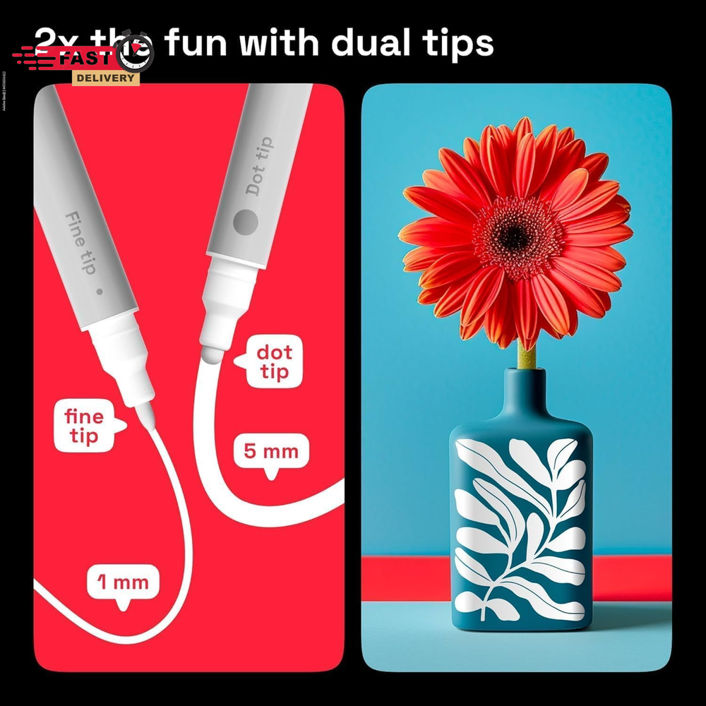 Store New Arrivals Add to Favorite View Feedback Contact ARTISTRO 5 White Acrylic Paint Markers for Rock, Fabric, Wood, Glass, Decoration - Dual-Tip Paint Pens for Coloring Books for Adults, Teens, Kids - Art and Craft Supplies Kit - Gift Idea Description Item model number DTFDWA5 Item Weight 1.76 ounces Style White Number of Items 5 Color White Material Type Plastic Brand ARTISTRO Line Size Fine 1mm + Dot 5mm Grip Type Smooth Manufacturer Part Number DTFDWA5 Ink Color White Recommended Uses For Product Painting, Drawing, Calligraphy, Lettering, Coloring, Sketching, Writing Point Type Dual Tip (Fine + Dot) Package Dimensions 6.34 x 2.17 x 0.47 inches Manufacturer ARTISTRO DUAL TIP FOR FINE + BOLD WORK: Each pen features a 1 mm fine tip for precise lines and a 1–5 mm dot tip for bold strokes and large-area coloring. Seamlessly switch between detailed outlines and vibrant coverage. READY TO USE, NO PREP NEEDED: Pre-activated cotton nibs mean no shaking or pressing. Start creating instantly with smooth-flowing, fast-drying acrylic ink that resists smudging. VIBRANT COLORS FOR CREATIVE FREEDOM: Bold, eye-catching shades, ideal for DIY crafts, cards, journals, school projects, and more. Mix, layer, and experiment for unique effects. WORKS ON NEARLY ANY SURFACE: These multi-surface acrylic paint markers glide over paper, canvas, fabric, wood, glass, metal, ceramic, and rock with fade-resistant, even coverage. SAFE, NON-TOXIC, BEGINNER FRIENDLY: This pack conforms to ASTM D-4236 standards. It's odorless and safe for kids, teens, and adults, and perfect for classrooms, studios, beginners & pros, or hobby craft nights at home. CONVENIENT HORIZONTAL STORAGE FOR LONGEVITY: Store markers horizontally with caps tightly closed to maintain ink quality and flow. This tip ensures your markers are always ready for smooth, vibrant strokes. Product description ABOUT US We offer the best prices around on high quality products. Our E-store includes media such as books, movies, music and games while offering electronics, toys, sporting apparel, clothing, tools, general home, garden items and more. SHIPPING We are always working hard to ensure your package arrives as soon as possible. Please understand that some factors like weather, high postal traffic, and the performance of shipping companies are outside of our control. We offer free shipping to the lower 48 states and ship within 2 business days of payment, usually sooner. We do not accept P.O. Boxes. Please provide a physical address. For shipping outside of the continental USA, we only use eBay's Global Shipping Program.The item is shipped to KY and then sent to the rest of the world. International customers are responsible for all duties and taxes. Continue to check out in order to calculate costs for shipping the item to your country. Messages regarding eBay's Global Shipping Program MUST be directed at eBay EXCLUSIVELY. RETURNS We offer a 30-Day Return Policy on items which you are not completely satisfied with. You have the option for a full-refund or an exchange of the item. No returns are available on items shipped outside of the USA. PAYMENT We accept PayPal. CONTACT US This page content is yet to come Please ad us to your favorite seller and visit again later Thank You CUSTOMER SATISFACTION We try our very best to make sure every customer is completely satisfied. If there's a problem, message us! We're happy to help. WE ACCEPT Copyright © 2021 AutoDS. | All Rights Reserved