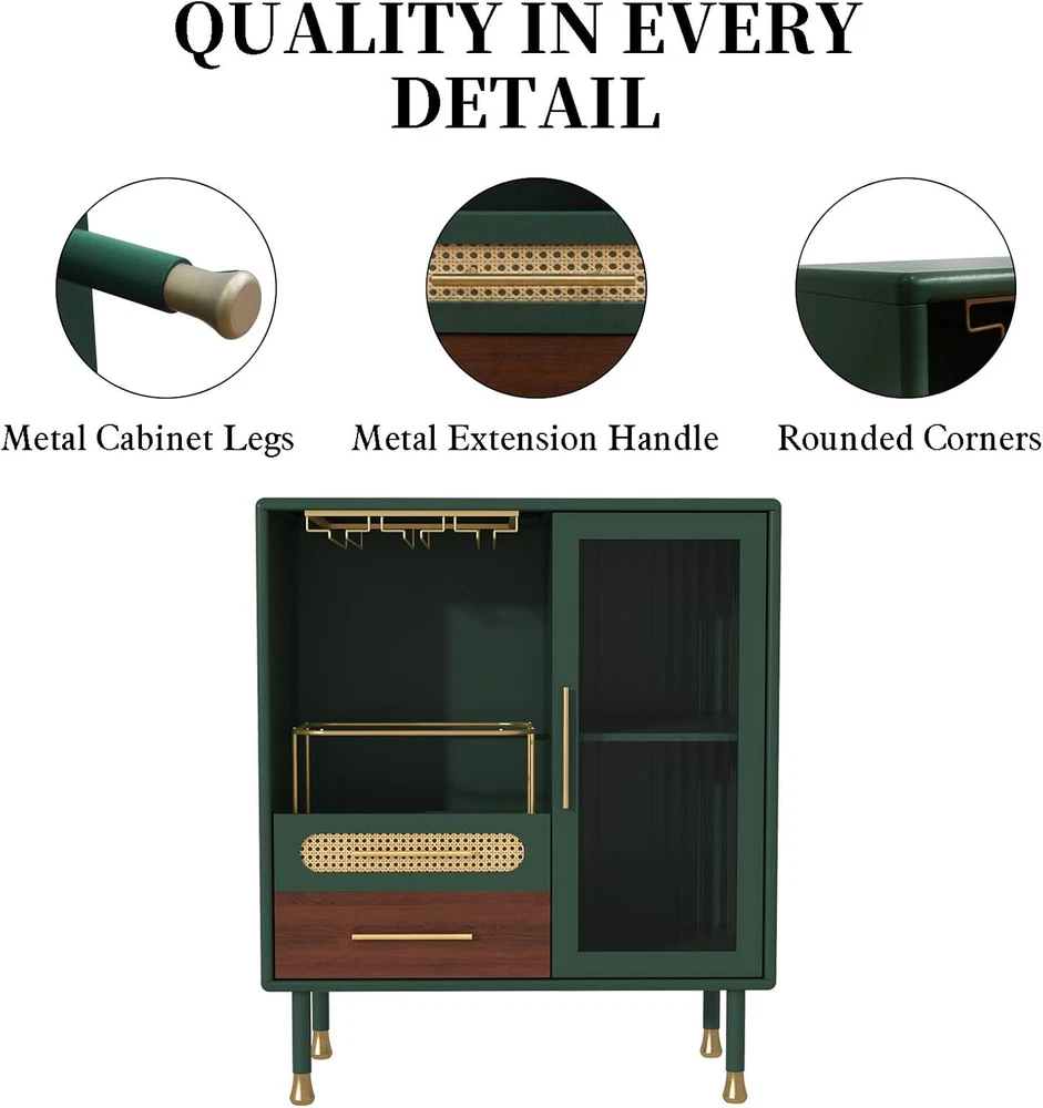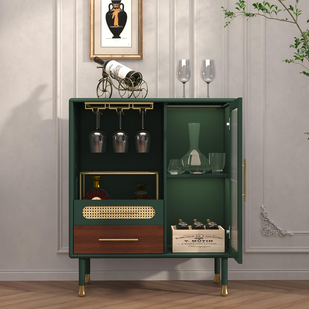 Store New Arrivals Add to Favorite View Feedback Contact ARTPOWER Modern Coffee Bar Cabinet with Wine Glass Rack and Drawers, Green Liquor Cabinet with Pull-Out Wine Storage for Kitchen, Dining Room, Living Room Description Item model number c1f486db-eb0f-4ac6-871a-9c5b10107a70 Top Material Type Engineered Wood Room Type Dining Room, Kitchen, Living Room Is Customizable Yes Assembly Required Yes Brand ARTPOWER Material Wood Installation Type Freestanding Frame Material Engineered Wood Hardware Color Gold Finish Type Green Included Components Shelves Set Name Green Door Style tempered glass, tempered glass Assembly Instructions Description The coffee bar cabinet comes with clear instructions and all necessary hardware. Each component is labeled for easy identification, simplifying the assembly process. Lock Type No Lock Number of Shelves 3 Special Feature Removable Shelf, drawer Number of Levels 5 Mounting Type Floor Mount Color Green Shape Rectangular Base Type Legs Recommended Uses For Product Bottles, Glass, Home Bar, Wine Manufacturer ARTPOWER Product Dimensions 14.96"D x 31.49"W x 37"H Size 37 inches x 14.96 inches x 31.49 inches 【Partitioned Storage】: The wine bar cabinet has ample internal storage space with 3 integrated stemware racks. The pull-out wine bottle storage space is convenient and quick(the drawers are smooth gliding). The bottom drawers can store bar tools, and independent cabinets with removable shelves can freely customize the space according to the size of the items. 【Furniture-grade Materials】: This coffee bar cabinet is made of P2-grade MDF, paired with tempered glass cabinet doors, and supported by 4 sturdy metal legs for long-term use. Environmentally friendly lead-free paint is safe and healthy. Just wipe it with a damp cloth in daily life. 【Exquisite and stylish design】: This liquor buffet cabinet is available in two finishes. Gold accessories embellish the stylish green and classic black, creating a timeless modern look. It is perfect for adding a touch of elegance to your dining room, living room, or kitchen. 【Space-saving design】: This compact bar cabinet with storage measures 37 inches x 14.96 inches x 31.49 inches, suitable for placement in any room without taking up space. It is a stylish and practical solution for storing beverages, glassware, and bar necessities. 【Easy to Assemble】: Designed with user-friendly assembly in mind, this buffet storage cabinet comes with clear instructions and all necessary hardware. Each component is labeled for easy identification, simplifying the assembly process. You'll have your home bar installed in no time. Product description Video of Wine Bar Cabinet The video showcases the product in use. The video guides you through product setup. The video compares multiple products. The video shows the product being unpacked. Video of Wine Bar Cabinet Merchant Video Pull-out Wine Bottle Storage 3 Rows Wine Glass Holders Smooth Waterproof Tabletop Sturdy Metal Legs Modern Coffee Bar Cabinet Liquor Buffet Cabinet 32'' Bar Cabinet Standard vs. Larger Size 32'' x 14.9'' x 37'' Dimensions 48'' x 14.9'' x 37'' 2 Number of drawers 3 Wine Racks 32'' x 14.9'' x 37'' Dimensions 48'' x 14.9'' x 37'' 2 Number of drawers 3 Wine Racks 48'' Bar Cabinet 48'' Wine Cabinet ABOUT US We offer the best prices around on high quality products. Our E-store includes media such as books, movies, music and games while offering electronics, toys, sporting apparel, clothing, tools, general home, garden items and more. SHIPPING We are always working hard to ensure your package arrives as soon as possible. Please understand that some factors like weather, high postal traffic, and the performance of shipping companies are outside of our control. RETURNS We offer a 30-Day Return Policy on items which you are not completely satisfied with. You have the option for a full-refund or an exchange of the item. No returns are available on items shipped outside of the USA. PAYMENT We accept PayPal. CONTACT US This page content is yet to come Please ad us to your favorite seller and visit again later Thank You CUSTOMER SATISFACTION We try our very best to make sure every customer is completely satisfied. If there's a problem, message us! We're happy to help. WE ACCEPT Copyright © 2021 AutoDS. | All Rights Reserved