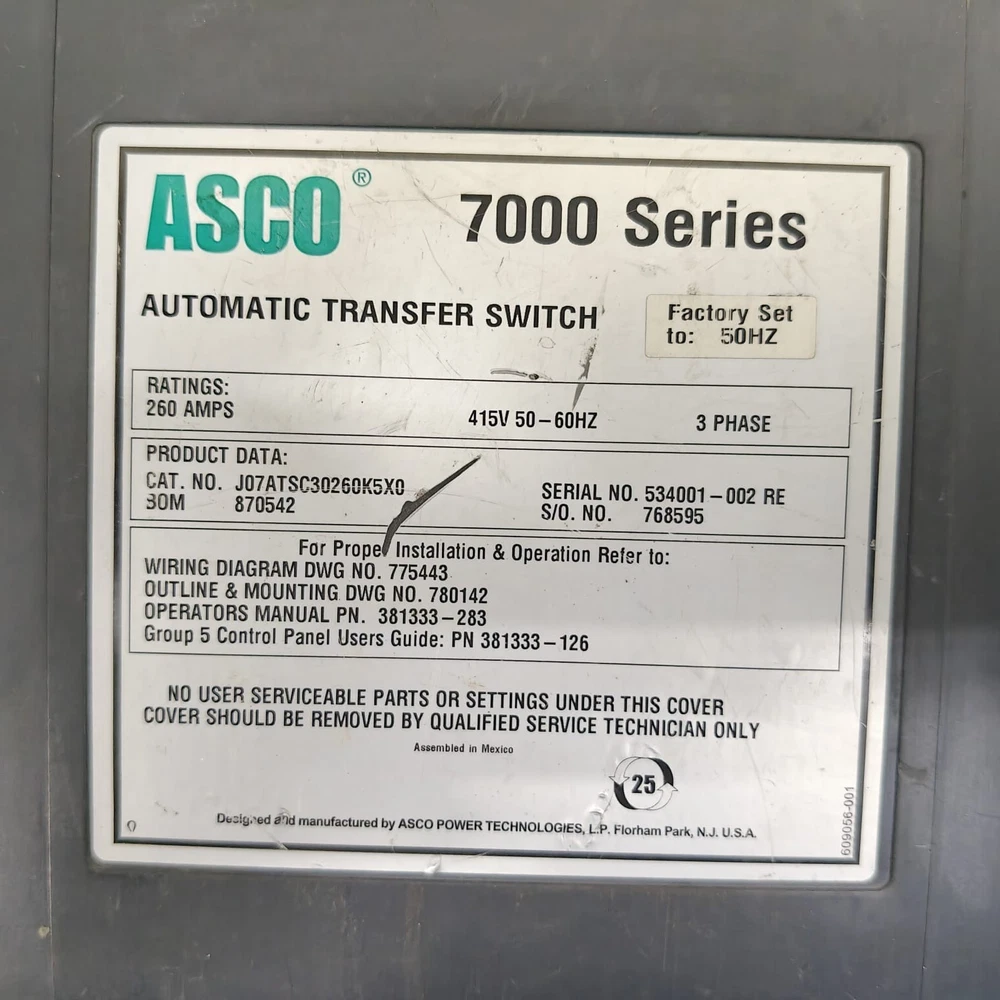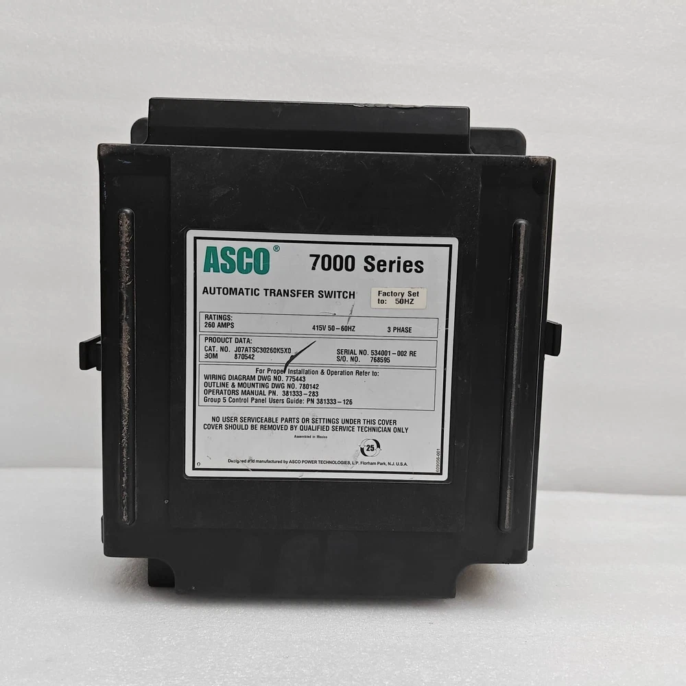 ASCO 7000 Series Automatic Transfer Switch Controller 260AMPS 3Phase 7000 Series Automatic Transfer Switch Controller 260AMPS 3Phase J07ATSC30260K5X0 TAXES & IMPORT DUTIES Custom Duties And Taxes Are Not Included In The Item Price. Customer Has To Pay Separately. PAYMENT: eBay payment policy (Payoneer). DELIVERY TIME: Ship within Maximum 2 working Days By Express Economy Services. PACKING: Quality packing with Fragile mark on each box. Assured safe and undamaged delivery. Our first responsibility is to ensure that the item reaches the customer safely, so we pack it well. SHIPPING: Free Shipping on all products below FedEx Express, DHL Express, UPS Standard International Shipping. RETURN POLICY: Returns accepted within 30 days. Duty charges and Shipping charges will be borne/pay by the Buyer. Return/Replacement is not accepted in For Part items. About us: We are the Stockiest Supplier for Marine and Industrial Automation Equipment. We provide quality-tested products at the best prices with rapid delivery services. We assure you of the quality and best prices for all our products. Our scope of supply is: PLC (ABB | Siemens | Allen Bradley | Mitsubishi | Delta | Honeywell | Fanuc) HMI (ABB | Siemens | Allen Bradley | Mitsubishi | Delta ) PCB (ABB | Kongsberg | Emerson | Niigata | Westronics | Wartsila) Input & Output Modules for PLC Smoke Detector (Consilium | Salwico | Nohmi | Simplex | Autronica) Power Supply (Terasaki | Astron | Newmar | Omron | Weidmuller | Puls) Pressure Switch (Saginomiya | Norgren | Rexroth | Trafag | Danfoss | Square-D) Pressure Transmitter (Honeywell | Rosemount | Nagano Keiki | ABB | Danfoss) Sensors and Transducers (Honeywell | Stellar | Shinko | Celesco | Saacke) Turbochargers, Hydraulics Pumps Motors Etc Marine And Industrial Equipment. Thank you
