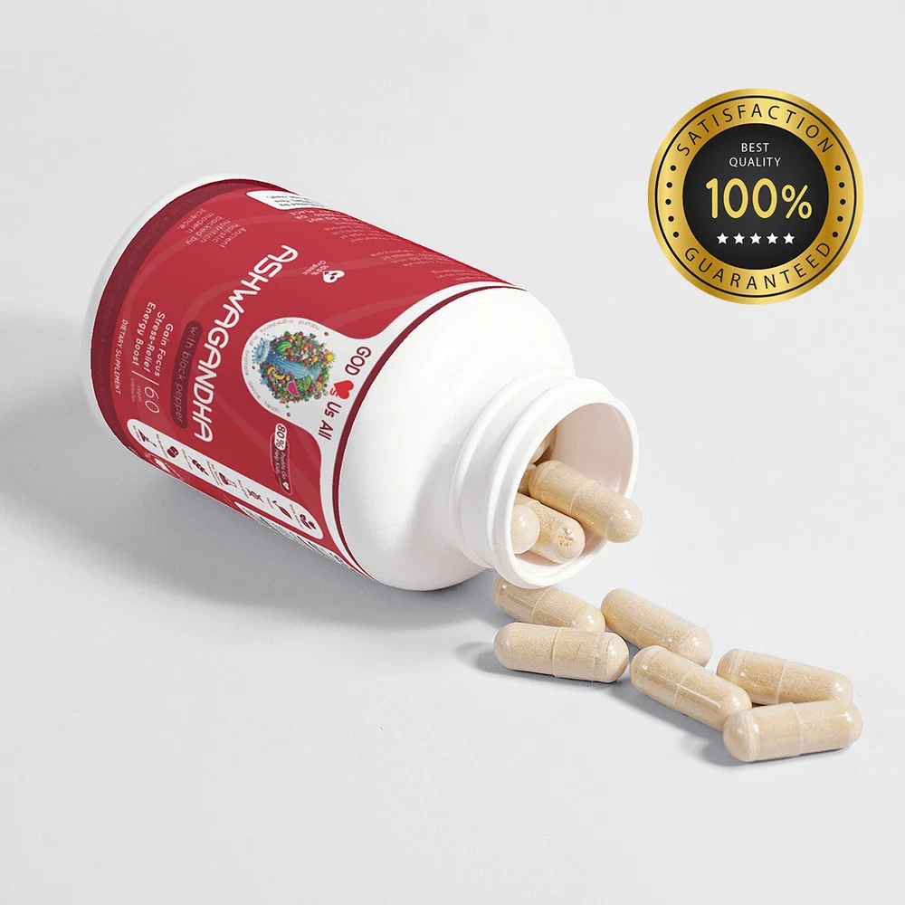 For More Info & 15% Discount Code Visit: godlovesusall.com Our GOD Loves™ ASHWAGANDHA is an ancient herb used in Ayurvedic medicine, India’s traditional healthcare system. Recently popularized worldwide, it’s most well-known as a powerful adaptogen that helps calm stress levels. Our ASHWAGANDHA contains Black Pepper Fruit and other potent natural chemicals that help to support overall health in the body. Ingredients: Organic Ashwagandha (Withania somnifera)(root), Organic Black Pepper (Piper nigrum)(fruit), pullulan capsules. Manufacturer Country : USA Amount : 60 caps Gross Weight: 0.25lb (113g) Suggested Use: Take one (1) capsule twice a day as a dietary supplement. For best results, take 20-30 min before a meal with an 8oz glass of water or as directed by your healthcare professional. Caution: Do not exceed recommended dose. Pregnant or nursing mothers, children under the age of 18, and individuals with a known medical condition should consult a physician before using this or any dietary supplement. Warning: This product is not intended to diagnose, treat, cure or prevent any disease. Keep out of reach of children. Do not use if the safety seal is damaged or missing. Store in a cool, dry place. *These statements have not been evaluated by the Food and Drug Administration. This product is not intended to diagnose, treat, cure or prevent any disease.