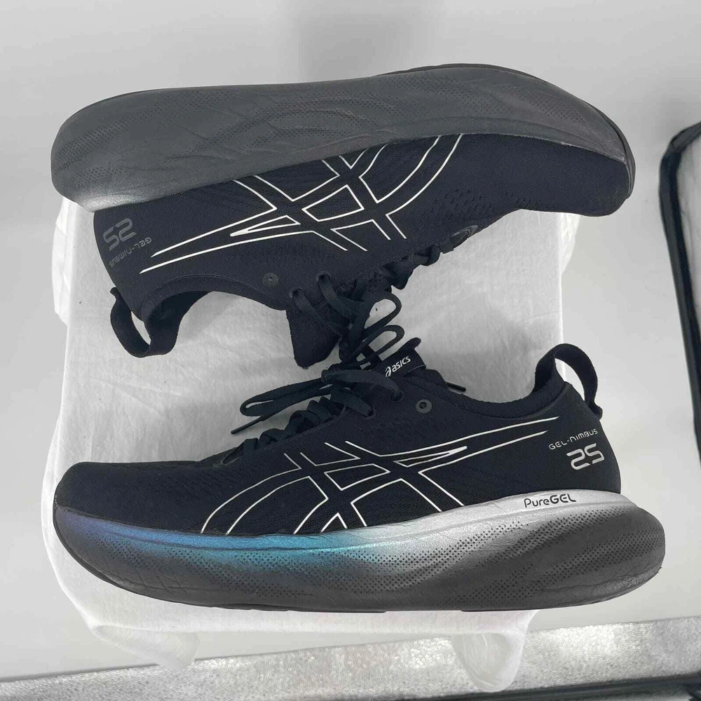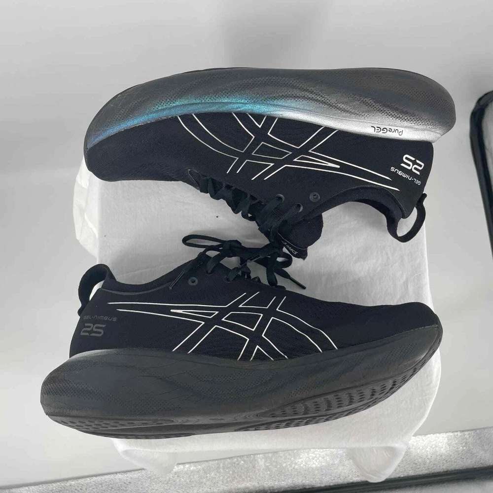 ASICS 23 Gel-Nimbus 25 Platinum Women's 12 Running Shoes Jogging Sports 1011B616-001 Size: 12 USA women's Pretty good condition. Just has some hair on the inside of the shoe Cross listed on several platforms Feel free to ask any questions!