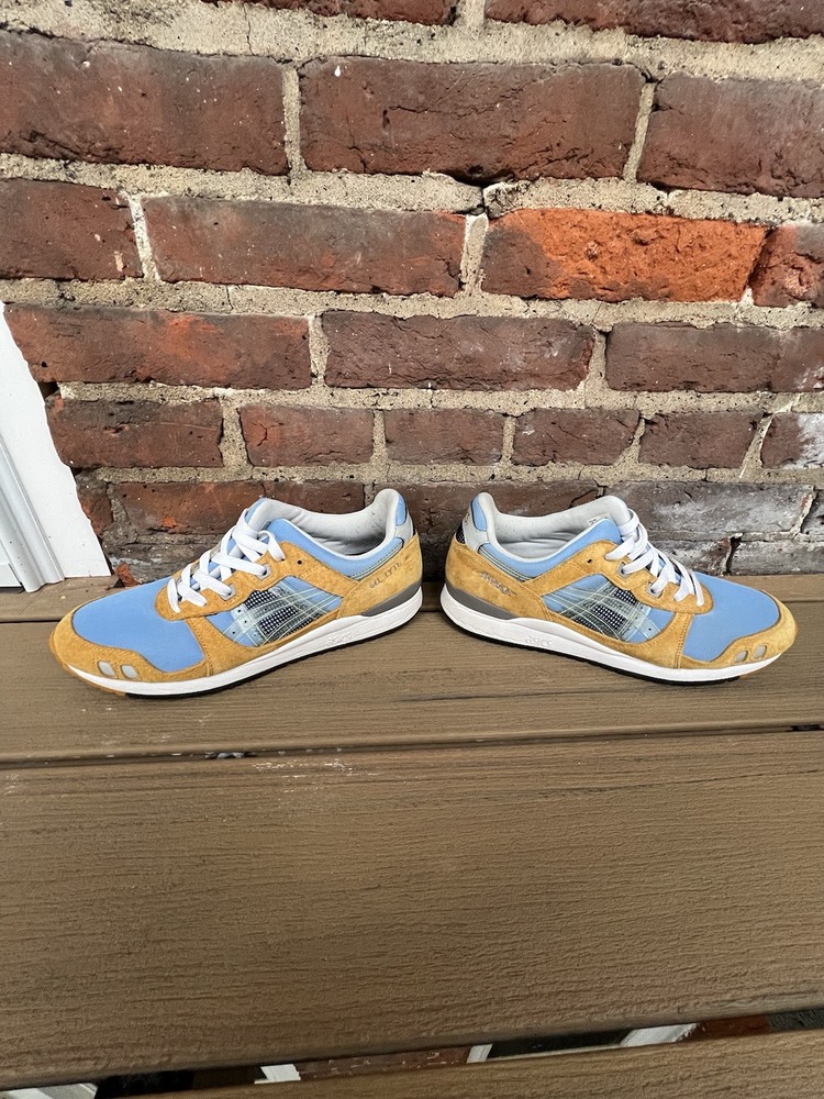 Step into comfort and style with the ASICS Gel Lyte 3 Della Robbia Blue Shoes. Designed in collaboration with Awake NY, these sneakers blend a sleek blue suede upper with the iconic Gel Lyte 3 silhouette, offering a versatile look that's as suitable for a casual day out as for an athletic event. The shoes feature a low-top shaft for a comfortable fit around the ankles, while the standard shoe width ensures a snug and secure feel. The gel insole material provides superior cushioning, and the sneakers are crafted in Vietnam, ensuring the quality and craftsmanship ASICS is known for. Embrace the perfect fusion of fashion and function with these athletic sneakers. Cool split tongue. Great condition
