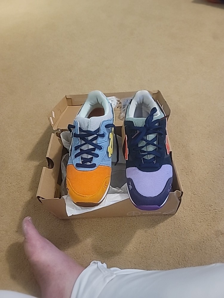 This limited edition ASICS GEL-Lyte III x Sean Wotherspoon x Atmos sneaker is a must-have for any collector or fashion-forward individual. The shoe features a colorful patchwork design, low top style, and standard shoe width. The upper material is made of corduroy and the lining material is fabric. The insole material is gel and the outsole material is rubber. The shoe is suitable for various occasions including activewear, casual workwear, and sports. It has a lace-up closure and is available in size 9 (US), 8 (UK), and 42.5 (EU). The shoe is part of the ASICS GEL product line and is perfect for activities such as running, gym & training, cycling, and hiking. Listed used but brand new never worn. Ebay authentication said the inside been worn but not the outside look over pictures. Box messed up. These are Brand new never worn but Ebay making us put used check the picture