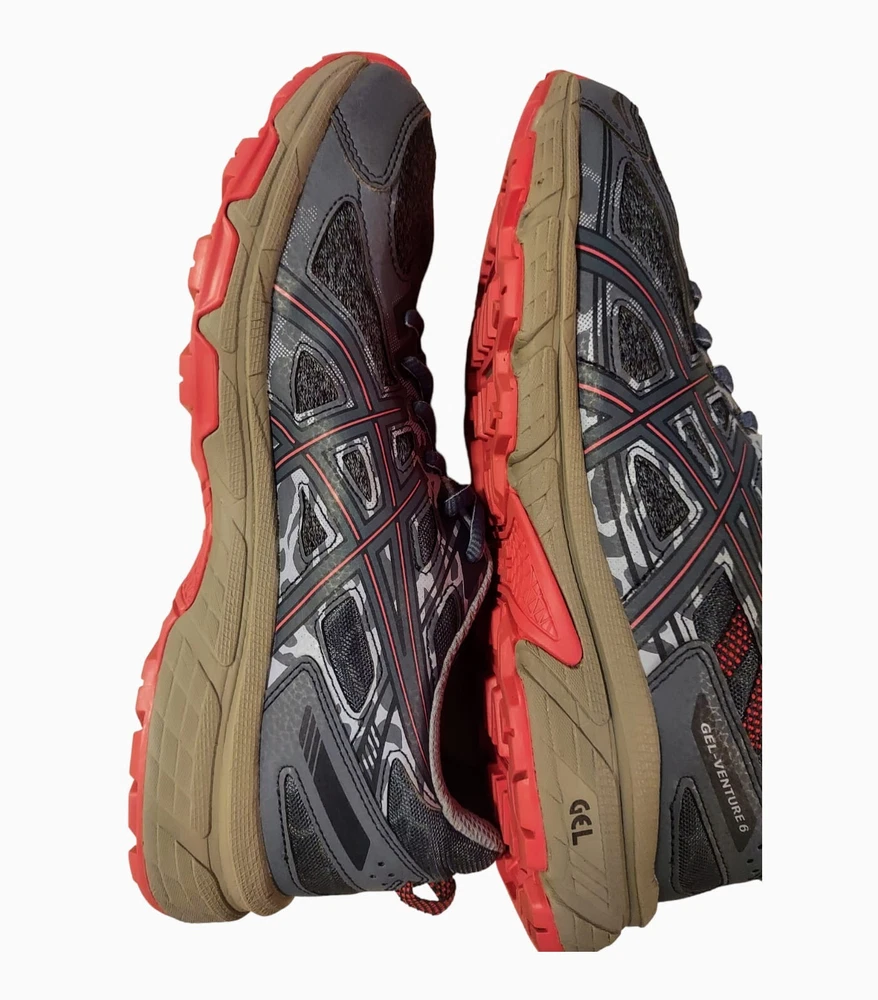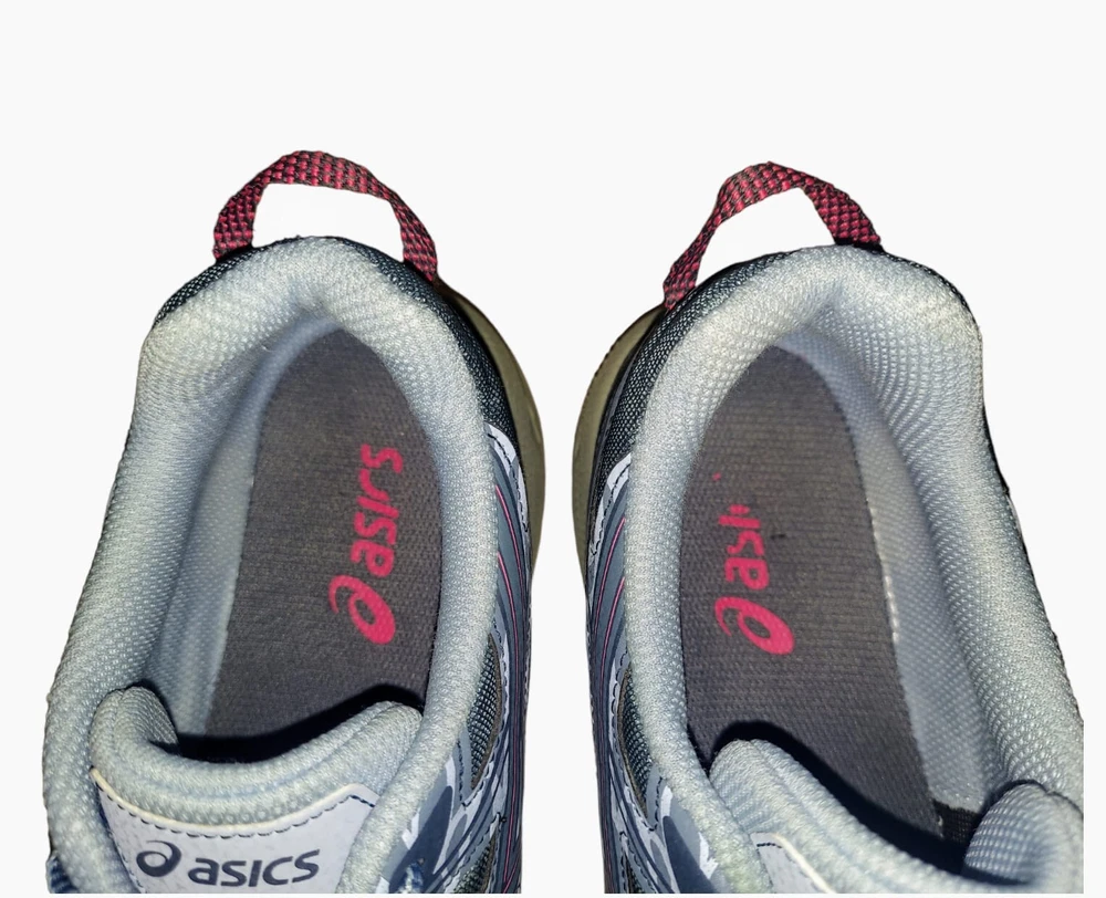 Elevate your activewear game with these ASICS Gel Venture 6 athletic running shoes in a stylish gray, blue, and pink colorway. These sneakers feature a knit fabric type, lace-up closure, and a low-top shoe shaft style. The rubber outsole material and cushioned insole provide comfort and support for moderate activities, making them perfect for winter, summer, fall, and spring. In addition to their functional features, these shoes also have arch support, breathability, and are handmade in Vietnam. The ASICS Gel Venture 6 is part of the ASICS GEL product line and is designed for women's shoe size 10. These shoes are perfect for both casual and athletic activities, such as tennis. Get ready to step up your game with these ASICS Gel Venture 6 sneakers.
