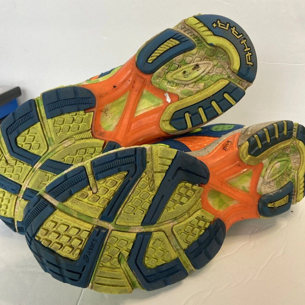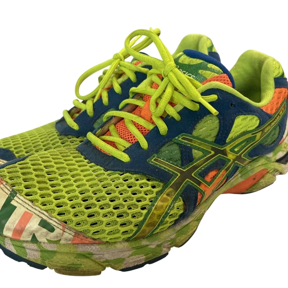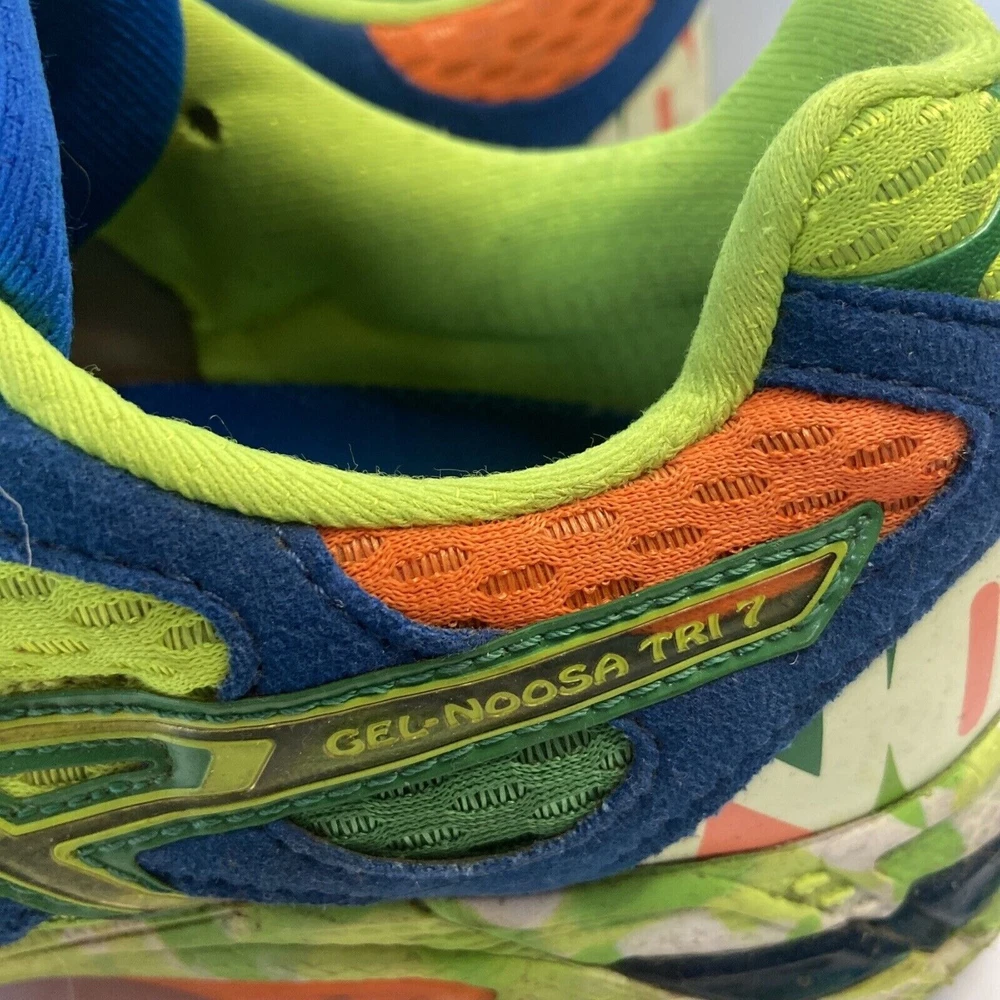 These are ASICS Gel-Noosa Tri 7 women's running sneakers in size 8. Featuring a low-top shaft style with a multicolor design, lace-up closure, and medium width. The shoes are designed for walking, cross-training, and running, with the ASICS GEL-Noosa technology for enhanced performance.