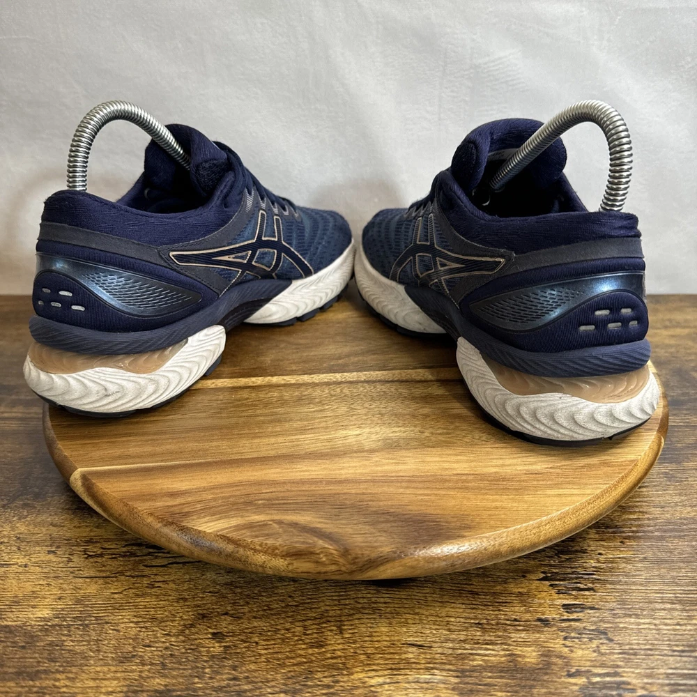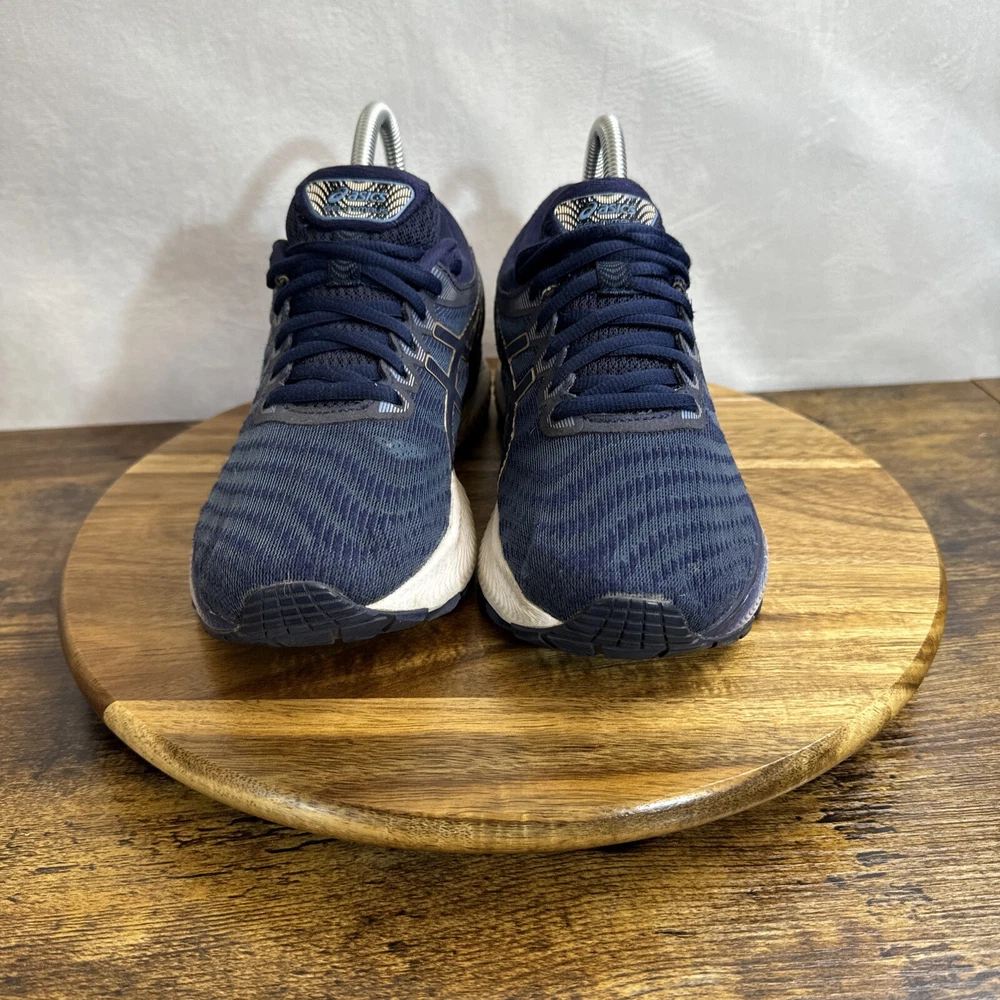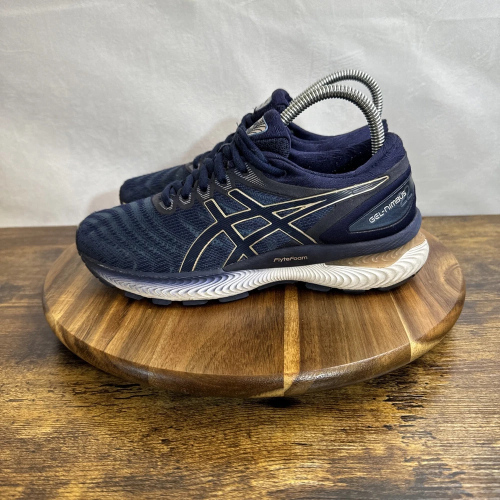 Elevate your activewear game with these ASICS Women's 7 Gel Nimbus 22 Running Shoes. Designed for comfort, breathability, and cushioning, these shoes are perfect for gym and training, track and field, tennis, school, volleyball, cross-training, basketball, cheerleading, and running and jogging. The blue and grey color combination with logo accents adds a touch of style to your activewear. These shoes feature a low-top shoe shaft style, lace-up closure, and a standard shoe width. The synthetic upper material and fabric lining material make them durable and comfortable for long-term use. The rubber outsole material and cleat type provide the necessary grip and stability during your workouts. These ASICS Gel Nimbus 22 running shoes are a must-have for any active woman's shoe collection.