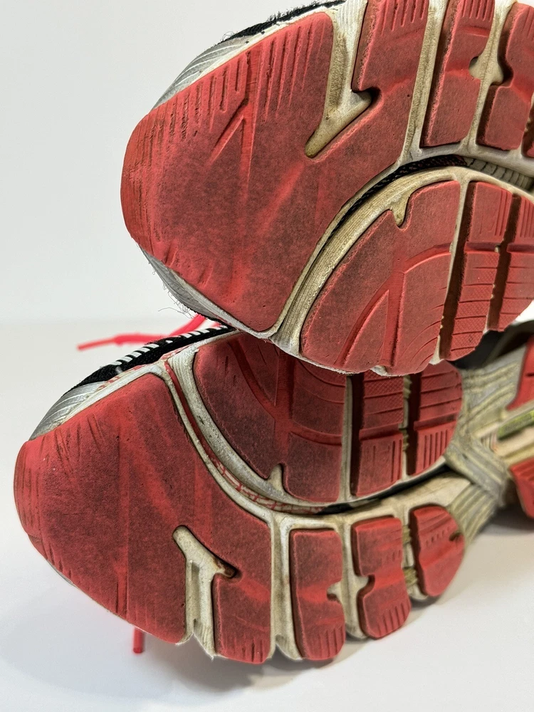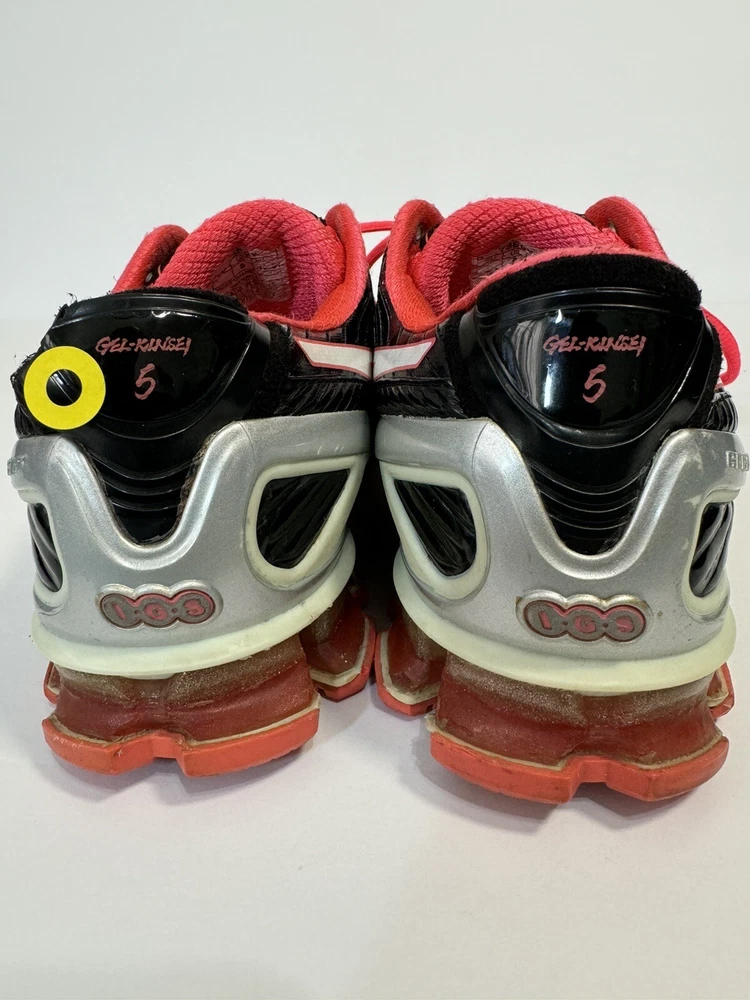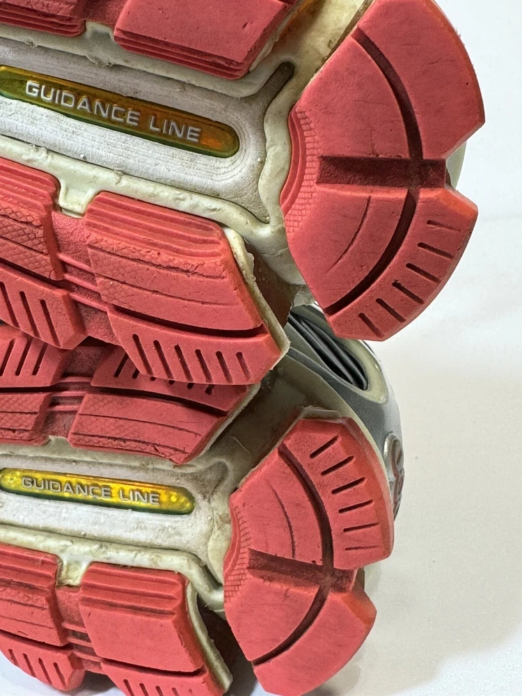 Elevate your athletic game with these ASICS women's running shoes. Designed with a mid-top shoe shaft style and lace eyelet accents, these sneakers offer a vintage 90s look with modern features. The synthetic upper material and gel insole provide cushioned comfort and performance support for gym and training activities, cross training, CrossFit, walking, and running and jogging. These ASICS Gel-minded Fluid Fit sneakers come in a white and pink color scheme with a F-360 style code and ASICS Fit product line. The customized shoes are pre-owned and in excellent condition for their release year of 2022. Perfect for women with UK shoe size 8.5, US shoe size 9, and EU shoe size 43, these shoes offer both style and functionality. Hair-line crack top of shaft as shown in photo by yellow sticky.