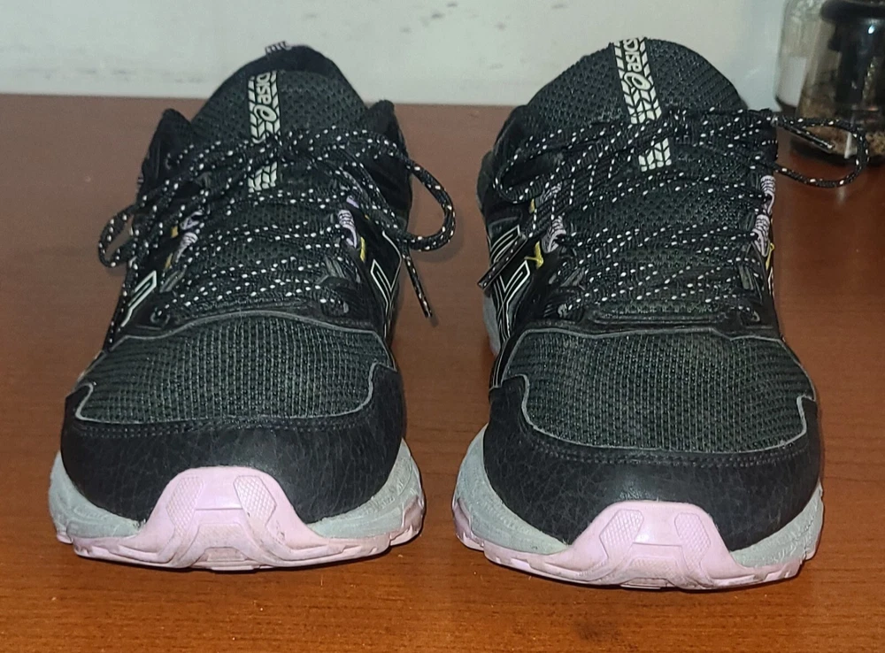 Elevate your active lifestyle with these ASICS Women's Shoes. Designed with a comfortable mesh upper material and a gel insole, these running shoes are perfect for gym & training, walking, school, cross training, CrossFit, and running & jogging. The lace-up closure ensures a secure fit, while the low top shoe shaft style adds a trendy touch to your workout wardrobe. Featuring a stylish black and lavender color combination, these shoes are a perfect fit for women looking for athletic shoes with a touch of style. The ASICS GEL-Venture model is a reliable choice for those who want to stay comfortable and stylish during their workouts. Get yours today and step up your fitness game!