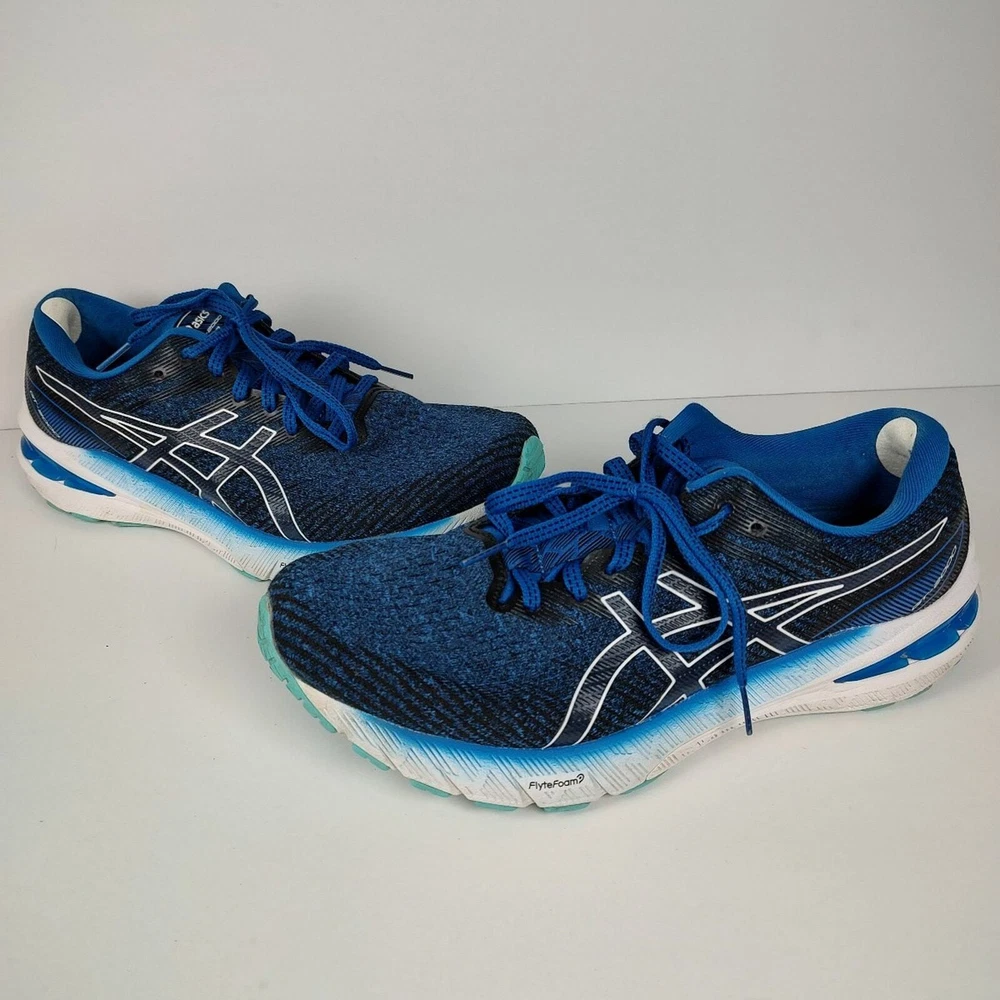 Asics GT-2000 10 - blue Asics running shoes, mens size 8.5. They have some patches on the heel (see pictures) but otherwise they're in great condition, no holes or stains. They've been thoroughly cleaned before listing