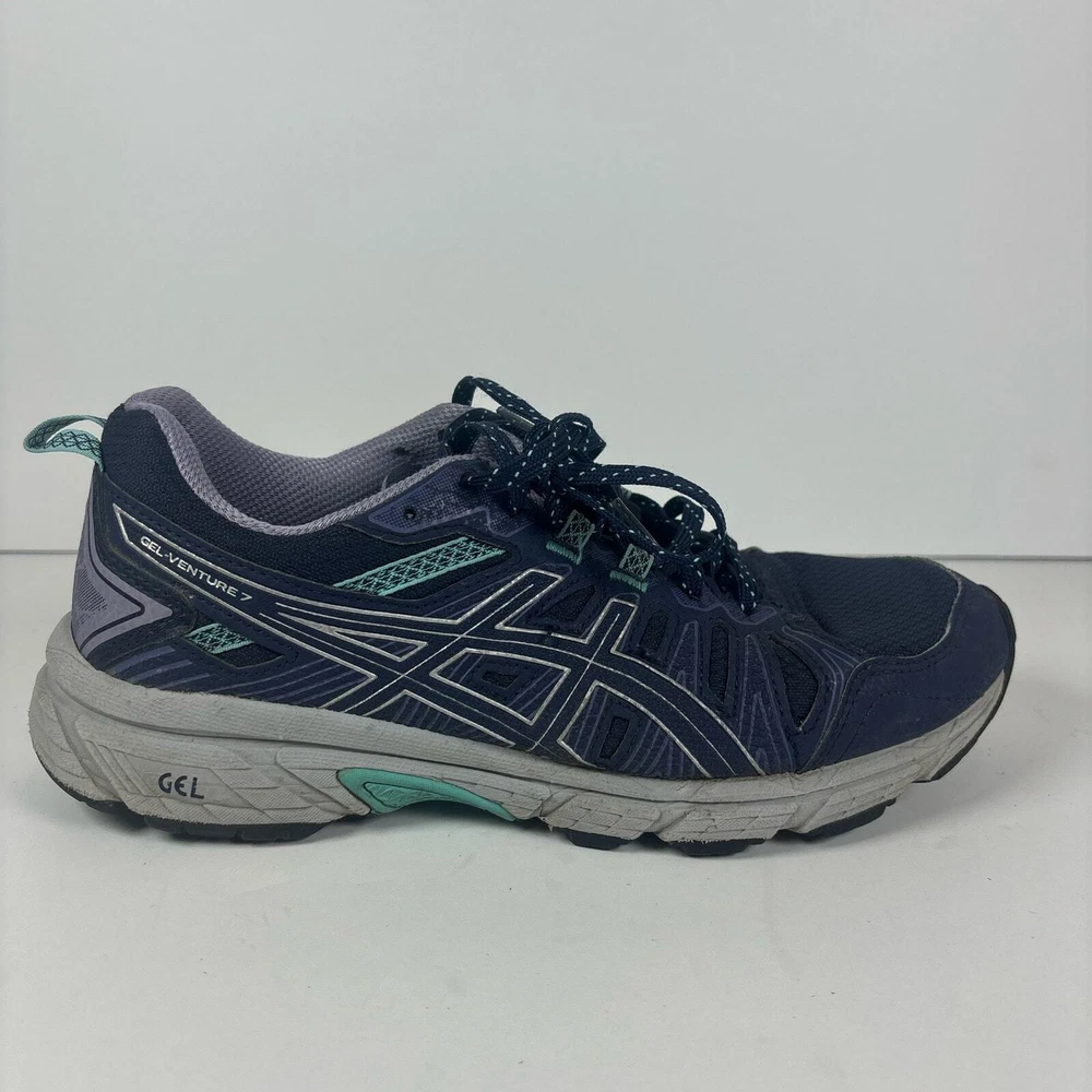 ASICS Gel Venture 7 Running Shoes Women’s US Size 8.5 Blue Purple 1012A476 In good condition no holes or stains as shown in pictures Refer to pictures before purchase as all flaws are shown Has been thoroughly washed before listing