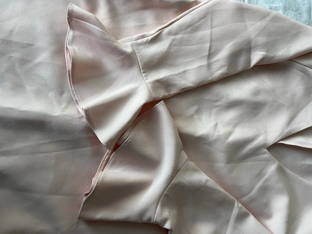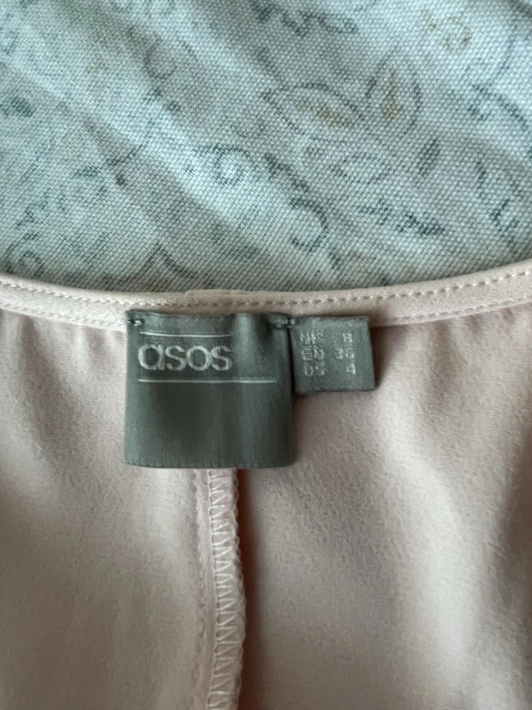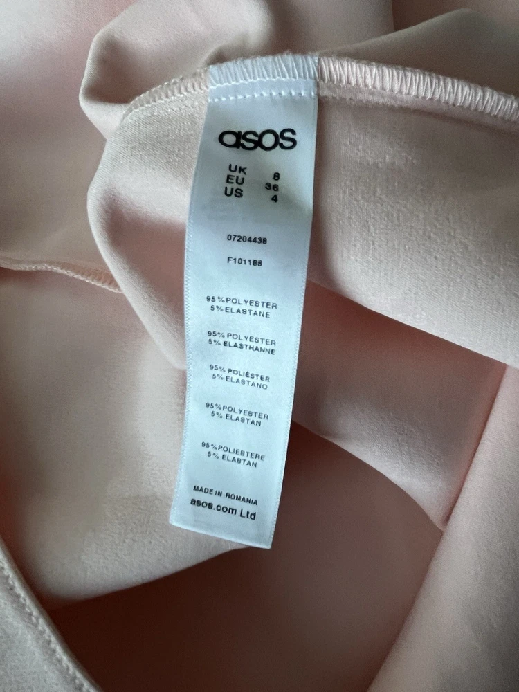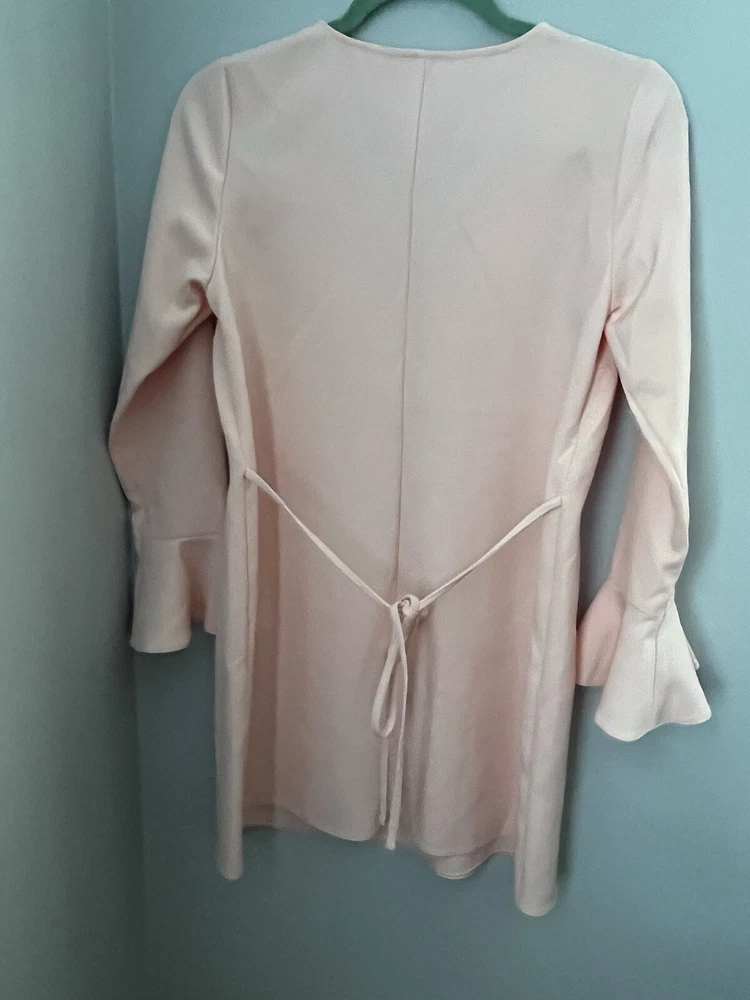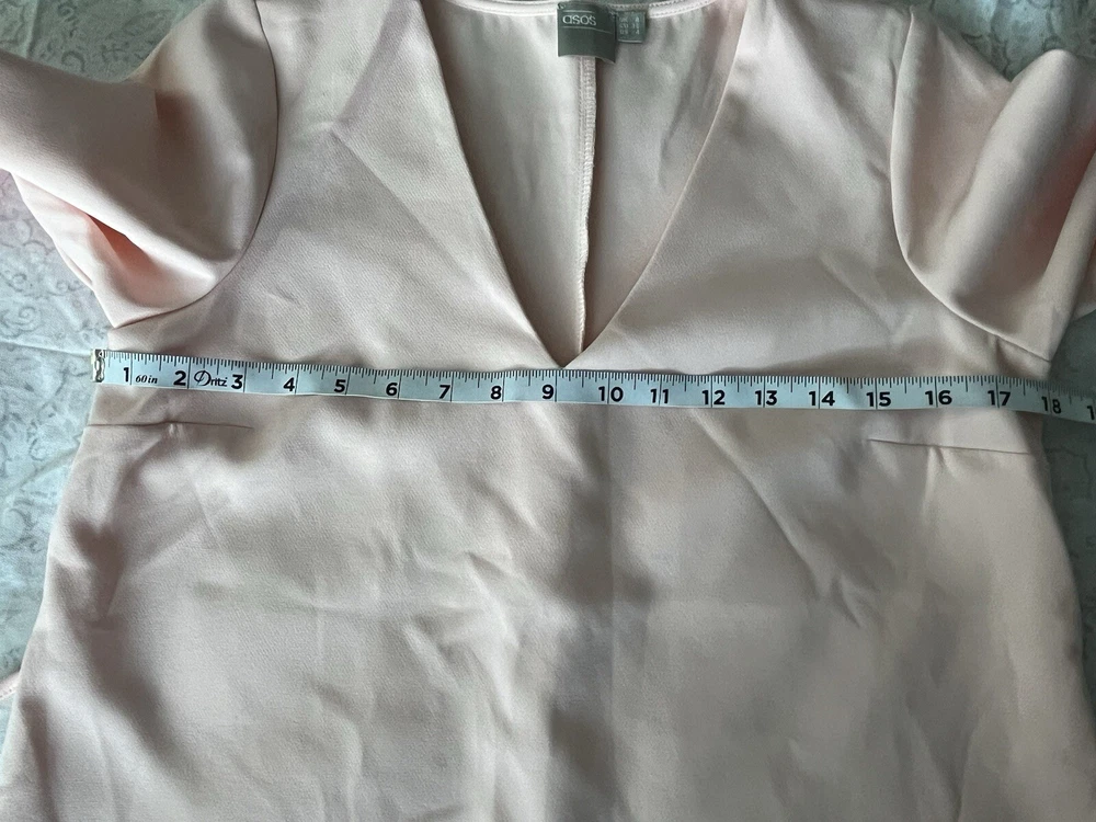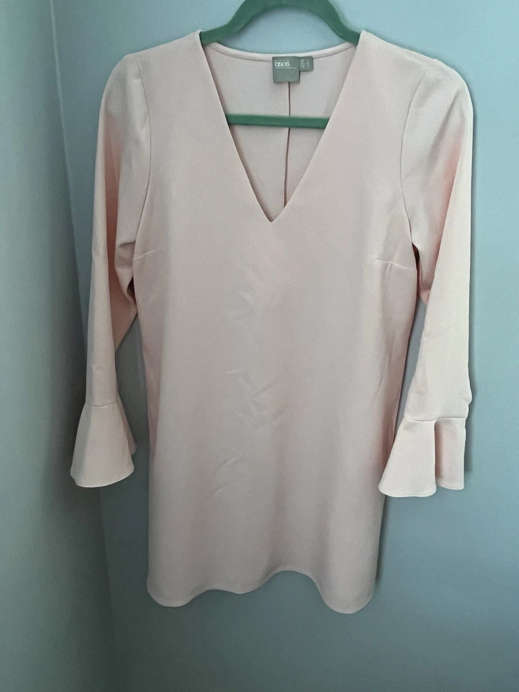 This ASOS mini dress in a beautiful light pink color is perfect for any occasion. With a flattering V-neckline and long bell sleeves, this dress is both comfortable and stylish. The dress is made of a lightweight and adjustable polyester and elastodiene material, making it perfect for the summer and spring seasons. The dress features a solid pattern and a pullover closure, making it easy to wear. It is suitable for parties, cocktail events, casual outings, workwear, and even business meetings. The dress is designed for women, has a regular size type, and is part of the Women's Clothing category. It is perfect for those who love nautical, colorful, baby shower, and classic themes.