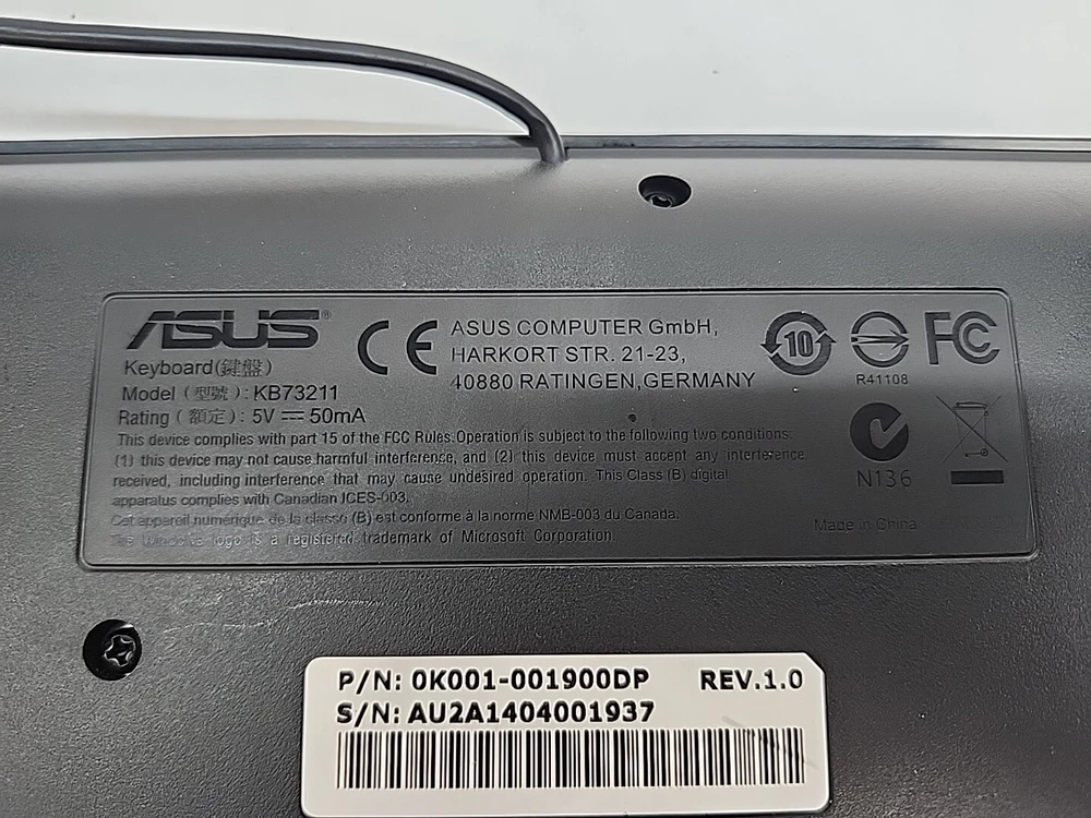 ASUS KB73211 Wired USB Keyboard Black Genuine Tested Desktop Typing