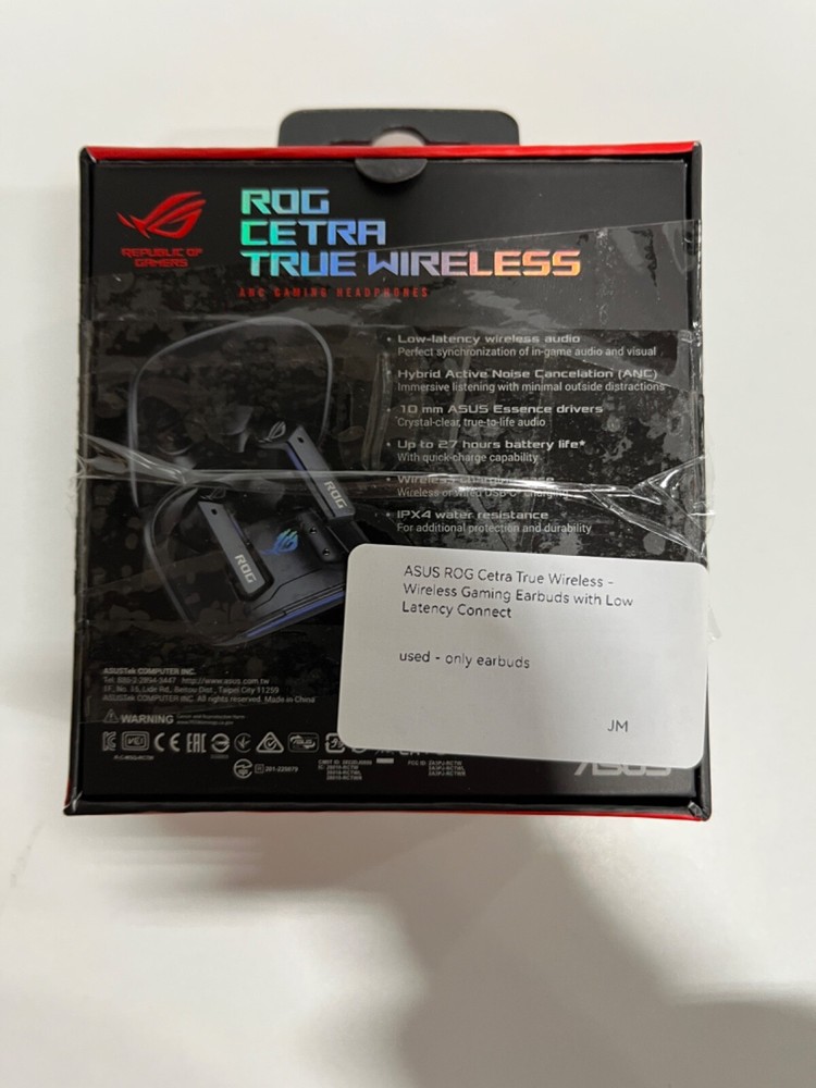 Number of Earpieces:DoubleBrand:ASUSForm Factor:In-Ear OnlyConnectivity:BluetoothType:Earbud (In Ear)Model:ASUS ROG Cetragtin13:0195553504065Wireless Technology:BluetoothMicrophone Type:Built-InFeatures:Wireless, Built-in MicrophoneColor:BlackUPC:0195553504065