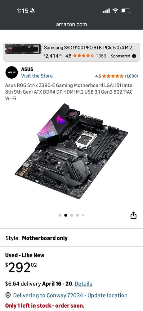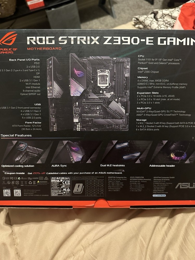 ASUS ROG STRIX Z390-E GAMING ATX LGA1151 DDR4 Motherboard HDMI M.2 Wi-Fi