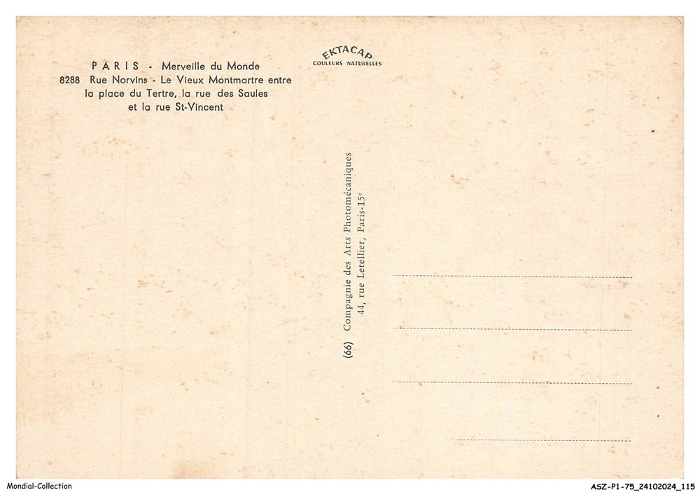 Bonjour à tous ! N'oubliez pas de bien VISIONNER LES SCANS des cartes pour voir les éventuels défauts( Plis, tâches, déchirures etc ). Il arrive qu'il manque des angles ou des traits sur le visuel qui est du à un défaut lors de la numérisation. Vous achetez ce que vous voyez. Nous notons aussi souvent que possible les détails de la cartre au verso. N'hésitez pas à nous contacter avant d'enchérir pour toute question ou précision. Bonne visite dans notre boutique ! Merci pour vos achats. - ASZP1-0058-75 - PARIS - Merveille du Monde - Rue Norvins - Le vieux Montmartre entre - La place du Tertre - La rue