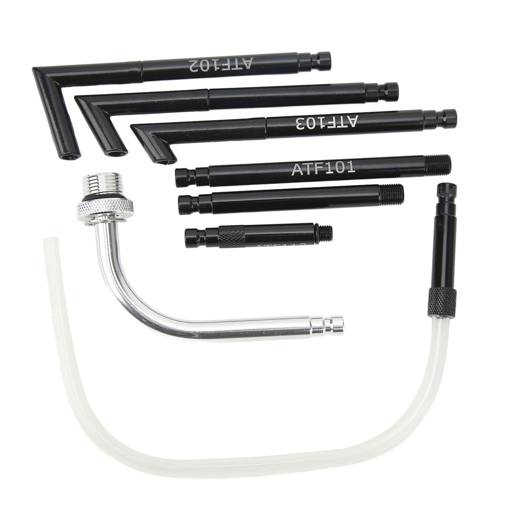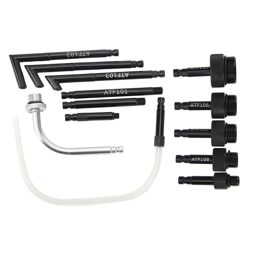 Featrues: 1、ATF Filling Adapter: Adapter set for ATF refill, provides a complete set for sealed automatic transmissions service. Heavy duty construction allows for strength and durability. 2、Easy to Use: The adapter surface is engraved with threads, which can be quickly screwed into the plug hole, and the operation is simple, which greatly saves your time. 3、Function: The transmission oil fill adapter kit is used to connect the automobile oil pan and the ATF filling tool, and is used in conjunction with the ATF filling system. 4、Complete Tool: Including 13 adapters with different outlet angles and thread sizes, which are widely used in different applications, and is marked with the ATF model for easy identification. 5、Good Air Tightness: Used of thread locking ensures that the adapter and the device is tightly connected, there will be no air or liquid leakage. Specification: Item Type: ATF Gearbox Filling Adapter Material: Carbon steel Specification: ATF-101: Replacement for Ford 1/8-27 (NPT) ATF-102 ATF-103 ATF-104 ATF-105: Fit for Copper M10x1.0 ATF-106: Fit for M24x1.5 ATF-107: Fit for CVT M22x1.5 ATF-108: Fit for M18x1.5 ATF-109: Fit for M12x1.5 ATF-110: Fit for M30x1.5 ATF-111: Universal Flexible 300mm, replacement for Hyundai adn replacement for Kia etc. ATF-112: Fit for 5/16-24 (UNF) ATF-113: Fit for M18x1.5 Package_list: 1 x ATF Gearbox Filling Adapter Set (13 pcs) 1 x Storage Box 1 x Manual