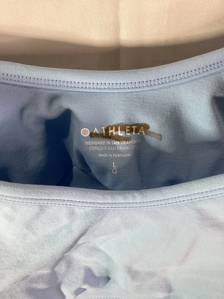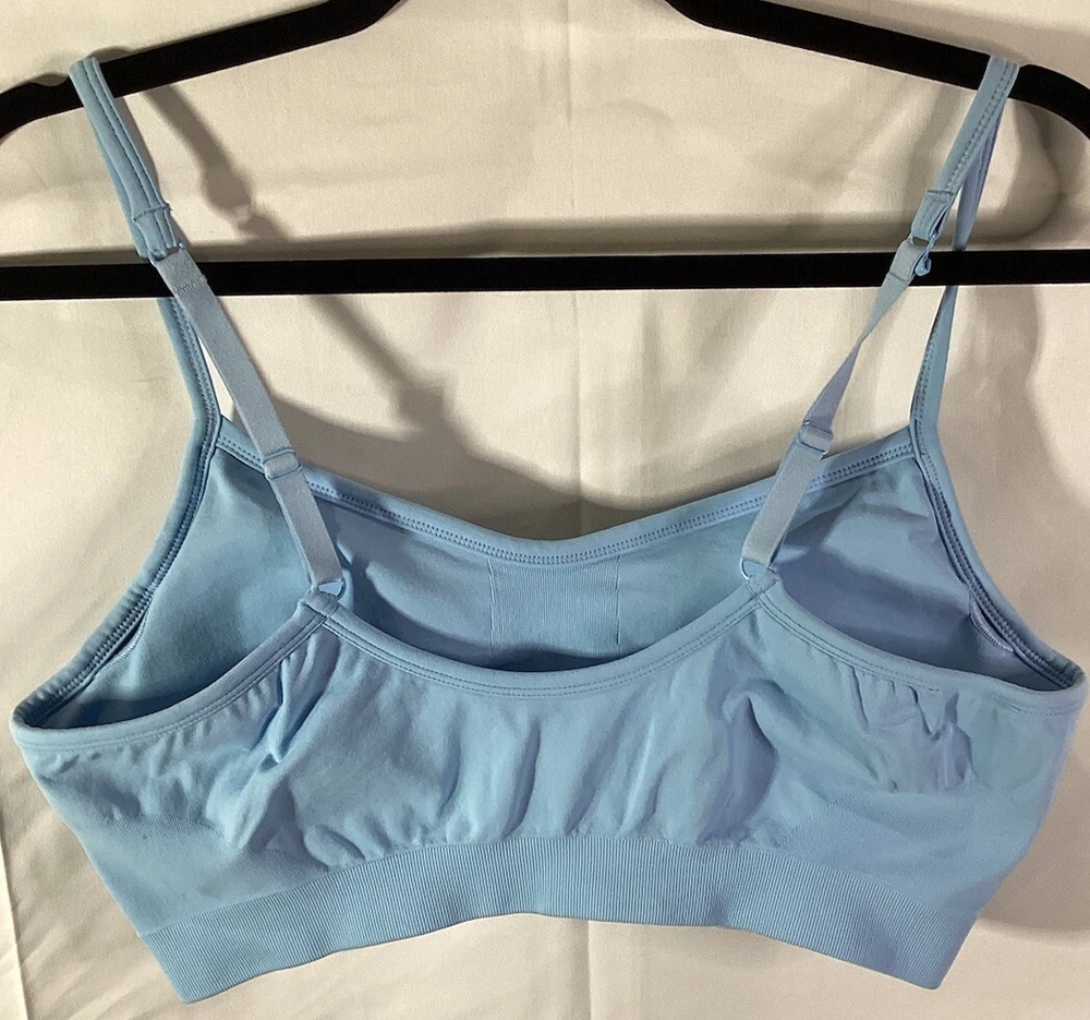 This Athleta sports bra in size L features a solid blue pattern and a pullover closure with racerback strap type. It is made of recycled nylon/spandex material and is machine washable. The bra has a low support level, wireless underwire type, and removable pads. It is perfect for athleisure and yoga activities, with its lightweight and breathable features, as well as anti-microbial and anti-odor properties. The bra is suitable for women and is a regular size type. It is not vintage and was manufactured between 2020-2029. The brand is Athleta and the cup size is D-DD. New without tags, Blue L D-DD, see pictures for more details.