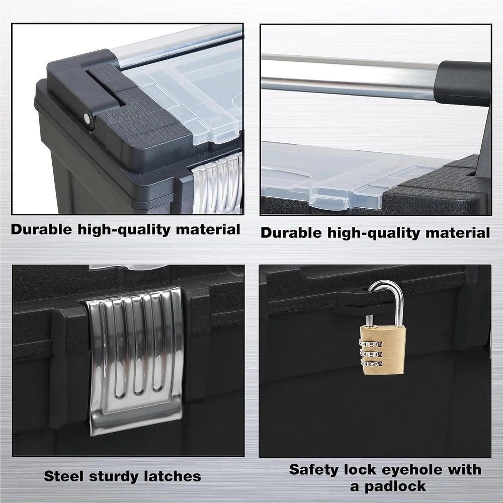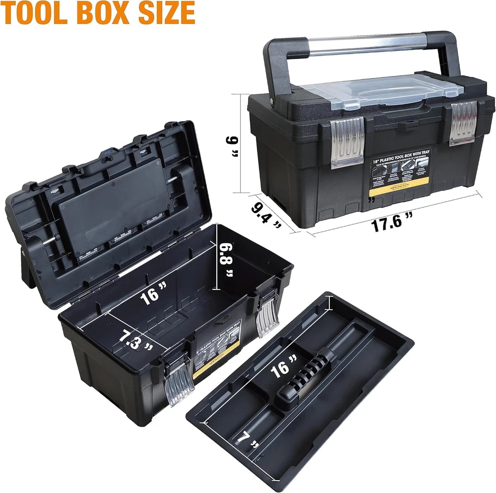 Store New Arrivals Add to Favorite View Feedback Contact ATRJH-9019U 18-Inch Plastic Tool Box Organizer & Durable Tool Storage Box: Portable Removable Tray and Alum Alloy Handle Tool Box with 2 Metal Snap Lock for Enhanced Security, Black Description Item model number ATRJH-9019U Part Number ATRJH-9019U Style Plastic Tool Box Number of Compartments 1 Item Package Quantity 1 Color Black Water Resistance Level Water Resistant Material Plastic Country of Origin China Batteries Required? No Maximum Weight Recommendation 33 Pounds Item Weight 4.9 pounds Size 17.6"x 9.2"x8.8" Product Dimensions 17.6"L x 9.2"W x 8.8"H Included Components Plastic Tool Box, Foam Pad Insert, User Manual EXTRA STORAGE SPACE AVAILABLE: The thoughtful head cover design emphasizes strength and space as the open from top storage box makes it easier to use and store items during work EXCELLENT MATERIALS: This 18-inch plastic tool box is made from durable and robust materials ensuring long-lasting performance and protection for your tools. The outside dimensions: L 17.6" * W 9.2" * H 8.8" Internal dimensions: L 16.2" * W 7.3" * H 6.8" PORTABLE & LIGHTWEIGHT DESIGN: The easy-to-carry alum alloy handle and lightweight construction make this plastic tool box a convenient choice for transporting your tools to any job site. MODULAR DESIGN: Removable trays allow simple organization of smaller tools and accessories keeping them within easy reach while you work HIGH SECURITY: Two strong metal snap locks keep the tool box securely closed ensuring your tools remain stable and protected during transport This plastic tool box is made of durable and robust materials ensuring long-lasting performance and protection for your tools. The outside dimensions: L 17.6"" * W 9.2"" * H 8.8"" and the internal dimensions: L 16.2"" * W 7.3"" * H 6.8"". Its easy-to-carry alum alloy handle and lightweight construction make this plastic tool box a convenient choice for transporting your tools to any job site. The removable trays for organization provide ample storage space which allow simple organization of smaller tools and accessories keeping them within easy reach while you work. Two strong metal snap locks keep the tool box securely closed ensuring your tools remain stable and protected during transport. The toolbox features a steel latch with a small latch hole that can be padlocked or zipped to secure the case (purchased separately). Last but not least, the thoughtful head cover design also provides the added strength and extra space which improves functionality all around during your work. ABOUT US We offer the best prices around on high quality products. Our E-store includes media such as books, movies, music and games while offering electronics, toys, sporting apparel, clothing, tools, general home, garden items and more. SHIPPING We are always working hard to ensure your package arrives as soon as possible. Please understand that some factors like weather, high postal traffic, and the performance of shipping companies are outside of our control. We offer free shipping to the lower 48 states and ship within 2 business days of payment, usually sooner. We do not accept P.O. Boxes. Please provide a physical address. For shipping outside of the continental USA, we only use eBay's Global Shipping Program.The item is shipped to KY and then sent to the rest of the world. International customers are responsible for all duties and taxes. Continue to check out in order to calculate costs for shipping the item to your country. Messages regarding eBay's Global Shipping Program MUST be directed at eBay EXCLUSIVELY. RETURNS We offer a 30-Day Return Policy on items which you are not completely satisfied with. You have the option for a full-refund or an exchange of the item. No returns are available on items shipped outside of the USA. PAYMENT We accept PayPal. CONTACT US This page content is yet to come Please ad us to your favorite seller and visit again later Thank You CUSTOMER SATISFACTION We try our very best to make sure every customer is completely satisfied. If there's a problem, message us! We're happy to help. WE ACCEPT Copyright © 2021 AutoDS. | All Rights Reserved