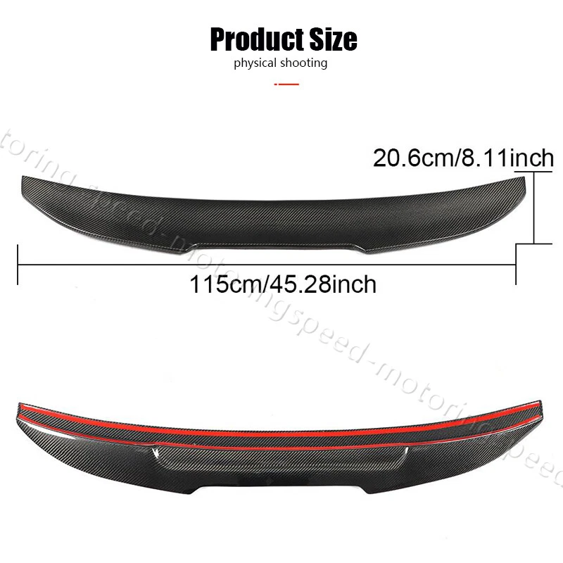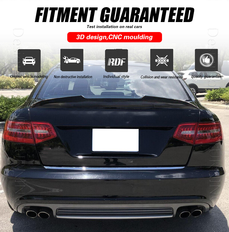 Fitment: Fits for Audi A6 C6 A6 Sline S6 Sedan 2008-2011 Specifications: Product Name: Rear Spoiler Material: Carbon Fiber Package Size: 121*25*11cm Package Weight: 1.7kg Features: Made of High Quality Lightweight Carbon Fiber. Latest Design GT Wing Spoiler Completed Kit, Improve Handling And Make Tail More Stable in High Speed. Water Transfer Carbon Fiber for Highest Durability and Appearances. Adjustable Angles for Customizable Usages and Efficiencies, Enhances Aerodynamic. Reduces Drag, Increases Fuel Efficiency, Reinforces Downforce, Traction and Stability. Double-sided adhesive paste, Easy to Install. Package included: 1 x Spoiler with self-adhesive glue tape Carbon Fiber Spoiler AUDI The Rear Trunk Spoiler is one of the simplest mods you can do to the exterior of your car that will give your car that completely different look. Not only are spoilers meant for great looks, they also help with the aero dynamics of the car by lowering drag, or helping to put more downforce on the car making sure that the wheels stay grounded for maximum traction. Fitment: Fits for Audi A6 C6 A6 Sline S6 Sedan 2008-2011 Specifications: Product Name: Rear Spoiler Material: Carbon Fiber Package Size: 121*25*11cm Package Weight: 1.7kg Features: Made of High Quality Lightweight Carbon Fiber. Latest Design GT Wing Spoiler Completed Kit, Improve Handling And Make Tail More Stable in High Speed. Water Transfer Carbon Fiber for Highest Durability and Appearances. Adjustable Angles for Customizable Usages and Efficiencies, Enhances Aerodynamic. Reduces Drag, Increases Fuel Efficiency, Reinforces Downforce, Traction and Stability. Double-sided adhesive paste, Easy to Install. Package included: 1 x Spoiler with self-adhesive glue tape Delivery details Payment and TAX Warranty Policy Return Policy Contact us Delivery details NOTE: The shipping fee is only for the mainland of each country, it does not include the overseas territories, such as Virgin Islands (U.S.) , Puerto Rico, Hawaii , French Reunion Island, etc. But on ebay, when buyers from Puerto Rico and overseas territories , the shipping fee is equal to United States, it is NOT correct,. please contact us for correct shipping fee, or we will cancel the order. Sorry for the inconvenience, and thanks for your cooperation. 1. If you want to upgrade the shipping, please contact us before making payment, we will revise the shipping fee. 2. We will ship according to your Ebay address. Please make sure it is correct and include phone number for delivery. If you want to know the exact shipping time , please contact us . Payment and TAX 1.We accept Multiple Payment Methods Available: Credit Card, Debit Card, Gift Card, Apple Pay, Goggle Pay, PayPal and PayPal Cred. 2.Please leave note for your special request (e.g. Colors or Size) in ebay note when you pay the order. 3.Your must complete the payment within 7 days or Ebay will automatically open unpaid item case For US Buyer:The invoice value of each item is less than 800USD ,so you no need to pay any tariff . NON-US Buyer Note: Most countries are tax free based on our invoices, if tax is required, which will be buyer's responsibility. Warranty Policy We Warranty Our Product Within the Limited Warranty Policy Specified on Ebay. Please Email us if ou have any question regarding the warranty policy on a specific item. Most of the items are Aftermarket Parts and they are intended for off-road usage only, therefore no installation instruction will be included, Professional installation are Highly Recommended. We are not responsible for any damages to the item or the vehicle that occur during the installation of the item.Also, Please Make Sure Proper Installation is Performed as we are not responsible for item being missing or flew off after the installation. if you don't think the item can stay on the car properly, please do not attempt to drive the car with it and please check with professional shops/mechanics or contact us for assistance. Return Policy We Accept Returns Within the Return Period On Ebay. Return Authorization/Return Approval is Required For Every Return. So If you Wish to Make a Return On Your Purchase. Please Contact us Before You Send The item back For any damages occured to the item upon arrival, Please notify us within 5 days of the delivery so we can take proper action to fix the issue. So Please Kindly inspect and check the item condition upon arrival.For Any other Return Inquries, You can contact us within the return period to obtain return authorization/return approval. In case of return, the merchandise needs to be returned in original condition with origi- nal packaging in order to be eligible for an exchange or a refund. Items must be not opened in their original package. Any mark of installation, mounting, cutting, scratch or using will not be allowed. Contact us 1.We are trying our best to explain all details of the products here! If you have any question, please feel free to contact us by Ebay message, and We will get back to you within 24-48 hours. 2.Customer satisfaction is our NO.1 priority. If you are not happy with the item that you purchase, please contact us first. We will try our best to solve the problem with you.Please leave us a positive feedback if you receive the item.Please do not leave negative or neutral feedback without any contact.If you haven't received item in 30 days, please contact us and we will arrange refund.We appreciate your business.Happy Bidding & Have a nice day! 3.Working hours: From 8 a.m. to 6 p.m. from Monday to Friday. From 8 a.m. to 12 a.m. on Saturday morning Holiday/Rest time: Saturday afternoon and Sunday