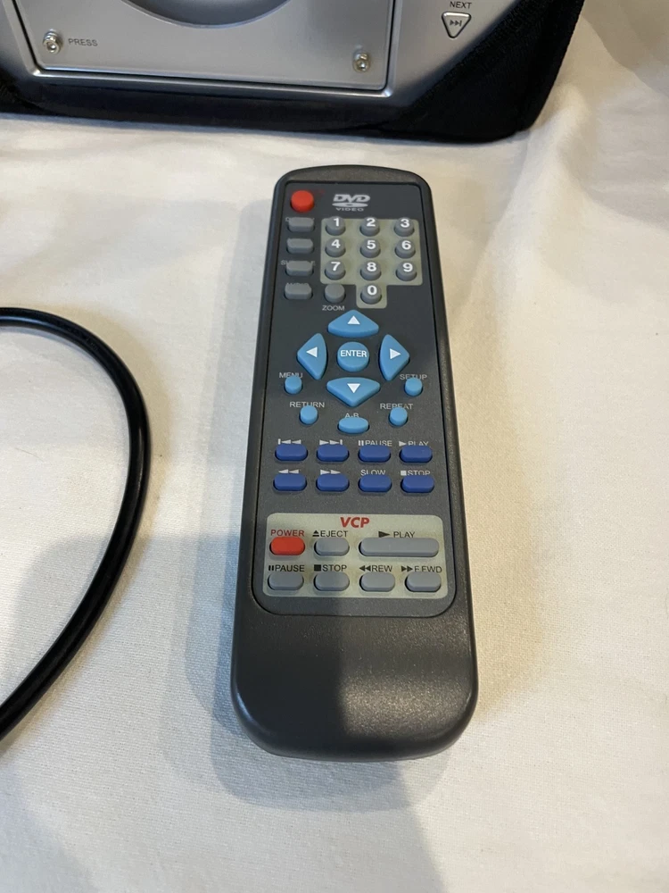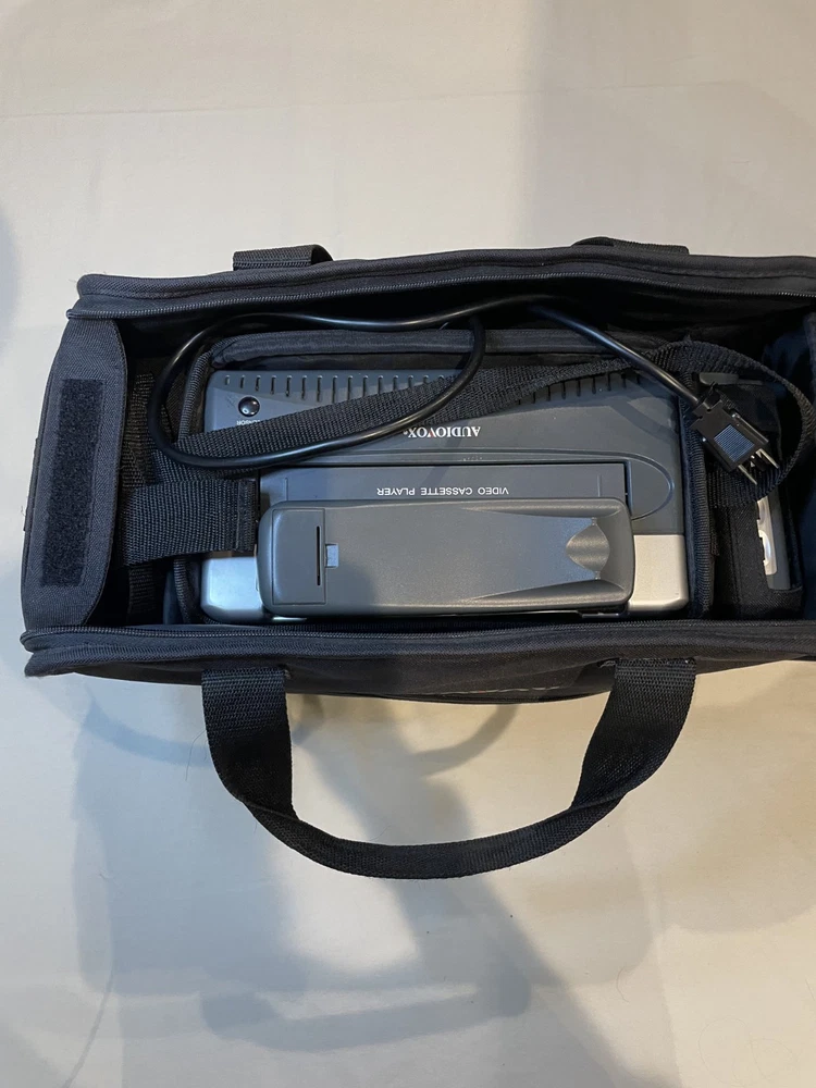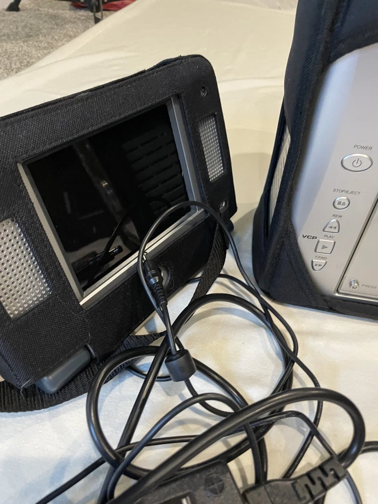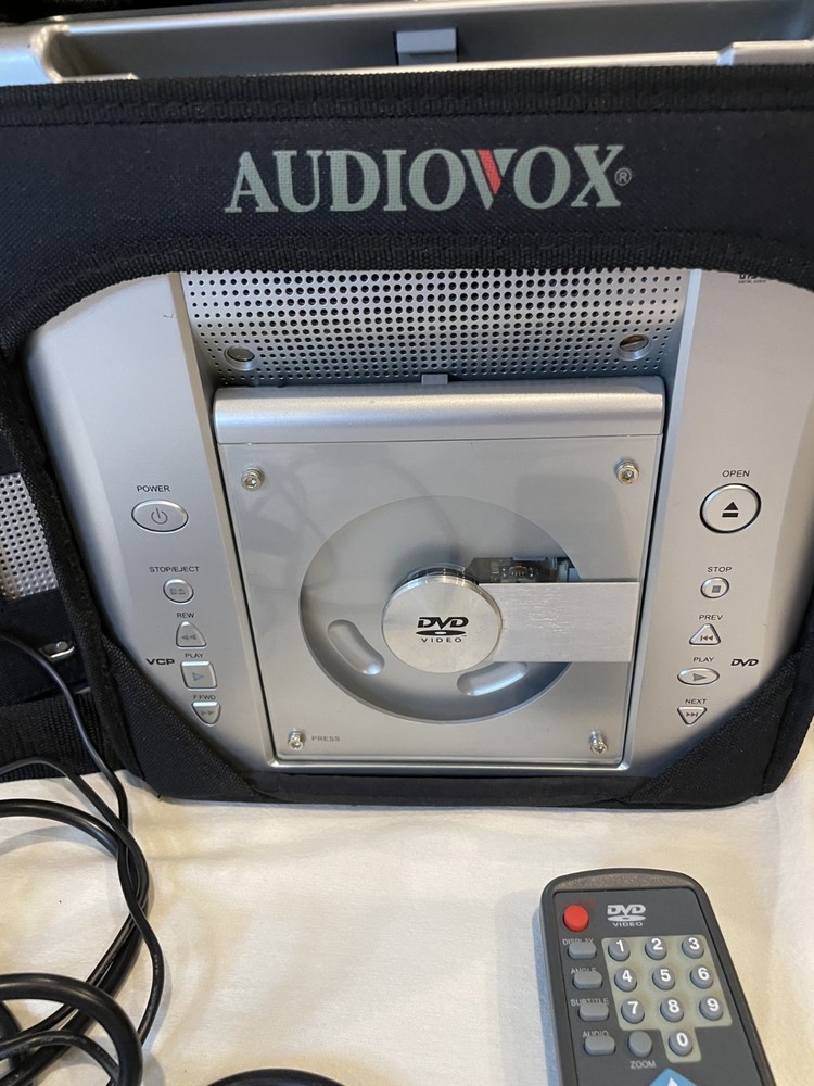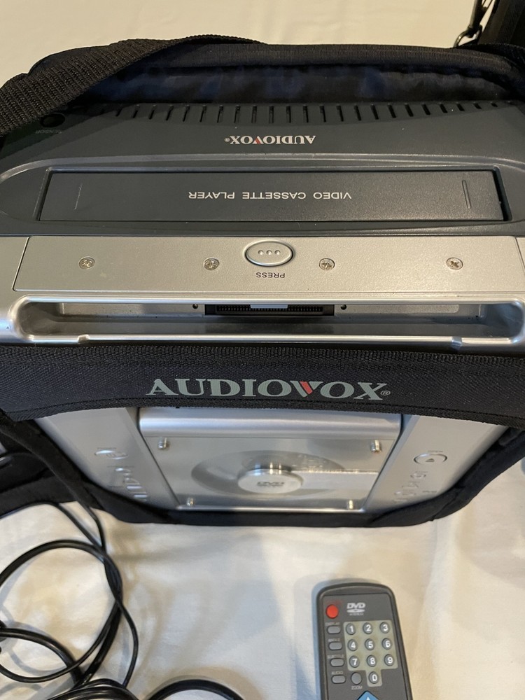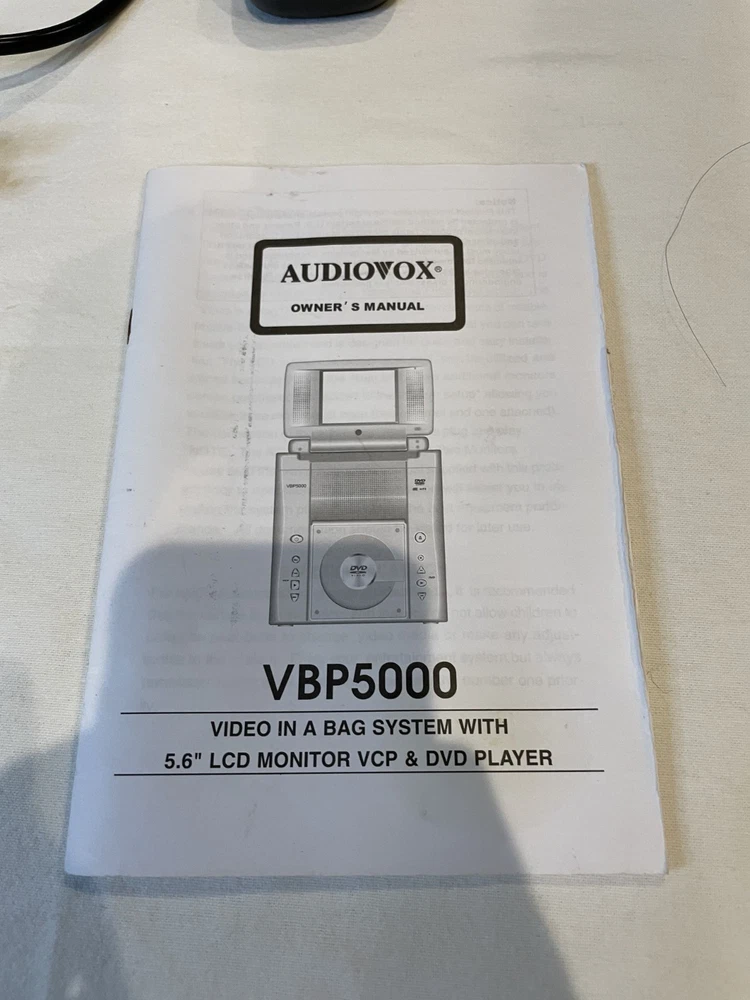 AUDIOVOX VBP5000 Portable VHS/DVD Player 5.6" LCD w/Accessories Works Great!READ VCR Rewind Button on box Doesn't Work, But works from remote Everything else works great and has been thoroughly tested didn't get photo but comes with DC power Supply adapter for CAR Item in Picture is in the condition shown If you have any questions or offers please let me know I will get back to your questions within 1 hour