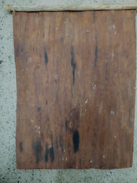 AUSTRALIAN ABORIGINAL OCHRE PAINTING ON BARK HUNTING KANGAROO EMU BOOMERANG SPEAR ORIGINAL ART WORK - IN GOOD CONDITION - MISSING TIMBER STAY AT THE BOTTOM 60 CM HIGH 47 CM WIDE SEE PHOTOS FOR BEST GUIDE TO CONDITION I AM LISTING SOME OTHER ESTATE PIECES I can combine for postage. CHECK MY OTHER LISTINGS FOR MORE