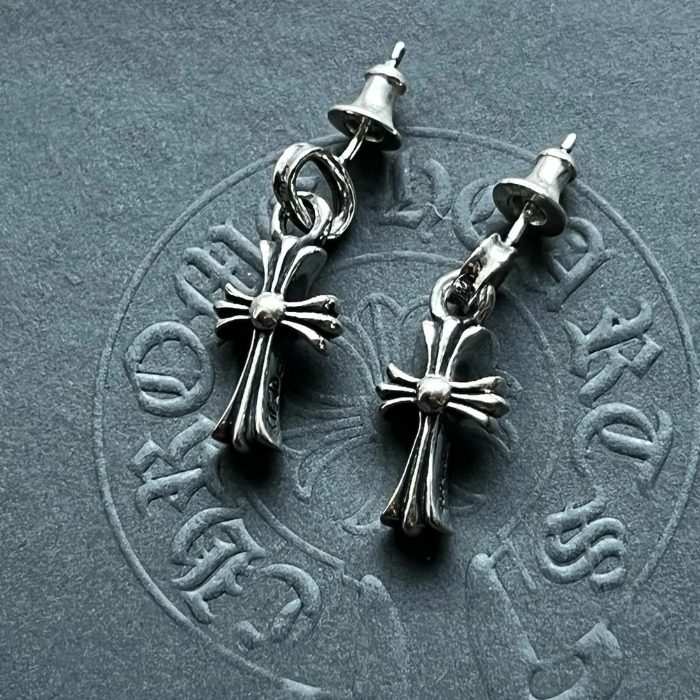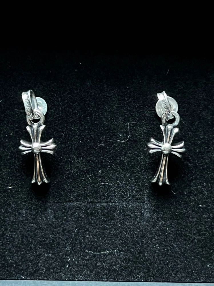 AUTHENTIC CHROME HEARTS BABY FAT CROSS EARRINGS UNISEX Comes with small shopping bag, dust bag, and box