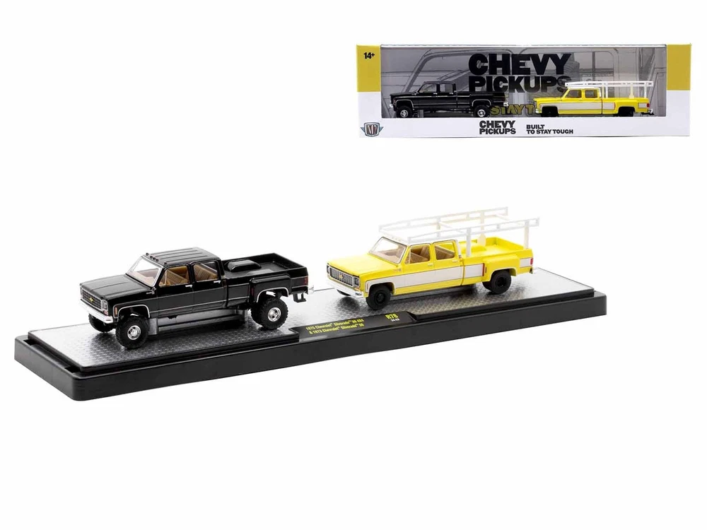 SAVE WHEN BUYING MORE!!! Buy as many items as you wish and we will ship them for one low shipping cost to 48 continental U.S. states physical addresses. Example: Shipping cost for most 1/24 scale items is $10, for 1/18 scale items is $12. If you use Add to cart button and purchase 5 items in 1/24 scale and 5 items in 1/18 scale, your shipping cost will be only $12 for 10 items. In order to request combined shipping for signed in desktop users: Please use Add to cart button for desired items, click Go to cart button and press Request total from us before paying and we will send combined shipping invoice shortly. If checking out as a Guest or using a mobile version, please use Add to cart button then click Go to cart button , press Go to checkout button, request extra shipping refund in Message to seller section and finalize payment by pressing Confirm and pay button. We will refund extra shipping cost shortly. DESCRIPTION: Brand new 1/64 scale diecast models of Auto Haulers Set of 3 Trucks Release 78 Limited Edition to 8000 pieces Worldwide die cast models by M2 Machines. Brand new boxes. Real rubber tires. True-to-scale detail. Officially licensed product. Detailed interiors, exteriors. Die-cast metal body and chassis. Dimensions approximately L-9.5 inches long. Manufacturer's original unopened packaging. Each model packed in an individual plastic display showcase. PLEASE NOTE: Might come with a chase truck instead of one of the truck in a set, but it is not guaranteed. CHASE MODELS: 1975 Chevrolet Silverado 30 4X4 Pickup Truck. The body is black, the bumpers, grille, trim and wheels are gold chrome, the interior is gold. 1973 Chevrolet Silverado 30 Pickup Truck. The body is yellow and white, the bumpers, grille, trim and wheels are gold chrome, the interior is gold. Limited Edition to 750 pieces Worldwide. THIS SET INCLUDES FOLLOWING MODELS: 1) 1974 Dodge Ramp Truck Yellow and 1971 Dodge Challenger Funny Car Yellow "MoonEyes". 2) 1975 Chevrolet Silverado 30 4X4 Pickup Truck Black and 1973 Chevrolet Silverado 30 Pickup Truck Yellow and White. 3) 1956 Ford COE Flatbed Truck Blue with White Top and Red Interior and 1932 Ford Roadster Blue and White with Red Interior. PAYMENT INSTRUCTIONS: We gladly accept PayPal. Tracking info is free upon request. SHIPPING INFO: We do combine shipping cost for two or more items purchased. Please check shipping and payment section. In order to receive combined invoice for multiple purchases, please purchase items and let us know when you are done shopping, so we can send you one combined invoice. We can only combine shipping cost if items paid in one transaction. Dear Valued Customer! We appreciate your business. BUY WITH CONFIDENCE Fast Order Fulfillment 99% of orders are shipped within 24 hours or sooner. Simple Return Policy Thirty days simple returns. More than 10 Years of Experience Family owned and operated, we’ve had the experience of selling online for more than 10 years. Satisfaction Guaranteed! Our feedback says it all. And now, we hope to have the chance to prove we are the best to you! Competitive Pricing and Unrivaled Selection We are the number one direct distributor of diecast model cars in the USA, so we are able to provide very competitive pricing. Our stock selection is unrivaled with over 4,500 different items. Quality Shipping & Handling We package all our orders with care using bubble wrap to protect models from damage in transit. Each model that has a fragile window box is covered with carton protection. Excellent Customer Service Our customer service is second to none with thousands of returning, satisfied customers from all over the world.