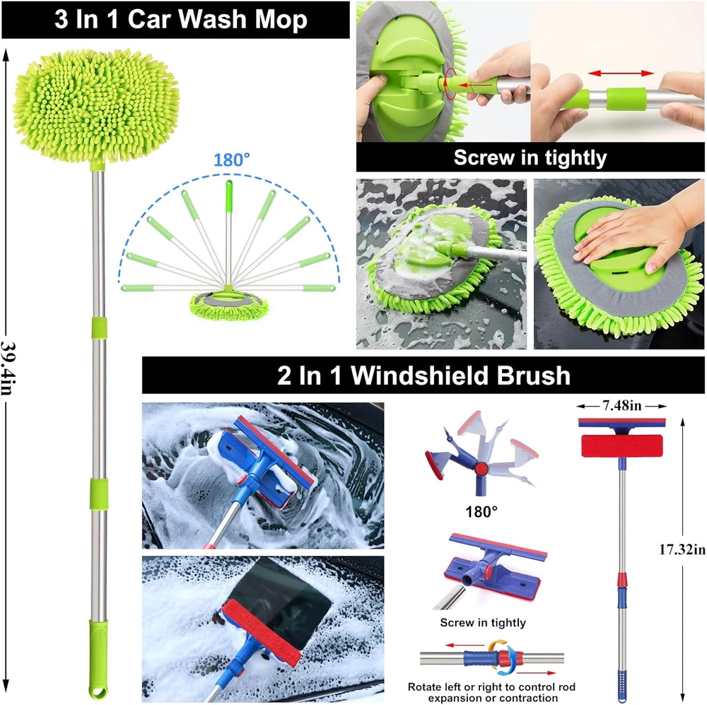 Store New Arrivals Add to Favorite View Feedback Contact AUTODECO 44Pcs Car Wash Detailing Kit Cleaning Kits with Foam Gun Sprayer Wash Mop with Long Handle Collapsible Bucket Large Wash Mitt Towels Complete Interior Exterior Car Washing Supply Set Black Description Color Black Brand AUTODECO Country of Origin China Manufacturer Part Number XYAA010-Washkit-44Pcs-Black Item Weight 6.41 pounds Package Dimensions 16.81 x 12.52 x 6.38 inches Manufacturer AUTODECO 44Pcs Car Wash Kit: 1 low-pressure foam gun with twist nozzles, quick coupling and leaking-proof tape, long handle mop, 2 In 1 windshield brush, 1 bucket, 1 windshield cleaning tool, 1 spray bottle, 1 grit trap, 10 disposable crevice brush, 1 interior brush, 1 wash sponge, 1 tire brush, 1 hub brush, 5 detailing brushes, 3 wire brushes, 1 wash mitt, 2 towels, 2 wax applicator pads, 1 air conditioner brush, 1 stone clearing hook, 1 duster, 1 bag Most Comprehansive Kit: Including almost everything for the whole car washing and cleaness. The foam gun is newly designed with adjuster on the handle to flexibly adjust the water pressure. It makes car wash easy and efficient. Car Wash Mop comes with a sturdy aluminium pole and 180° swivel mop head, ideal for cleaning hard-to-reach areas with ease. The Bucket Grit Filter filters out abrasive particles from the wash water, preventing scratches to the vehicle's surface during the cleaning process Car Detailing Kit: Disposable crevice cleaning brushes thoroughly clean your car's tight crevices and come with 10 replacement heads for added convenience with no cleaning required after use. The large interior brush features a non-slip streamlined design that's perfect for cleaning your car's interior, and the complete tyre cleaning kit helps to clean tyres and wheels quickly. 5 detailing brushes and other kind of brushes, meet all you need of car detailing or cleaning Premium Material: Other car cleaning tools are made of soft, durable materials that won't shed lint or leave marks on the car's surface. Absoulately safe to clean on delicate surfaces. Gentle on paint while tough on grime or dirt. The 2-in-1 windscreen brush with 180° swivel head and extra-long telescopic handle cleans windows and removes water spots with ease. 5 gallon collapsible bucket can meet car washing anywhere Multi-Usage: Suit for both exterior and interior car cleaning, cleanness of automobile tyre, car polishing and waxing, cleanness of household kitchen or office, etc. Perfect for washing car, motorcycle, truck, rv or trailer as well as cleaning house window, glass, mirrors and furniture. This car wash kit is full of tools and high quality, ideal for Valentine's Day, Christmas and other special holidays Product Description About Foam Gun: Great for making bubble and whole car washing. Also can be functioned as garden hose spray nozzle. About Wash Mitt: Extra large size mitt, roomy and suit for most hands size. With super thick, ultra absorbent microfiber strands. Skin-friendly waterproof lining-protects your hands! About Towel: 1. With enormous absorbency for drying 2. Attract grease, dirt particles and dust easily 3. Extremely plush, edgeless, super-soft and light, will not scratch paint when used properly. Scope of Application: Cleaness of toughest of grease, dirt, dust, and spills Safe to use on paint, glass, metal or optical plastic Can be used on all vehicle types, car, motorcycle, SUV, trucks, RVs trailers, buses, boat, and around the house, kitchen, bathtub, room dust AUTODECO 44Pcs Car Wash Cleaning Tools Kit Set 44 pieces of car cleaning kit with soft texture, give your car comprehensive protection Products Include: 1 low-pressure foam gun with twist nozzles, quick coupling and leaking-proof tape, long handle mop, 2 In 1 windshield brush, 1 bucket, 1 windshield cleaning tool, 1 spray bottle, 1 grit trap, 10 disposable crevice brushes, 1 interior brush, 1 wash sponge, 1 tire brush, 1 hub brush, 5 detailing brushes, 3 wire brushes, 1 wash mitt, 2 towels, 2 wax applicator pads, 1 air conditioner brush, 1 stone clearing hook, 1 duster, 1 bag About Folding Bucket: Space-saving, lightweight and quite easy to carry with. Fully opened sizes: Diameter 11" x height 11.8", Weight: 0.6LB. Folded size: 6.5" x 6.5". Rolled up size: 3.5" x 6.5". Ideal for RV, camping, fishing, traveling, boating, hiking, gardening, picnic, outdoor activities, daily and car washing. Use it as fish bucket, ice bucket, fruits and veggies basket, travel basin, coaches buckets for baseball, etc. About Wash MOP: Car Wash Mop comes with a sturdy aluminium pole and 180° swivel mop head, ideal for cleaning hard-to-reach areas with ease ABOUT US We offer the best prices around on high quality products. Our E-store includes media such as books, movies, music and games while offering electronics, toys, sporting apparel, clothing, tools, general home, garden items and more. SHIPPING We are always working hard to ensure your package arrives as soon as possible. Please understand that some factors like weather, high postal traffic, and the performance of shipping companies are outside of our control. We offer free shipping to the lower 48 states and ship within 2 business days of payment, usually sooner. We do not accept P.O. Boxes. Please provide a physical address. RETURNS We offer a 30-Day Return Policy on items which you are not completely satisfied with. You have the option for a full-refund or an exchange of the item. No returns are available on items shipped outside of the USA. PAYMENT We accept PayPal. CONTACT US This page content is yet to come Please ad us to your favorite seller and visit again later Thank You CUSTOMER SATISFACTION We try our very best to make sure every customer is completely satisfied. If there's a problem, message us! We're happy to help.