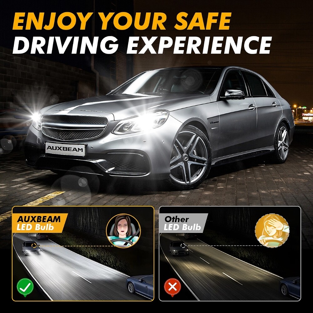 AUXBEAM 9005 HB3 LED High Beam Headlight Bulbs 6500K 25000LM Conversion Kit